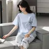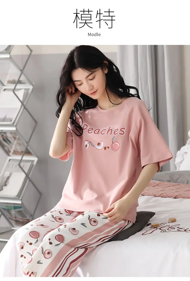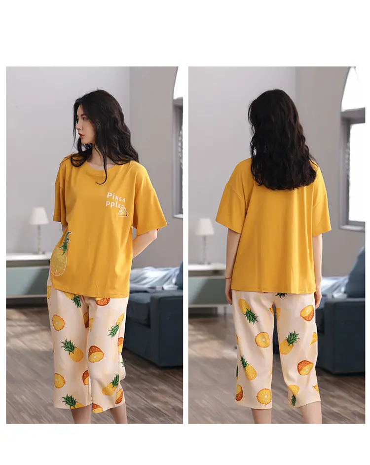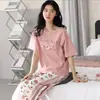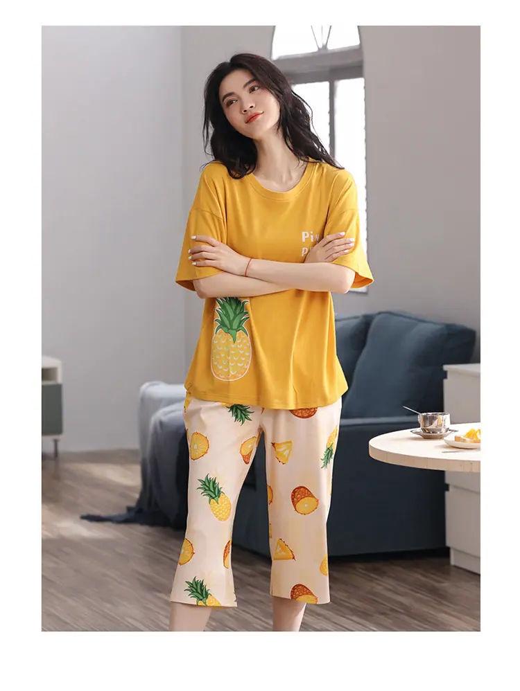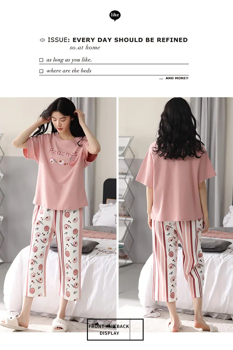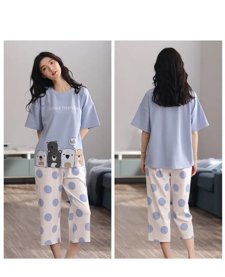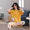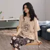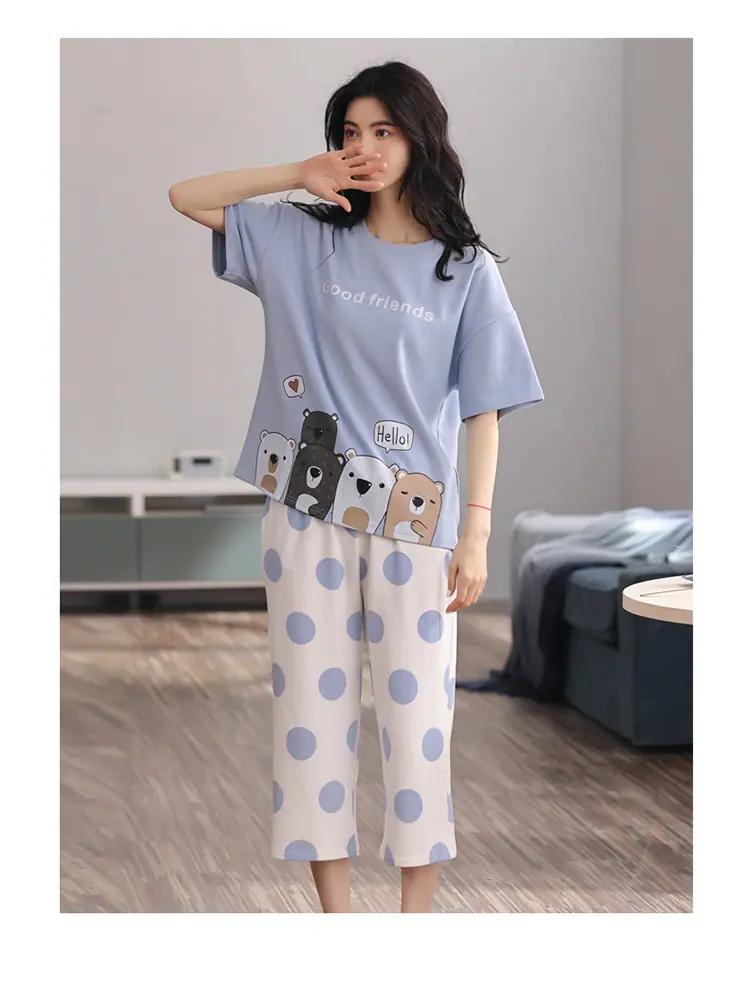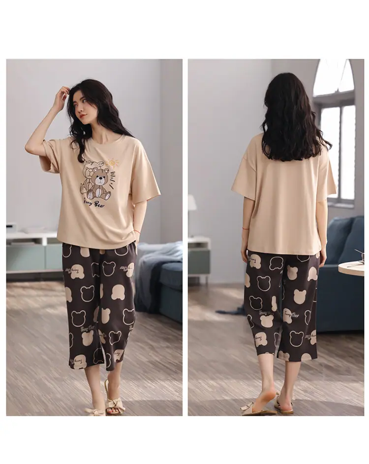 [7] Pijama de Verano para Mujer Algodón Manga Corta Set de Shorts Cortos Crop Verano Delgado Talla Grande Ropa para el Hogar