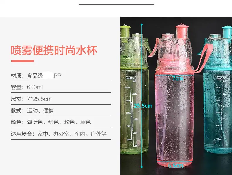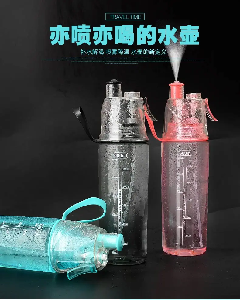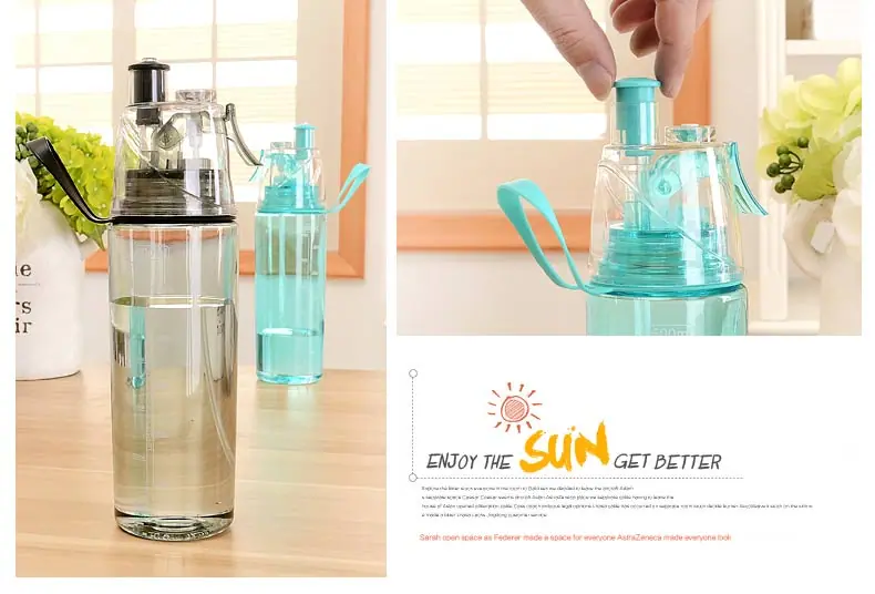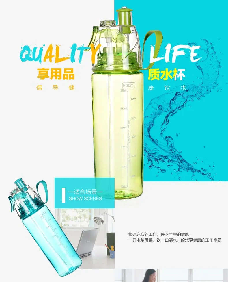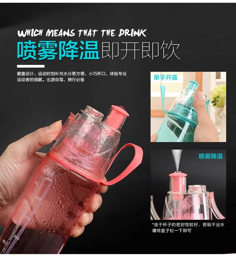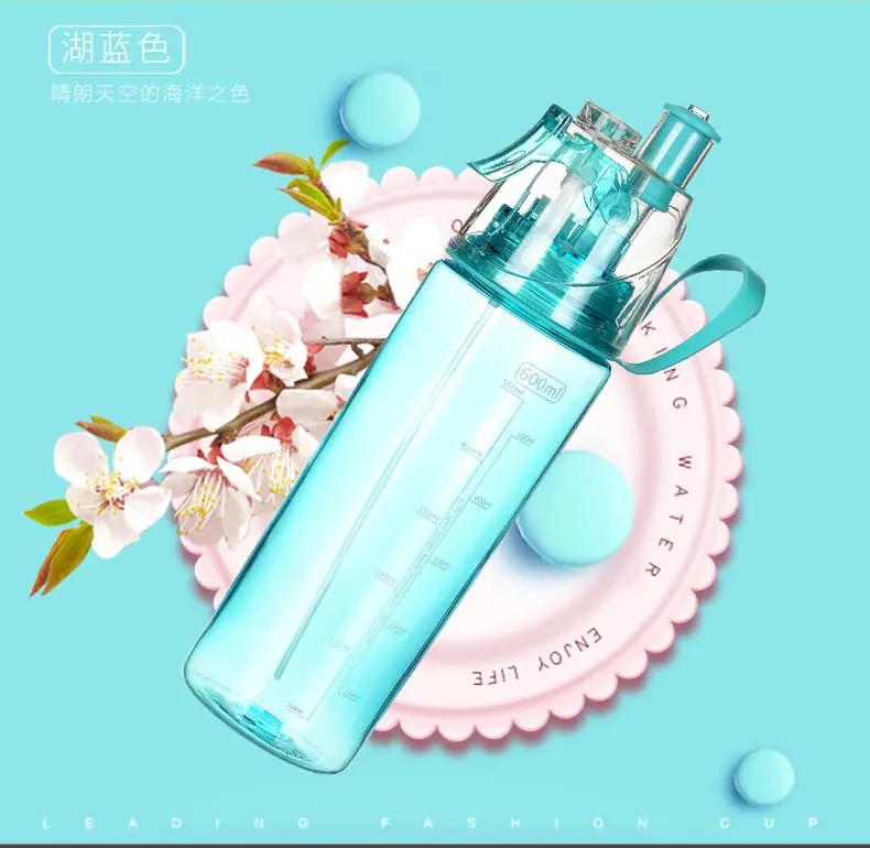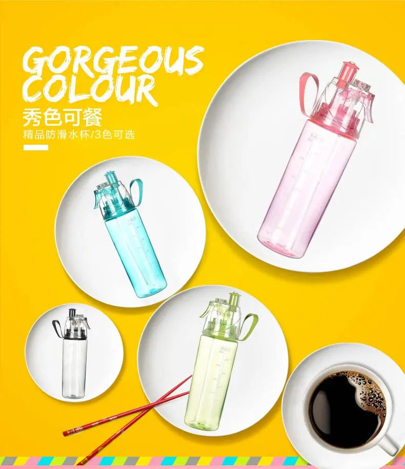 Vaso con Spray Creativo de Verano Vaso de Agua Botella de Agua Hervidor Deportivo para Exterior Portátil de Mano Vaso a Prueba de Fugas Fitness Gran Capacidad