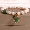 Pulsera de Perlas de Agua Dulce con Diseño de Nicho para Mujer Pulsera Simple con Colgante de Jade de Trébol de Cuatro Hojas Pulsera para Mejores Amigas Estudiantes