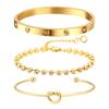 Pulsera Europea y Americana ins Tarjeta Familiar Diez Diamantes Redonda Malla Cuentas Acero Inoxidable Oro Real Set de Pulseras Joyería de Moda Simple para Mujeres