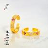 Anillo Puzuoqiang color oro brillante 24K flor diamante flor de cuatro hojas fila única personalidad tendencia moda anillo de dedo comida mujer