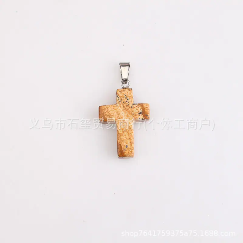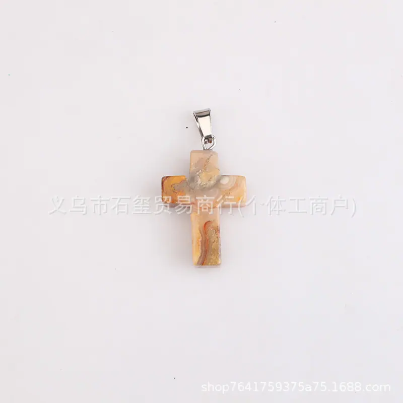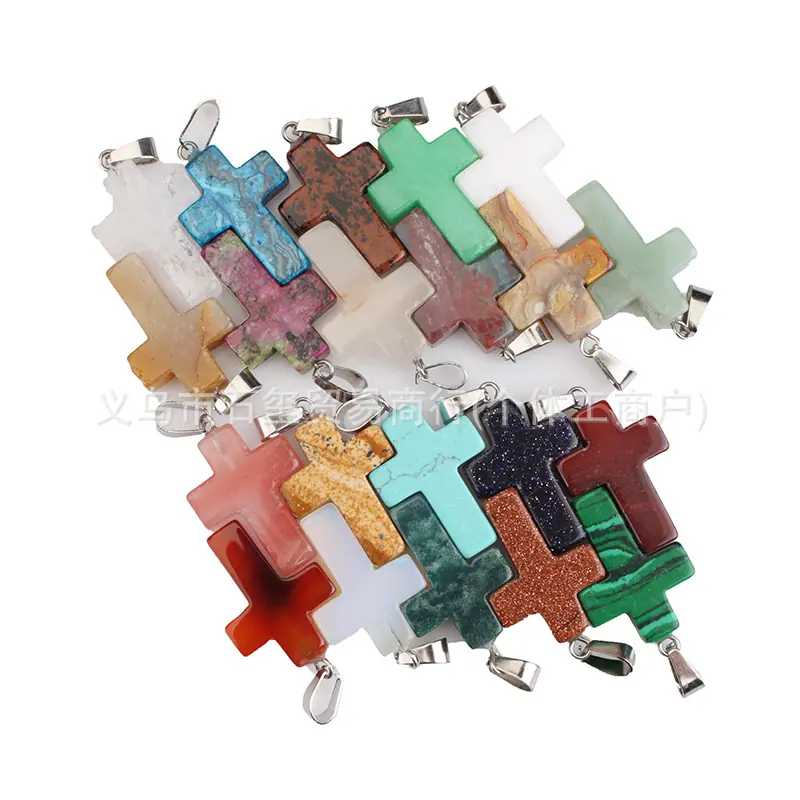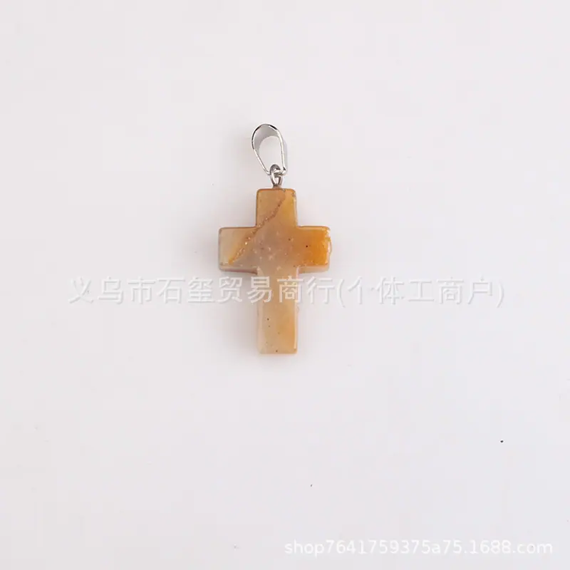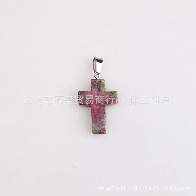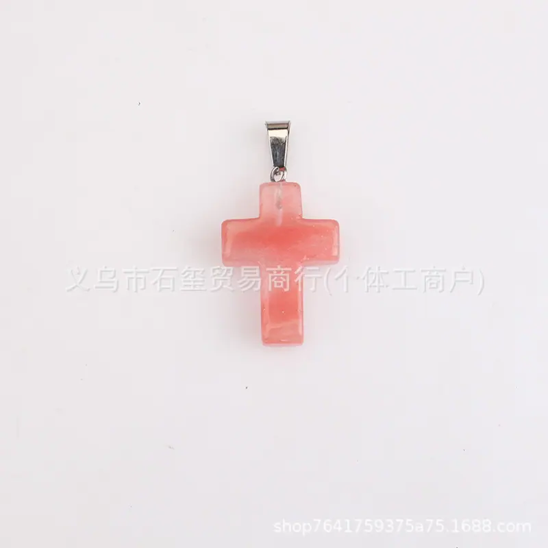 Piedra Natural Ágata Cuarzo Rosa Colgante Cruz Cierre Semilla de Melón Colgante DIY Accesorios de Joyería Fábrica Transfronterizo