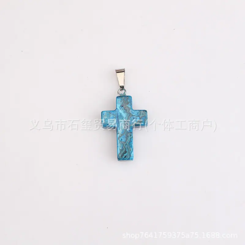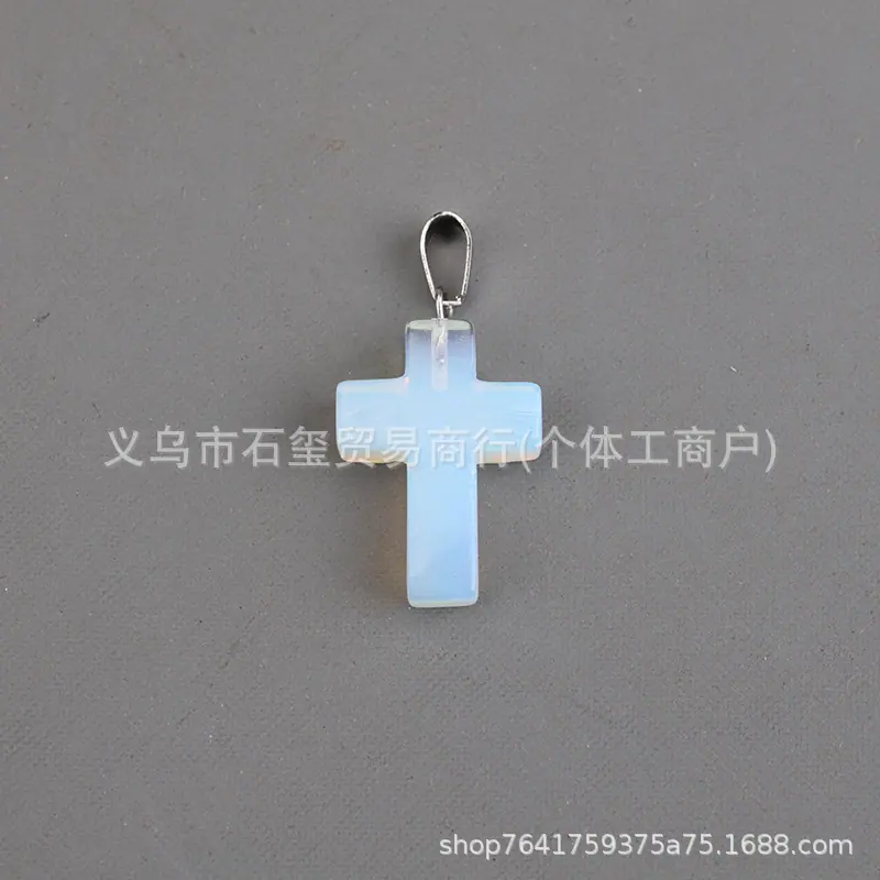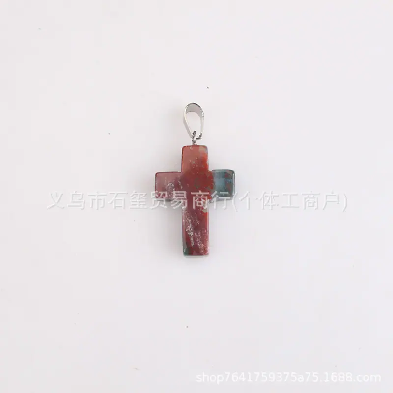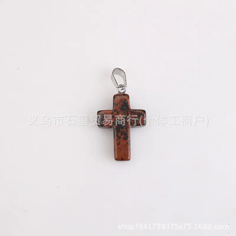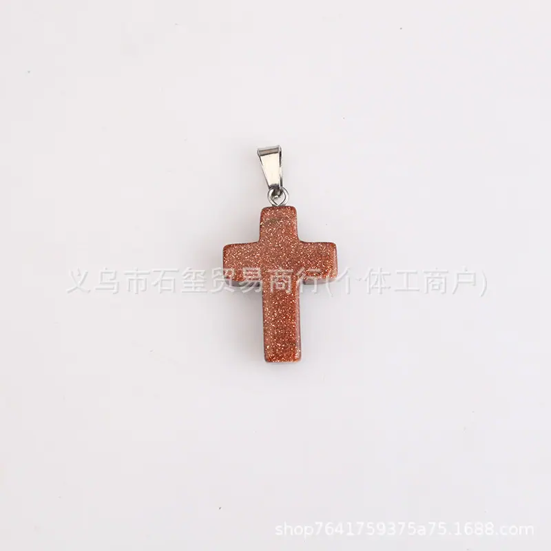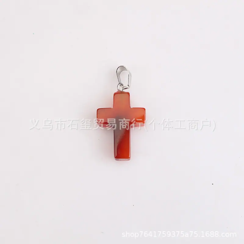 Piedra Natural Ágata Cuarzo Rosa Colgante Cruz Cierre Semilla de Melón Colgante DIY Accesorios de Joyería Fábrica Transfronterizo