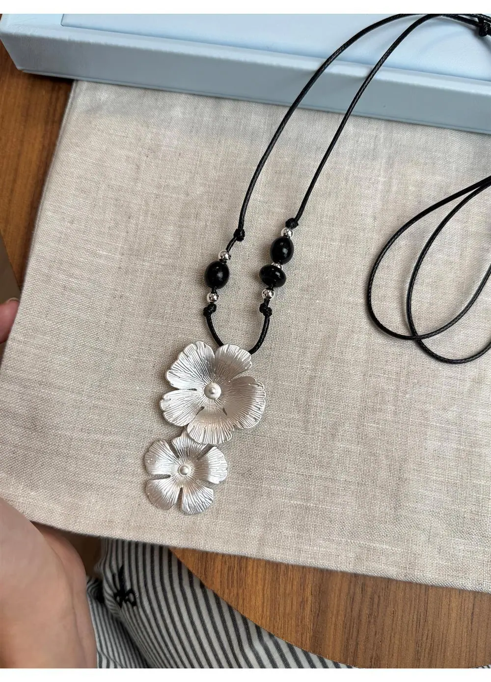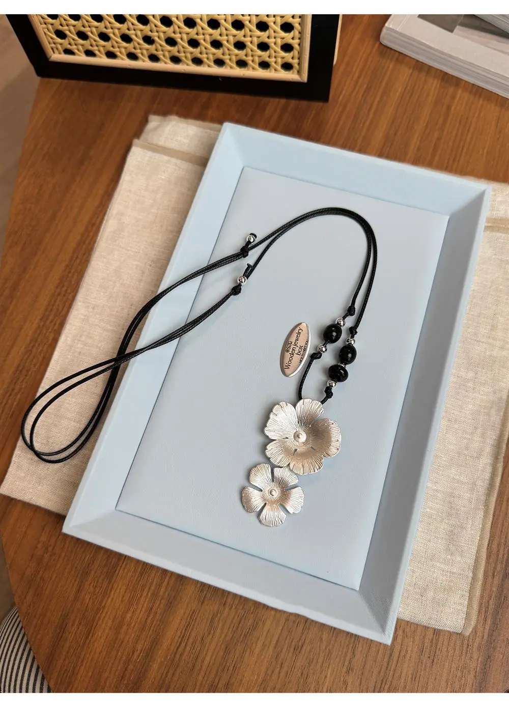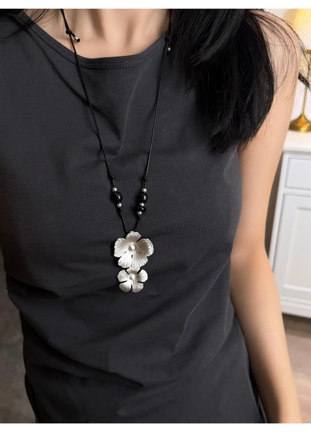 Collar con colgante de flor con patrón de estilo étnico, personalidad de nicho, temperamento, cadena para suéter, joyería de moda de alta gama al por mayor para mujer