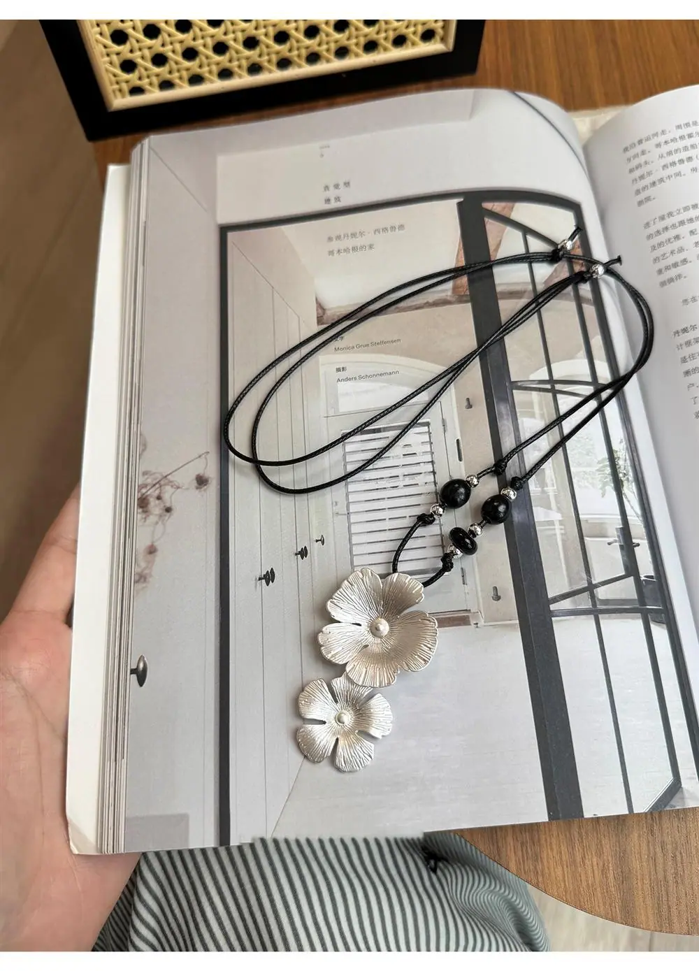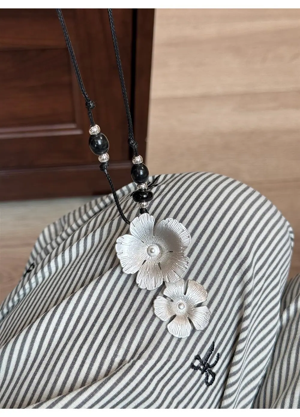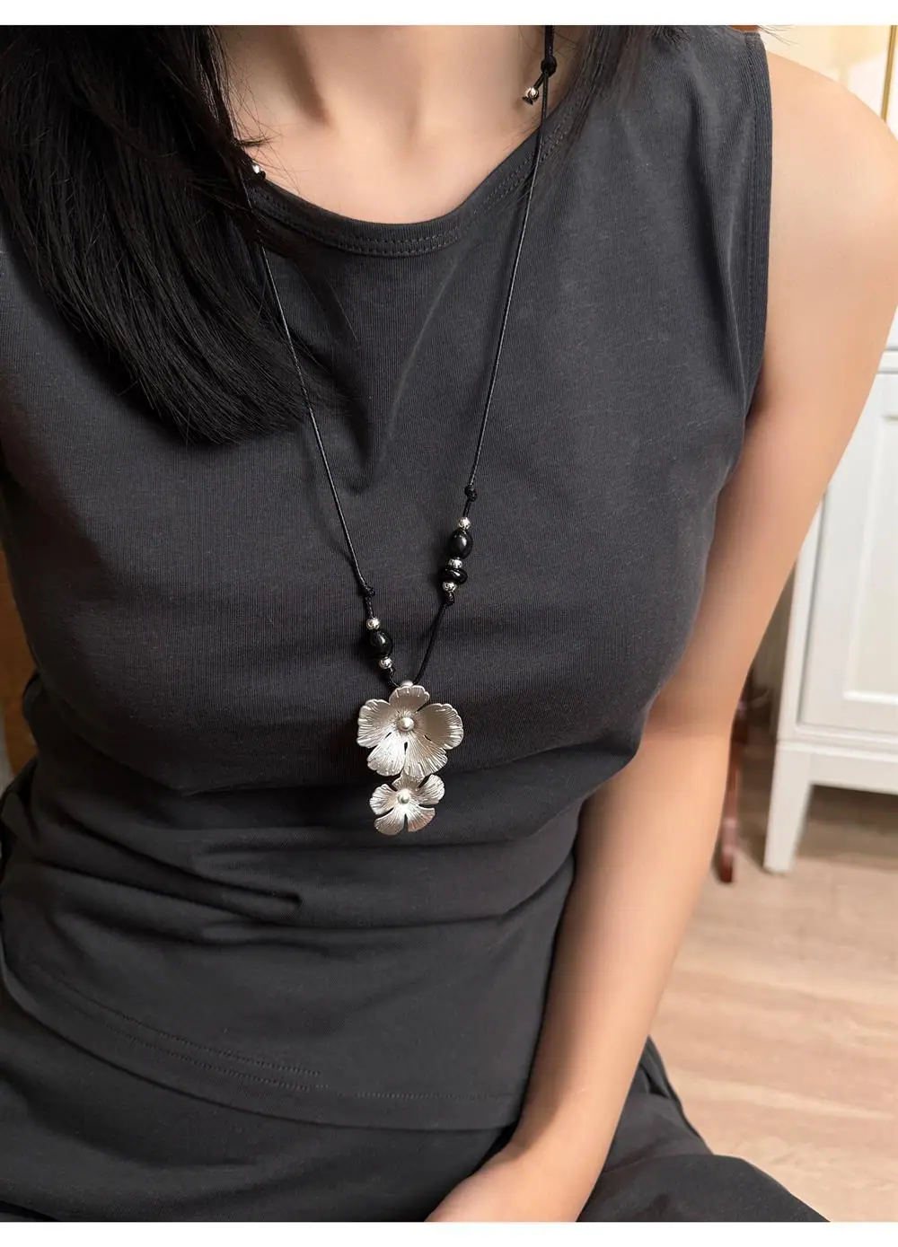 Collar con colgante de flor con patrón de estilo étnico, personalidad de nicho, temperamento, cadena para suéter, joyería de moda de alta gama al por mayor para mujer