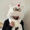 Gato de Peluche con Gafas de Dibujos Animados, Set de Tres Piezas de Bufanda y Guantes para Mujer, Invierno, Forro Polar, Engrosado, Caliente para Ciclismo, Gorro Todo en Uno