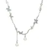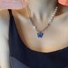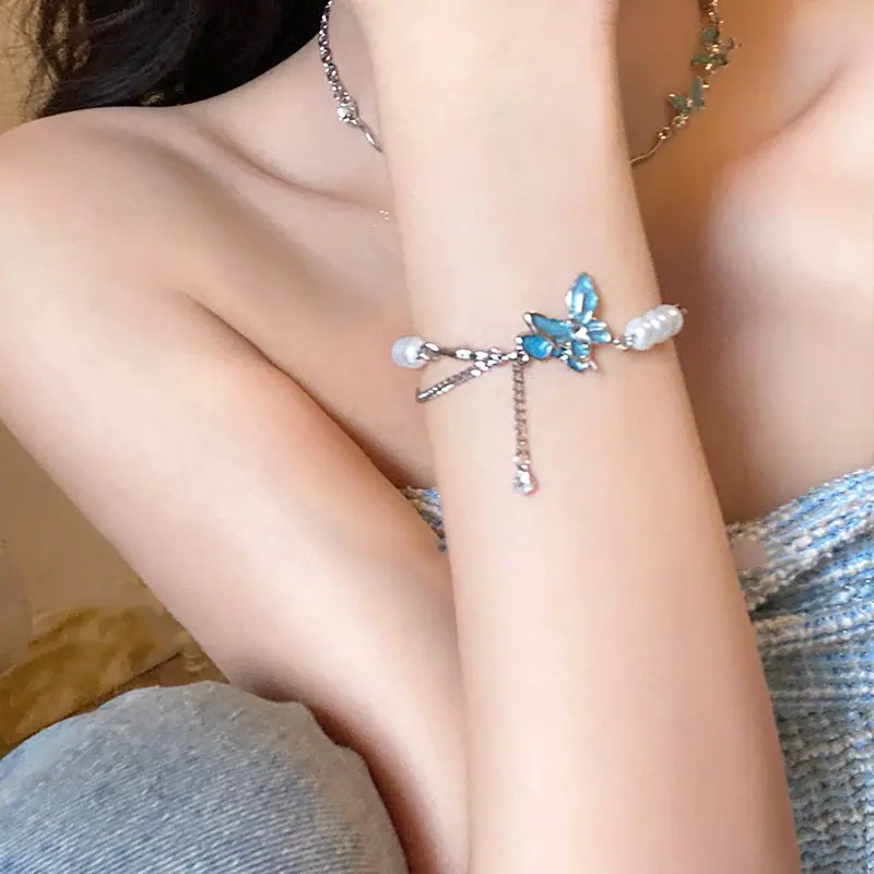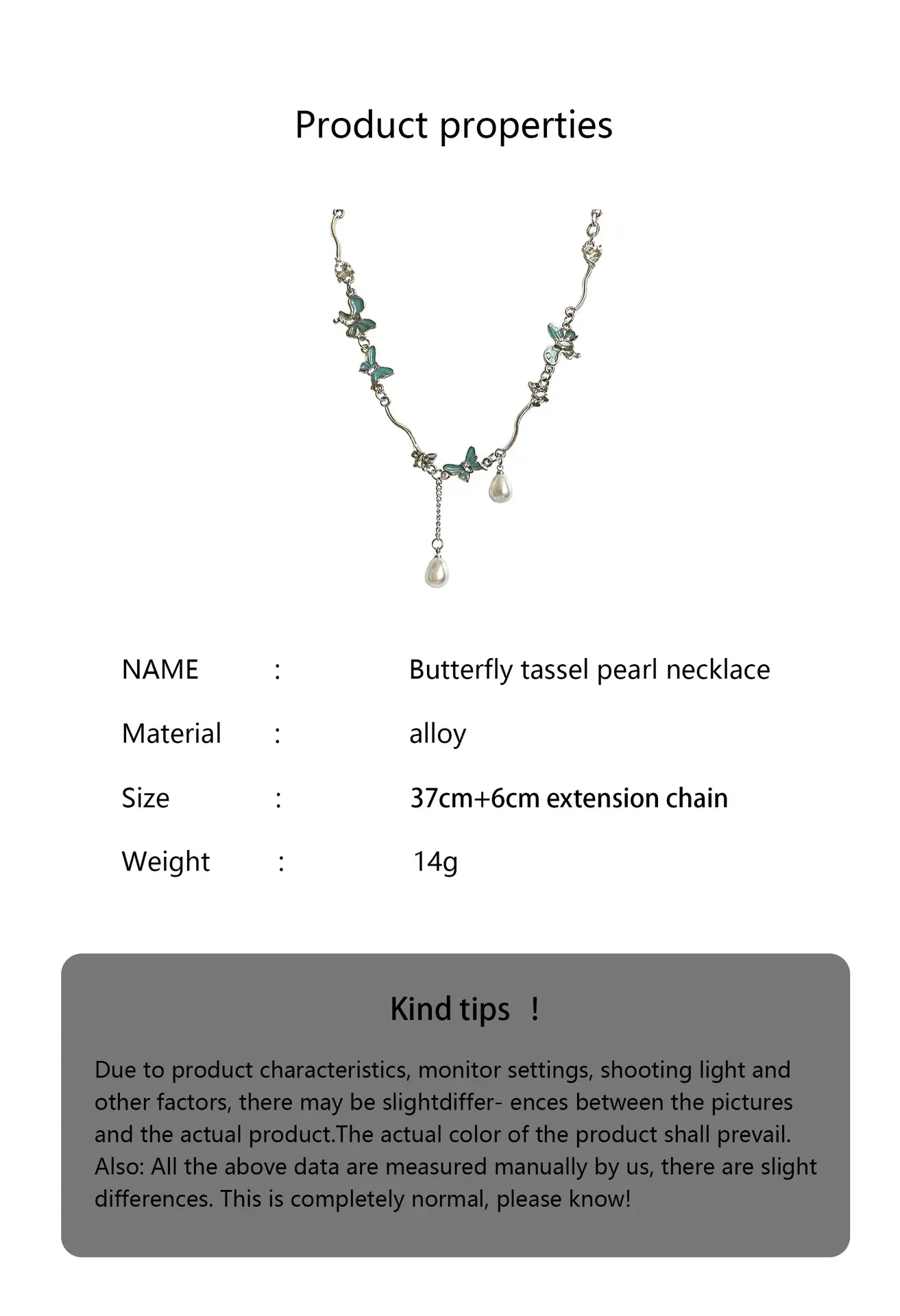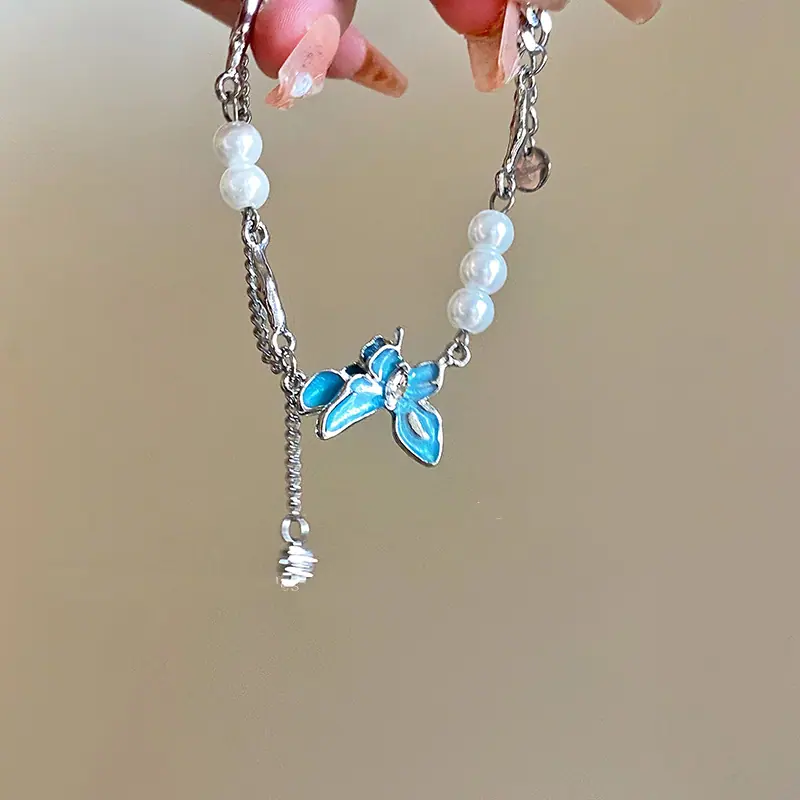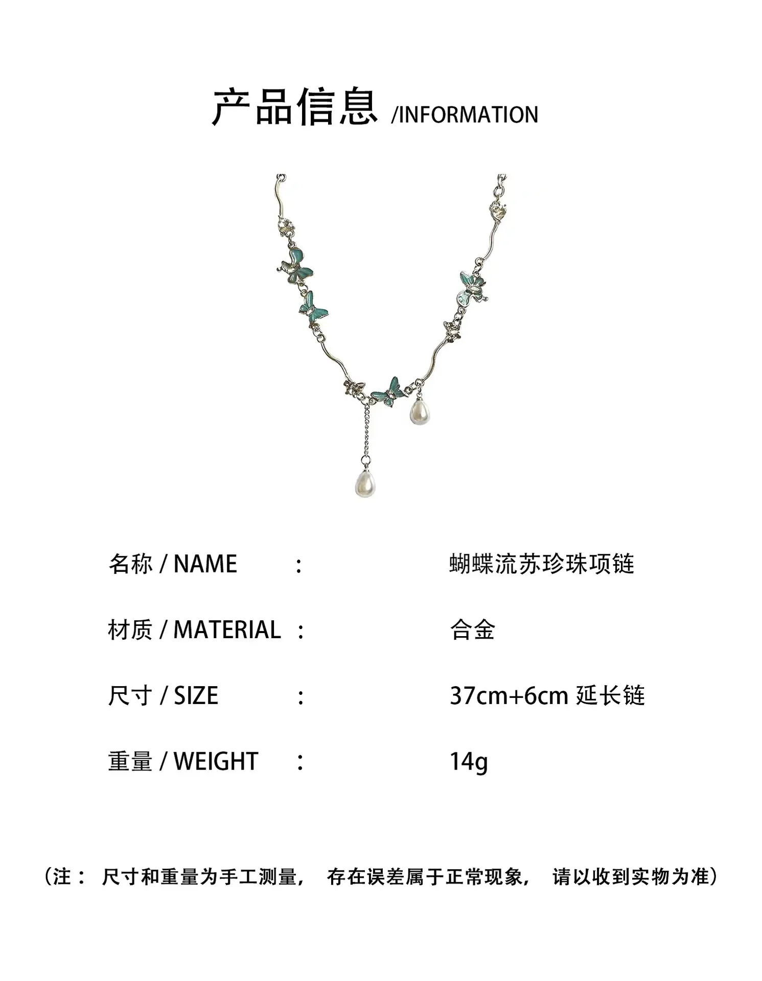 Collar de perlas y mariposa azul para mujer, estilo Spice Girl, elegante y de alta gama, con cadena de clavícula y diseño de nicho.