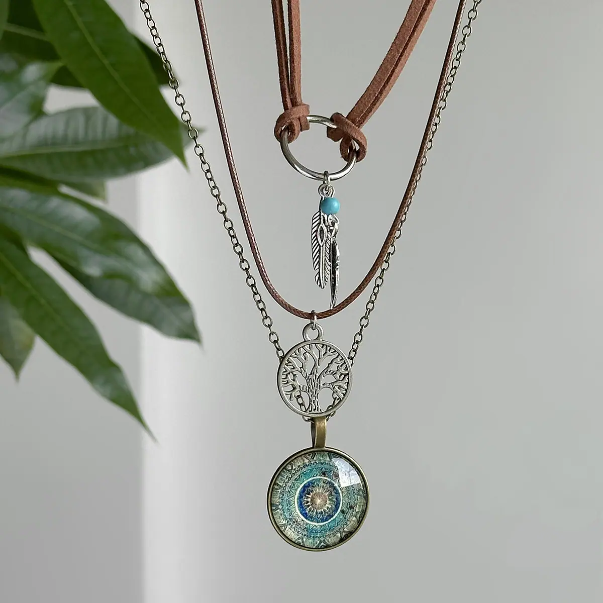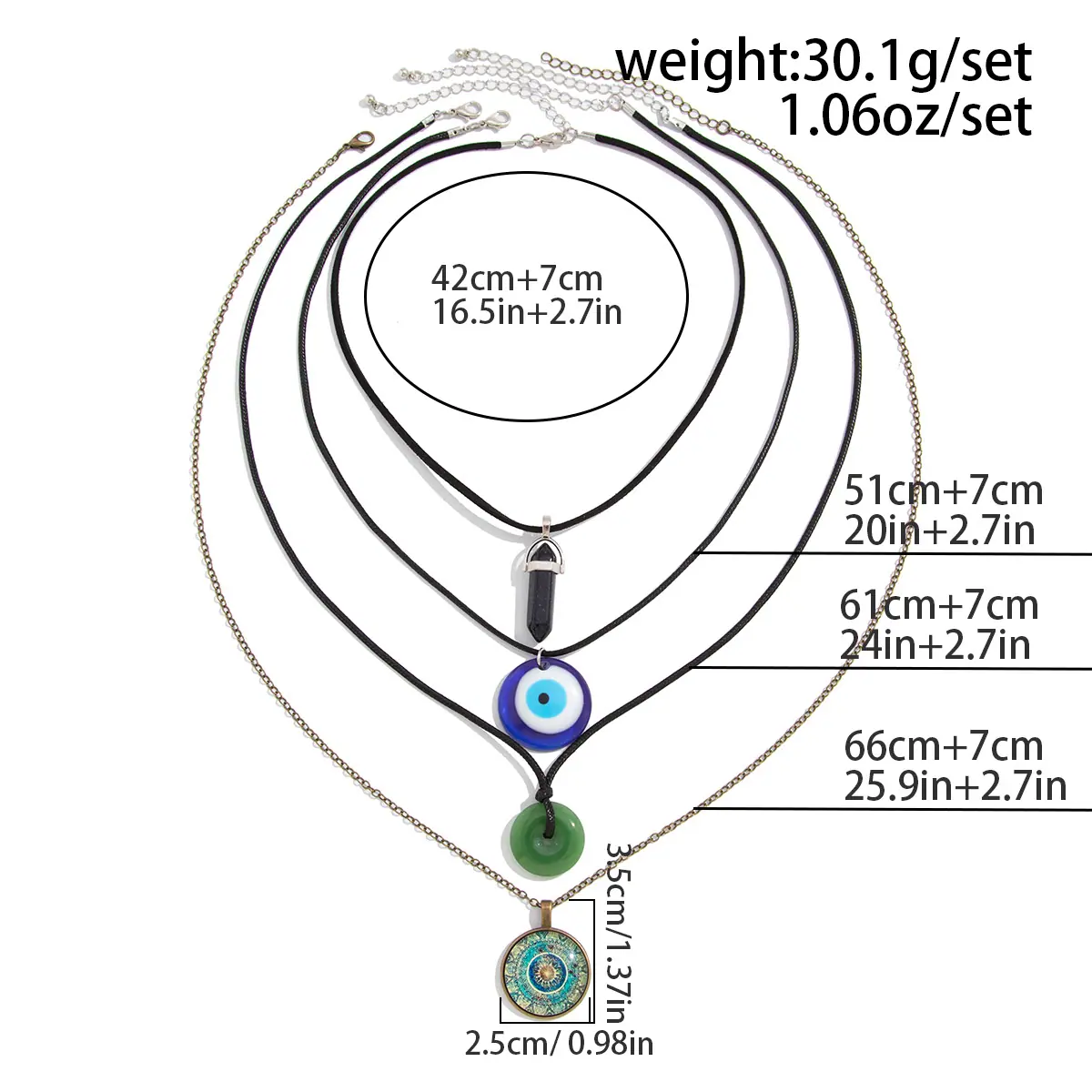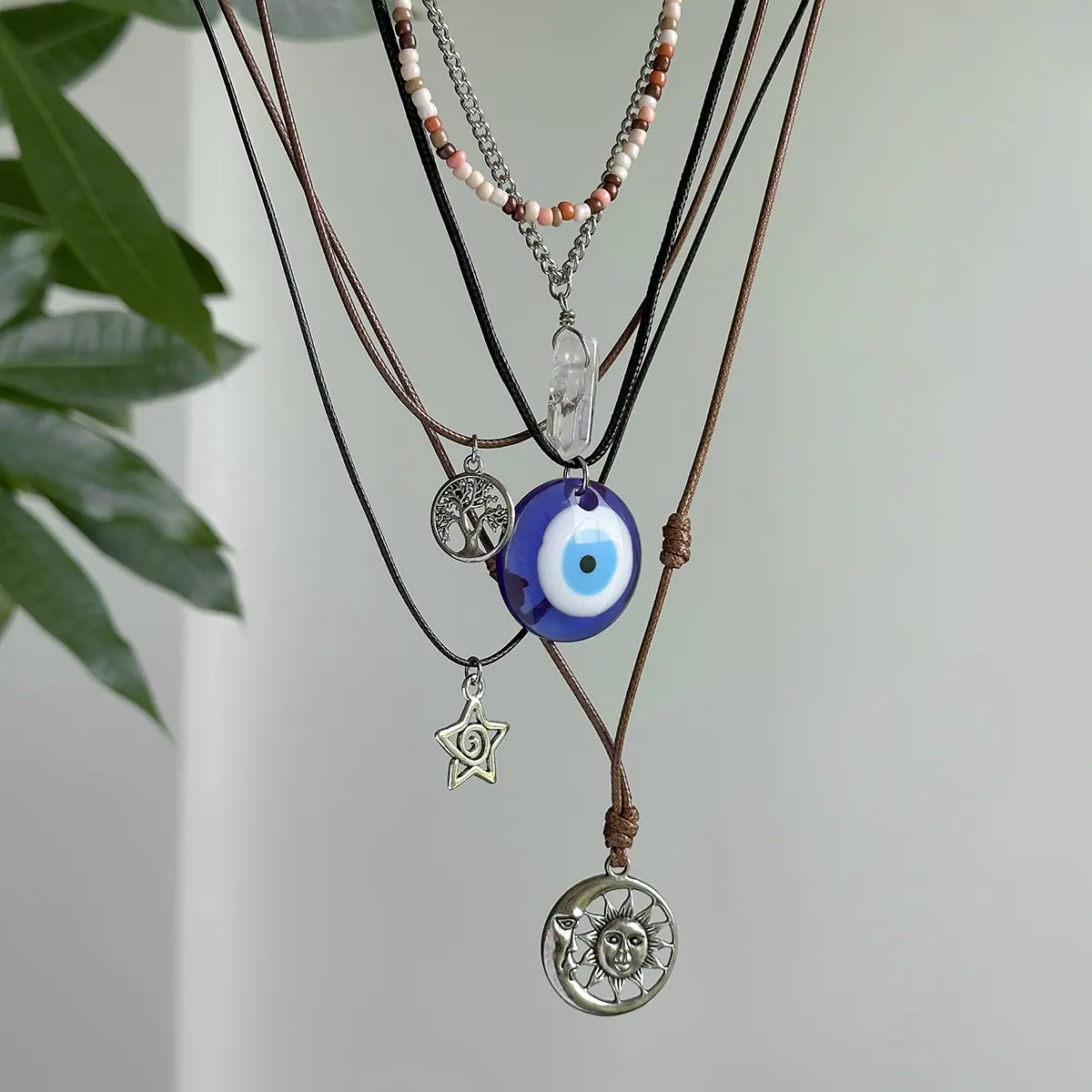 Material del Producto:hilo encerado de cuero + cadena de hierro + aleación + cristal