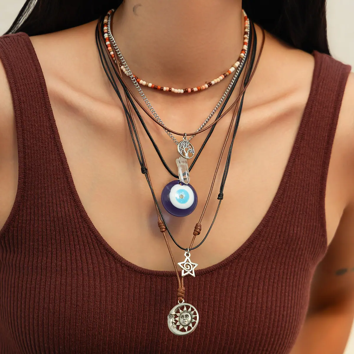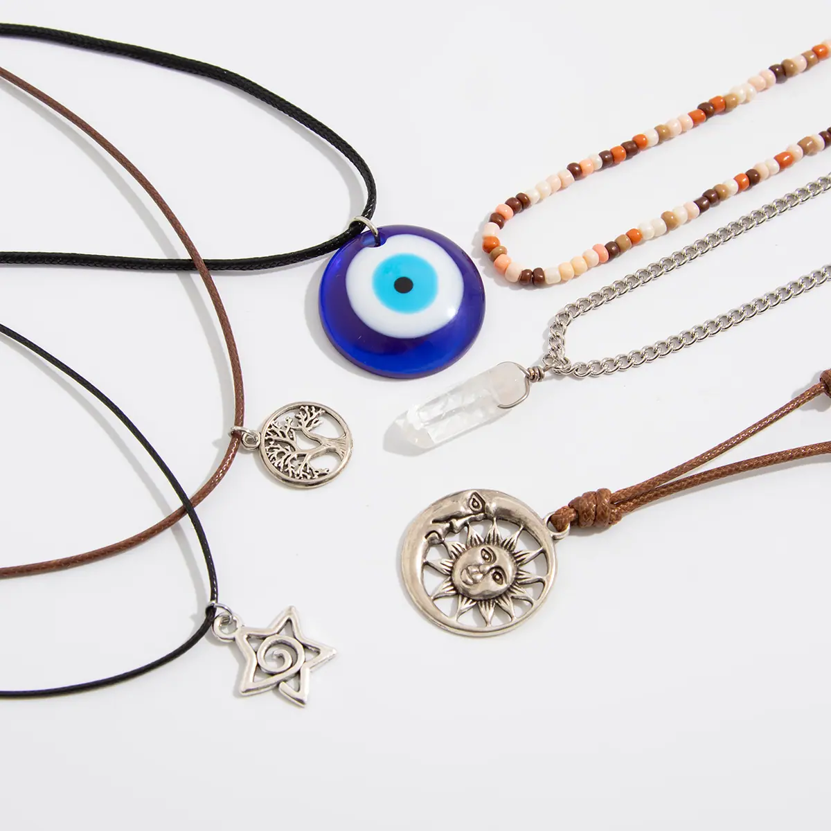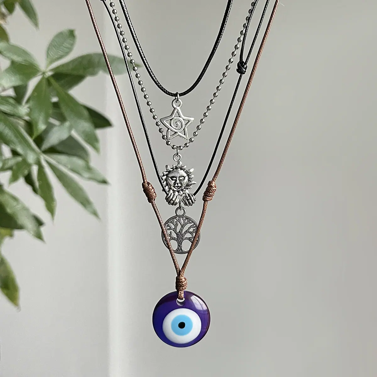 Material del Producto:hilo encerado de cuero + cadena de hierro + aleación + cristal