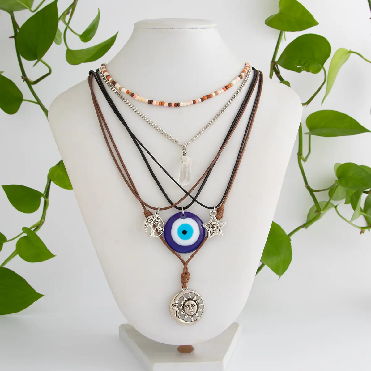 Material del Producto:hilo encerado de cuero + cadena de hierro + terciopelo coreano + aleación + acrílico + vidrio + cristal