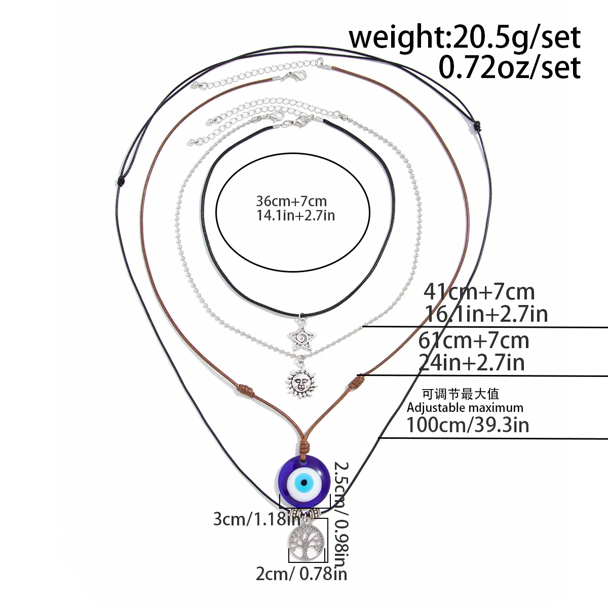 Material del producto:Cadena de hierro + hilo de cera de cuero + terciopelo coreano + aleación