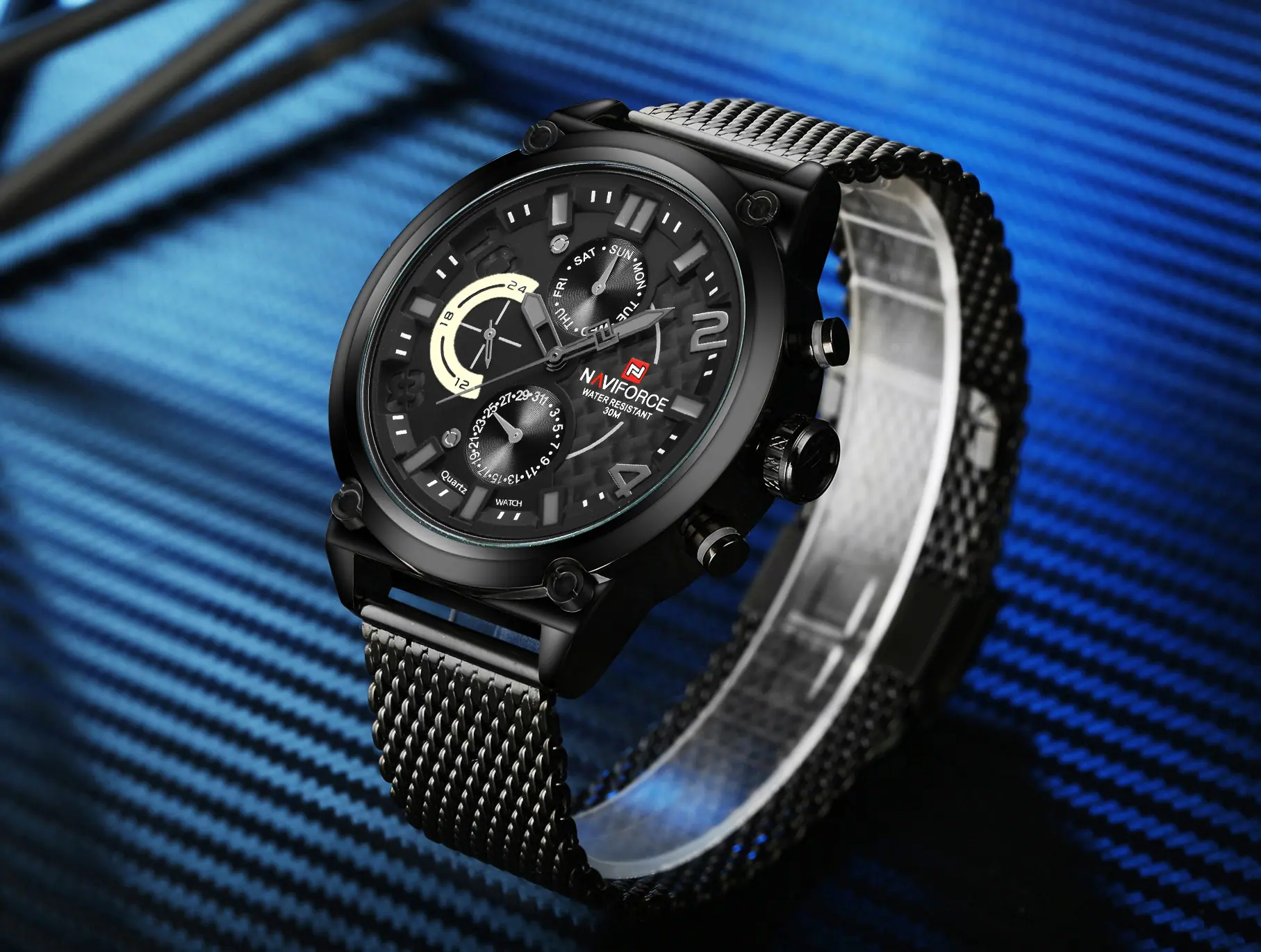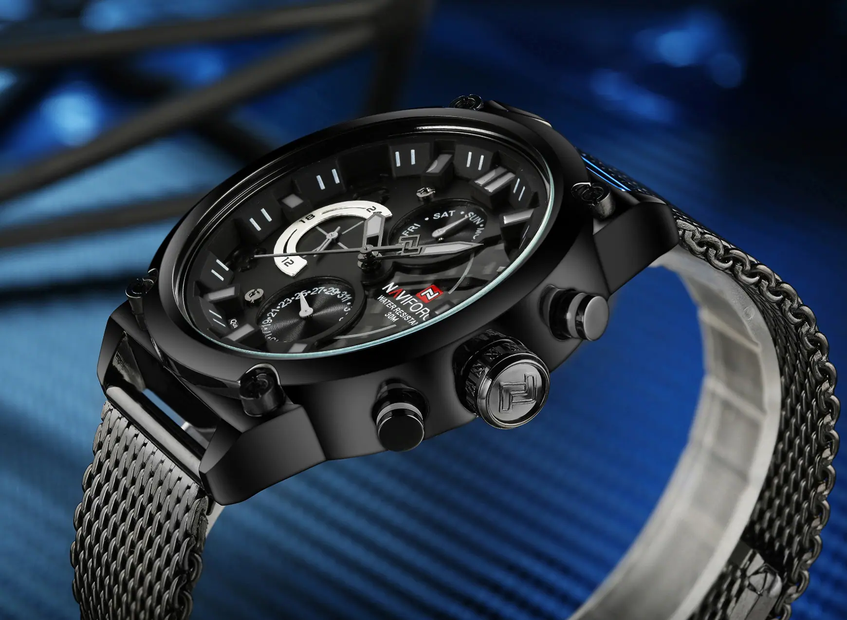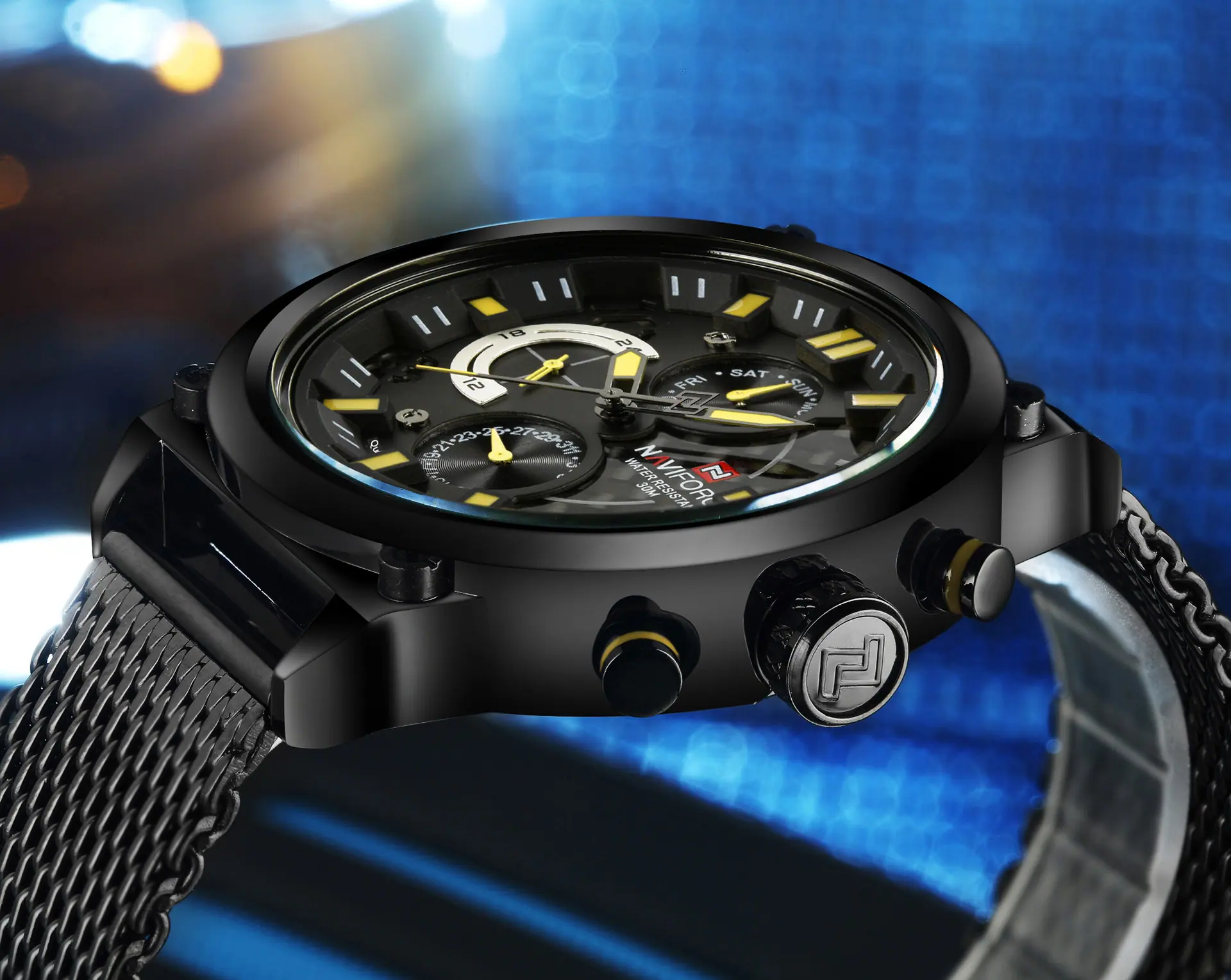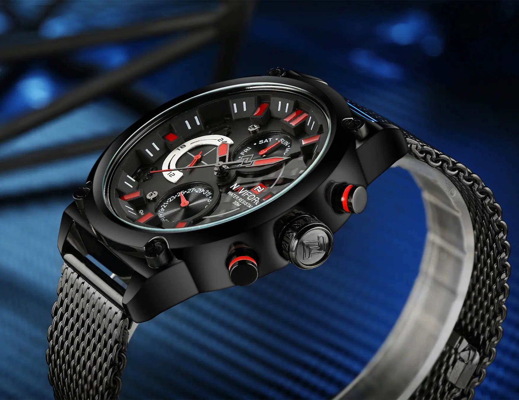 Reloj para Hombre Naviforce Lingxiang 9068S Estudiante Digital Deportivo Moda Correa de Malla Tejida Reloj de Cuarzo