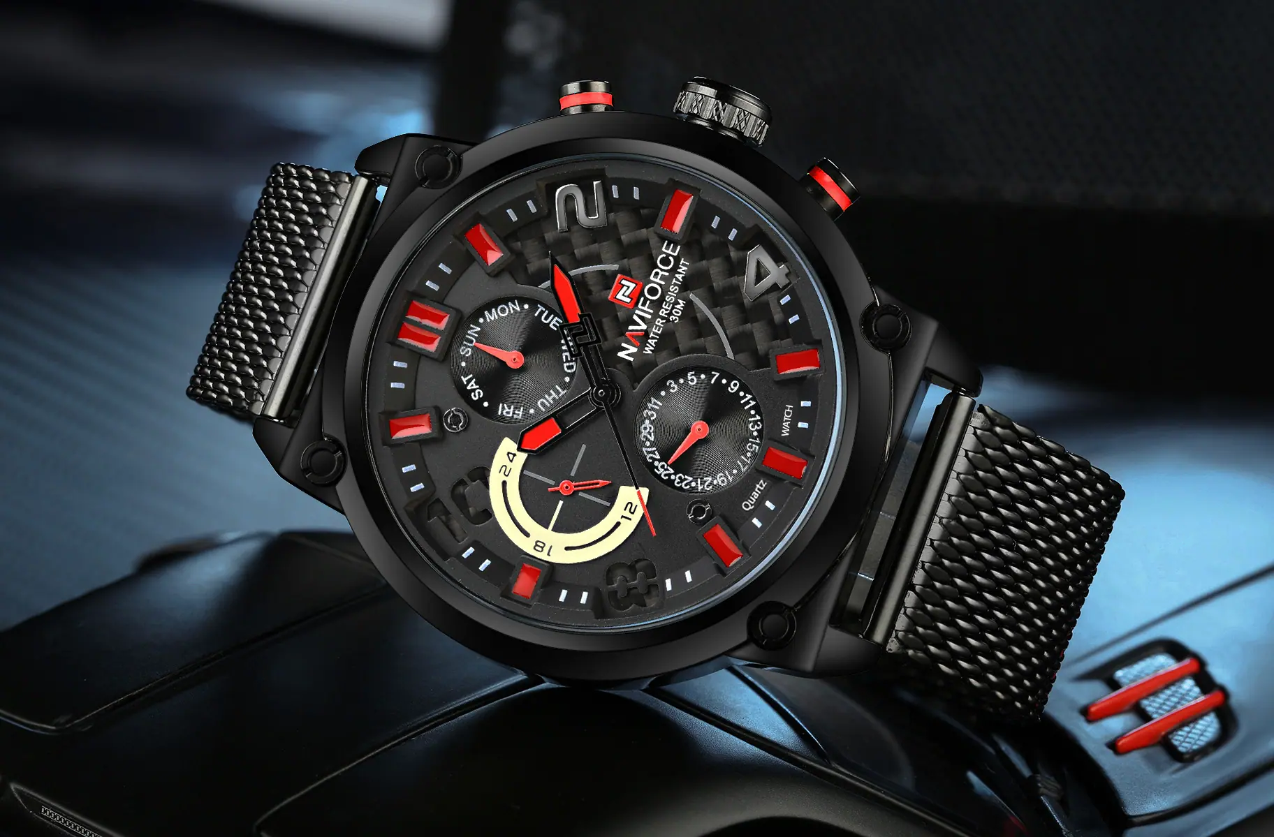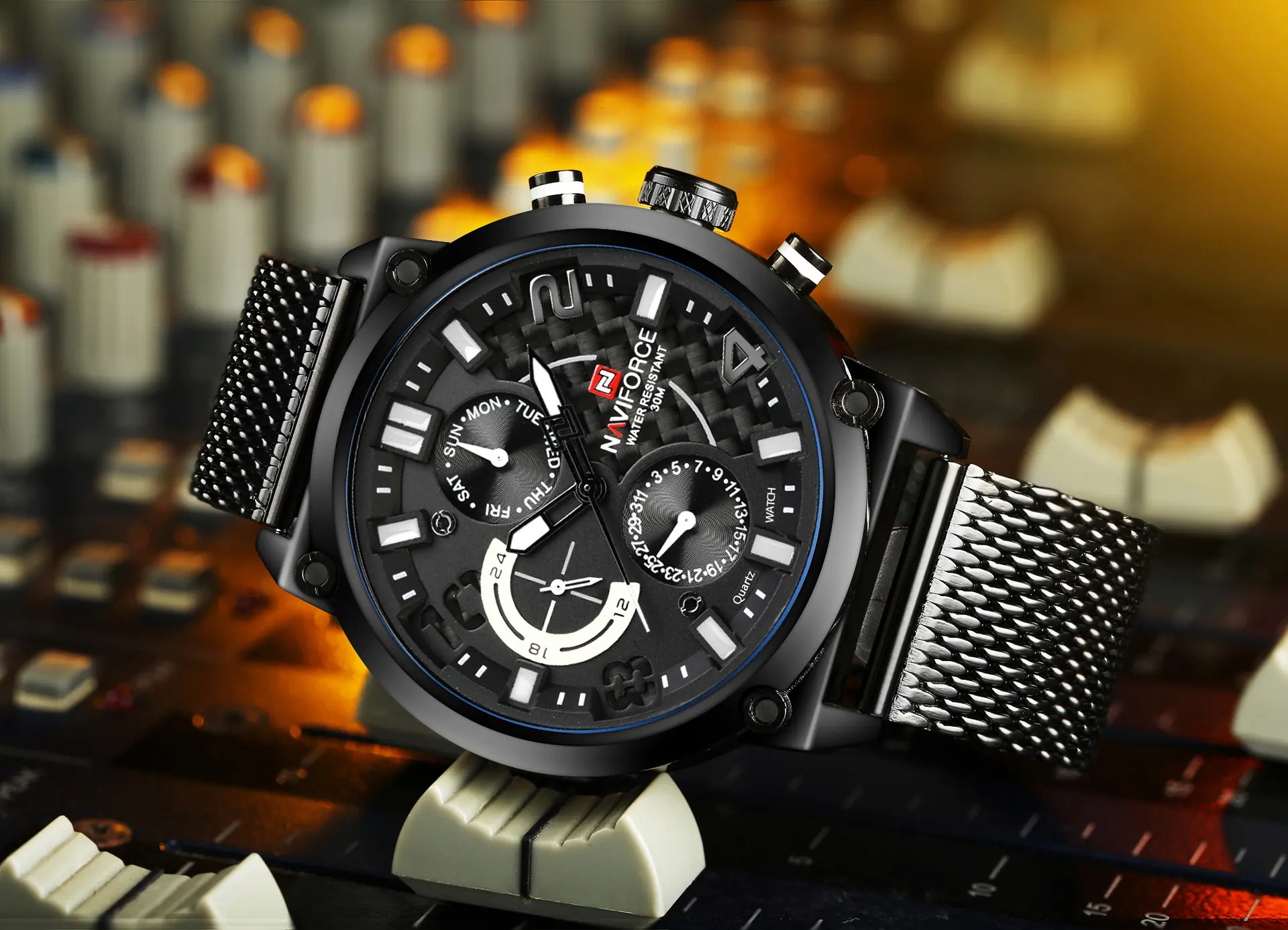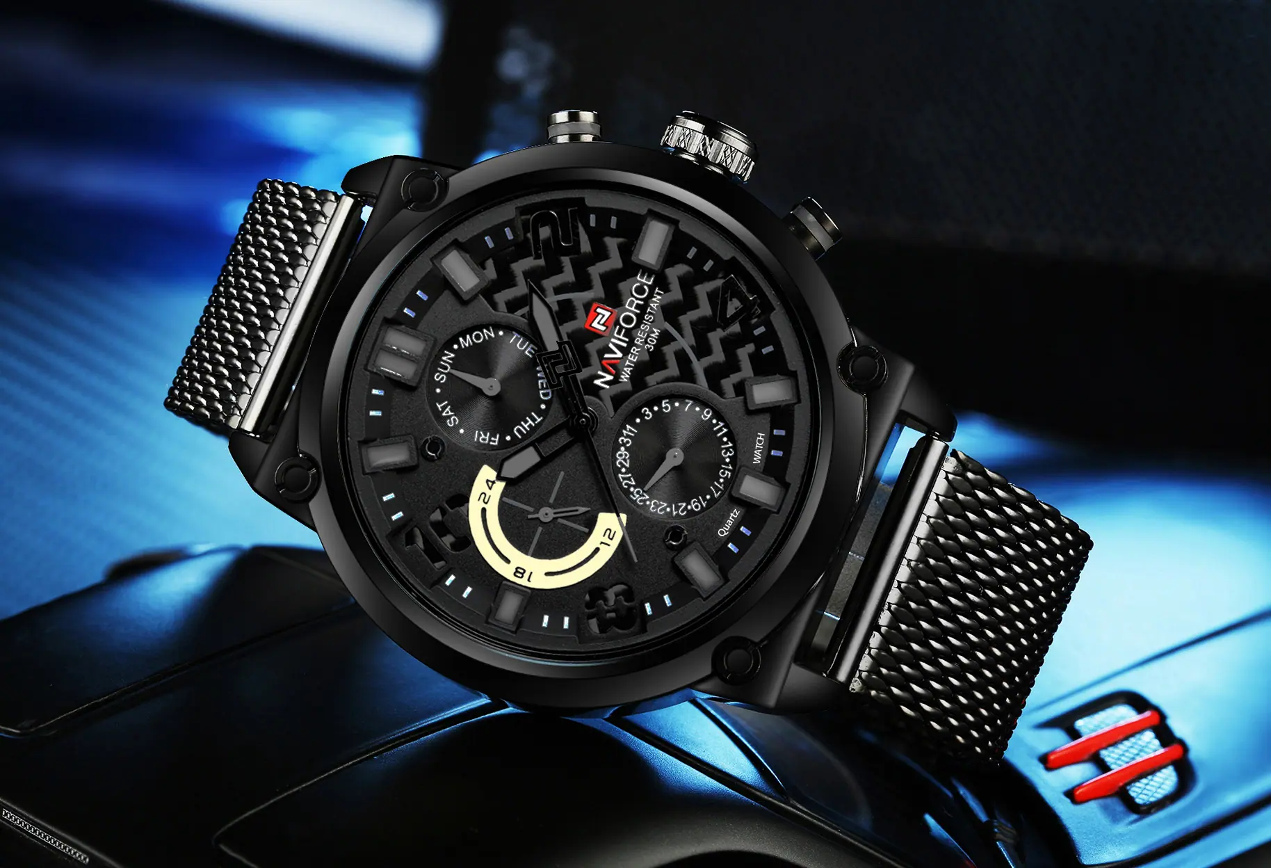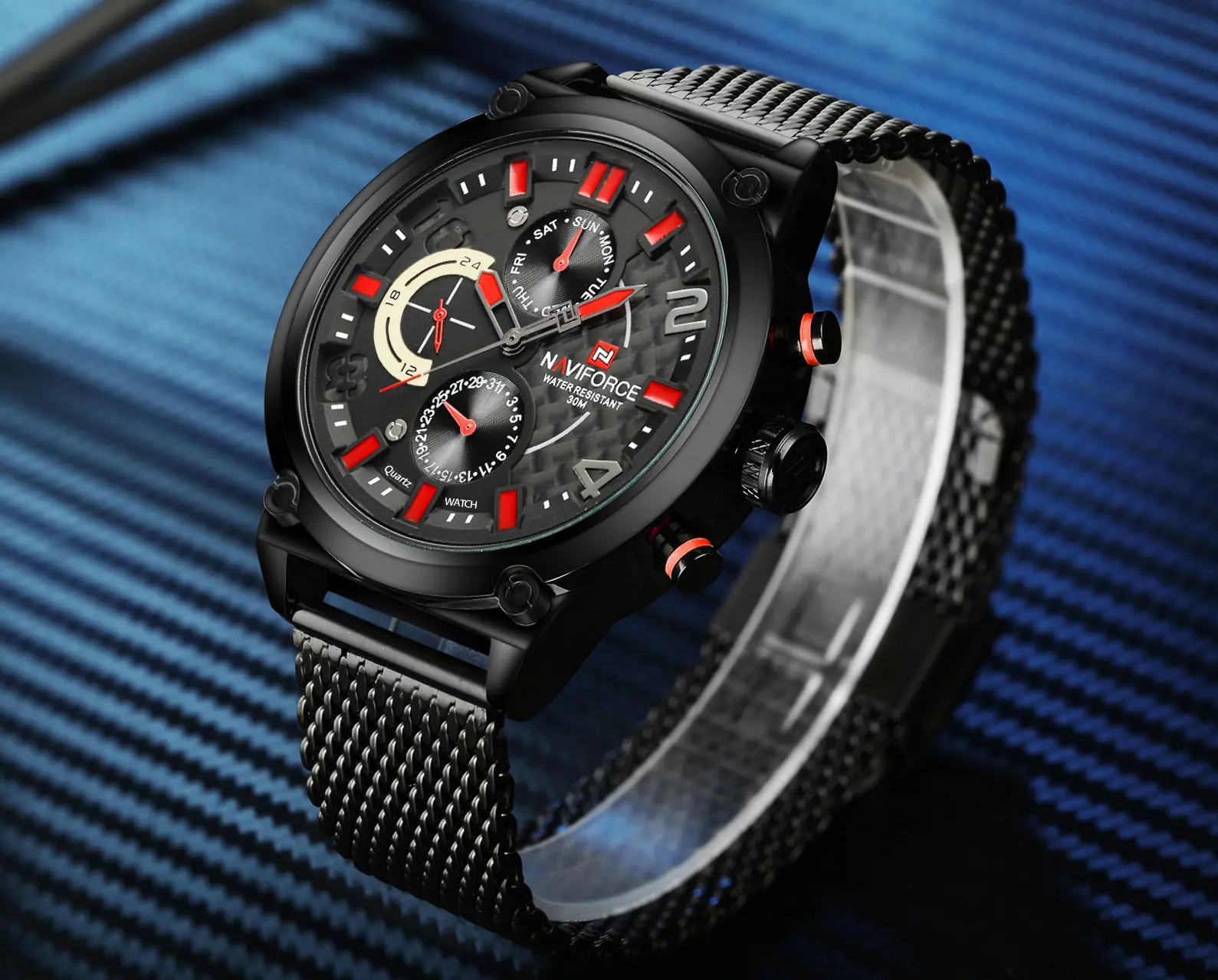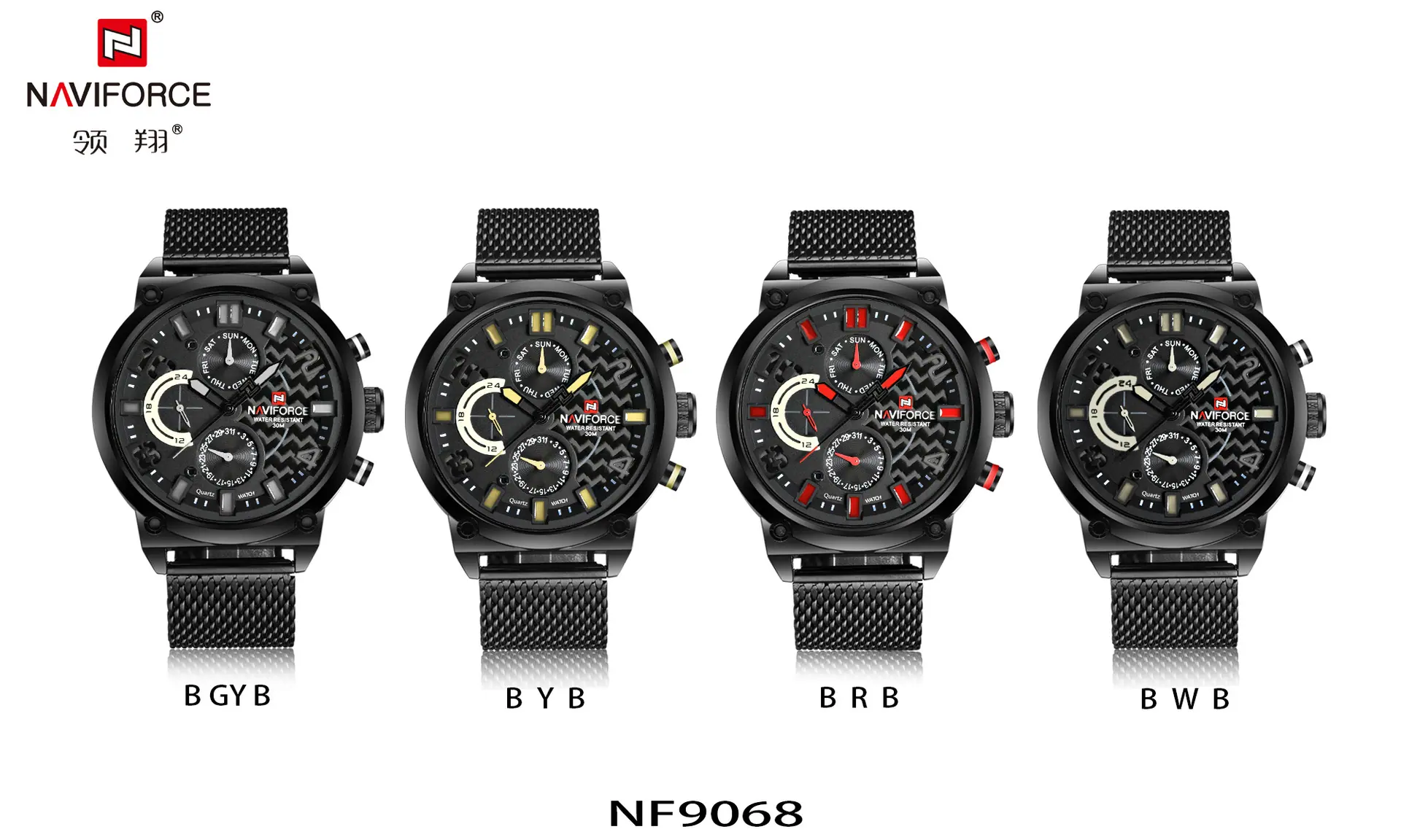 Reloj para Hombre Naviforce Lingxiang 9068S Estudiante Digital Deportivo Moda Correa de Malla Tejida Reloj de Cuarzo