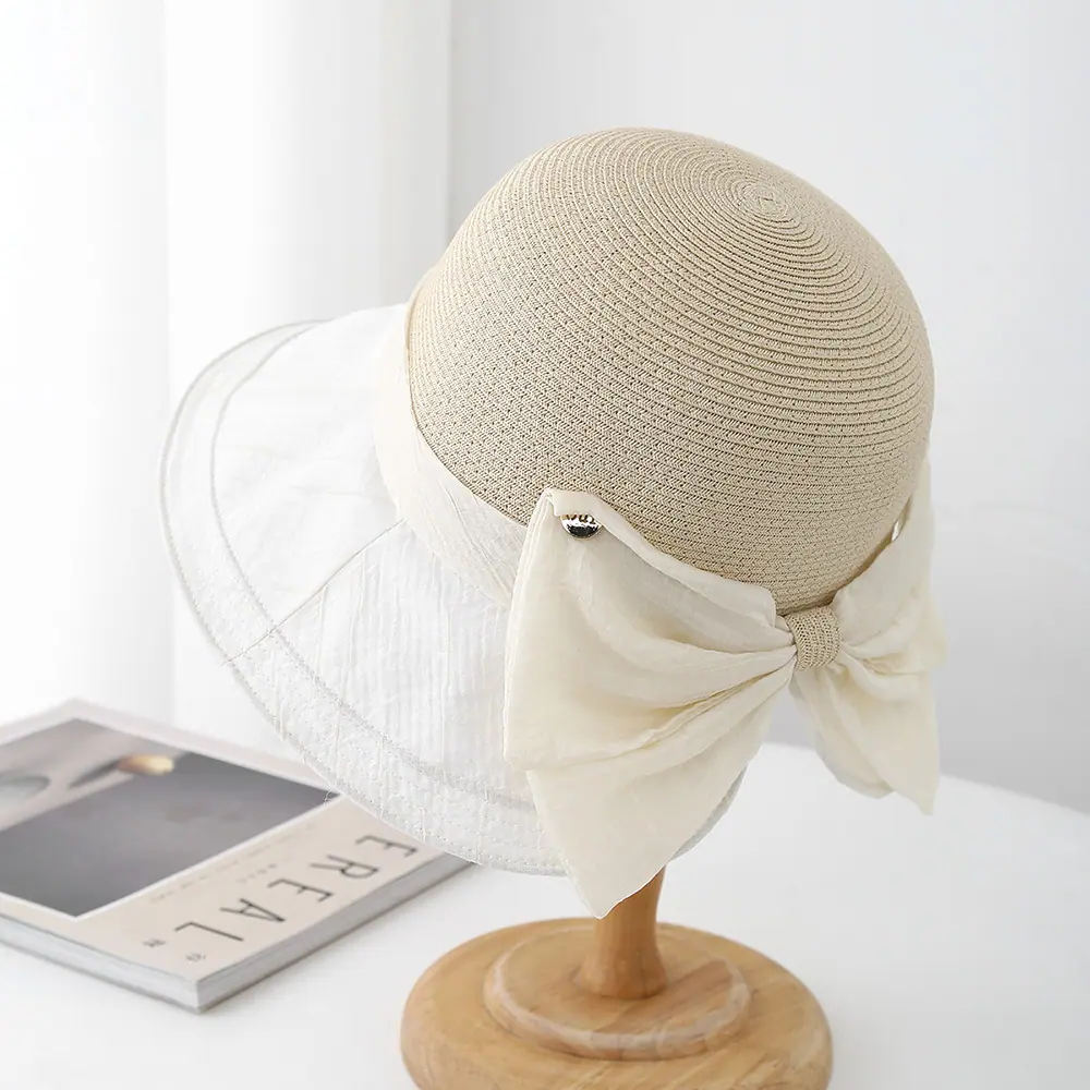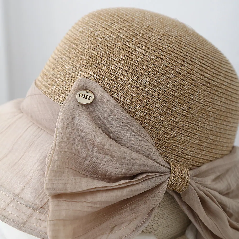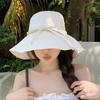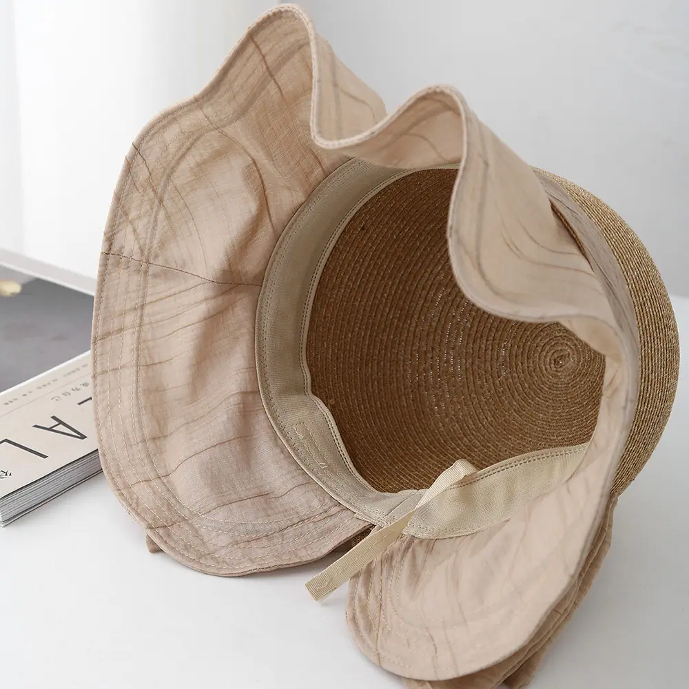 Sombrero de paja de verano para mujer, de alta calidad, con costuras, estilo pescador, protector solar, con lazo, 2025