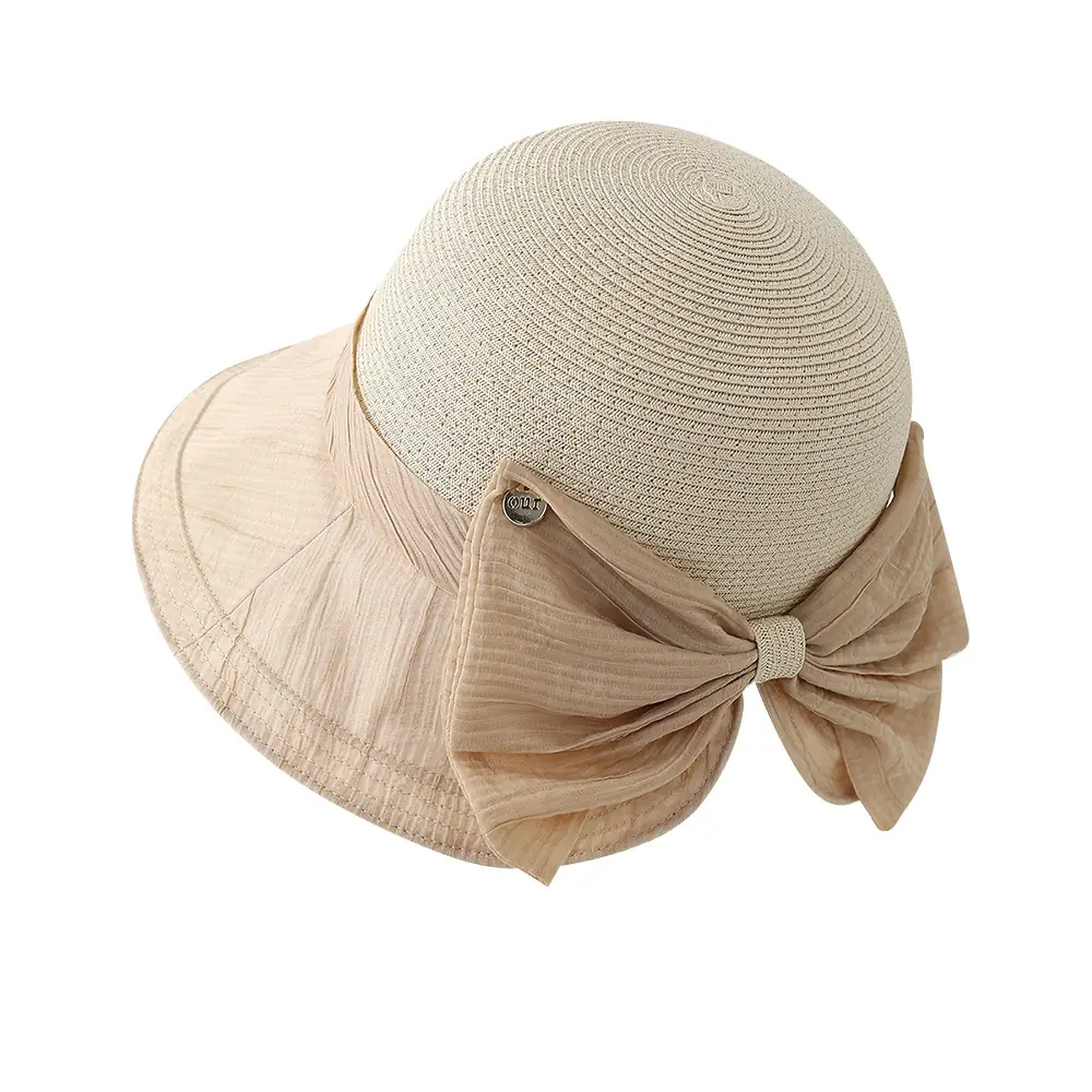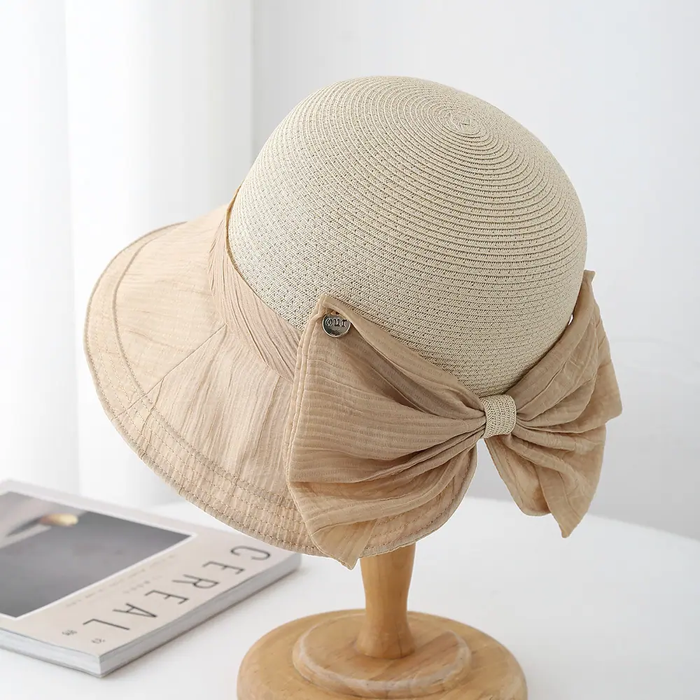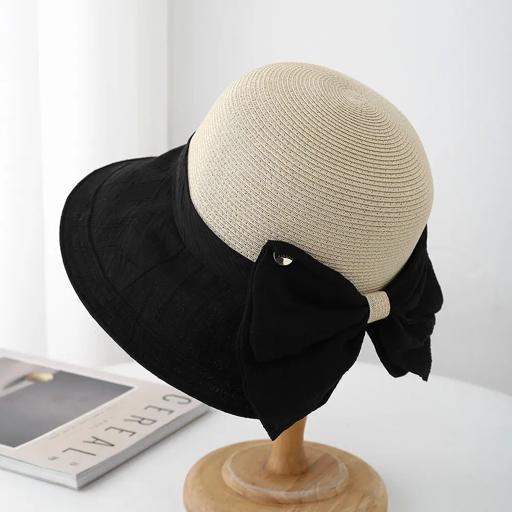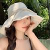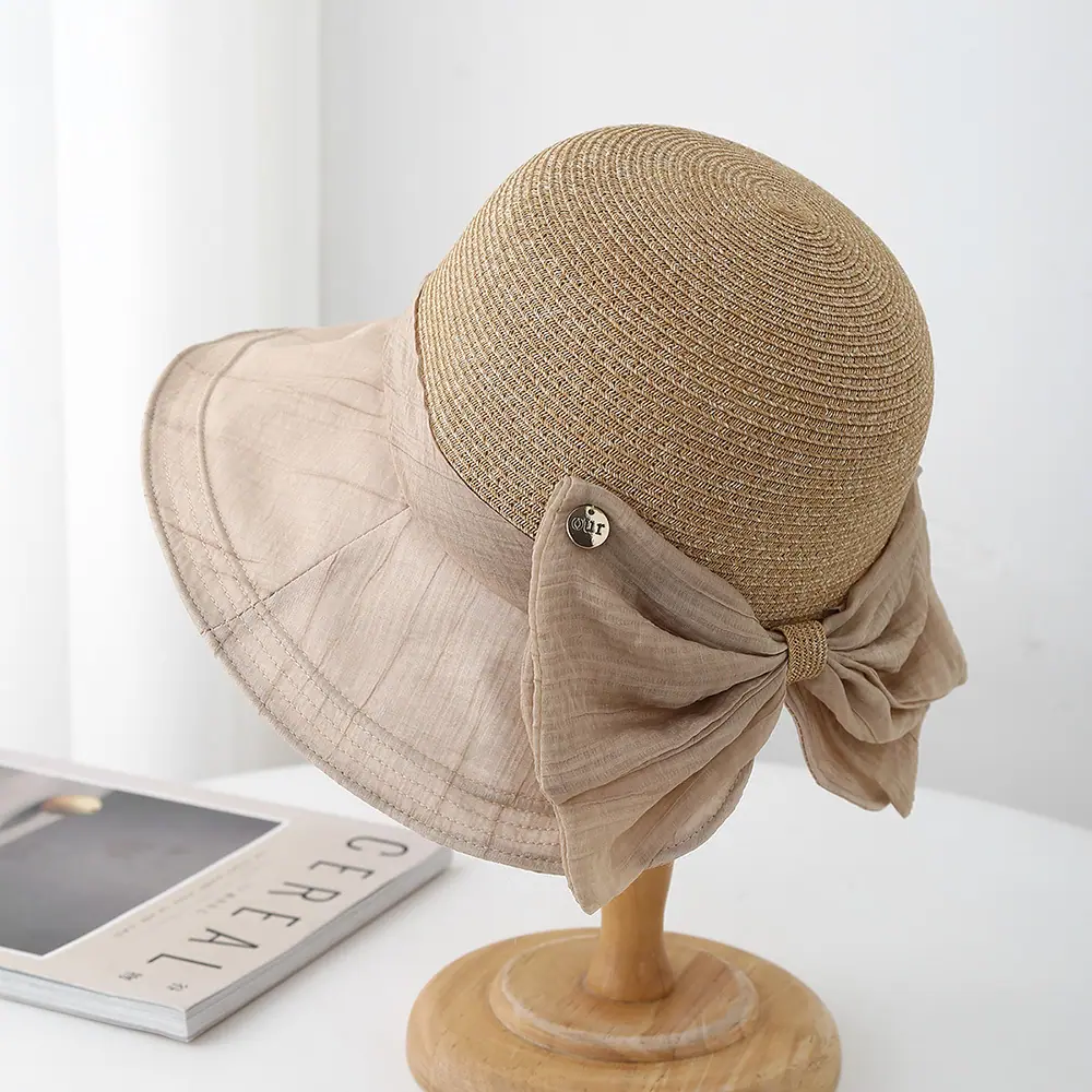 Sombrero de paja de verano para mujer, de alta calidad, con costuras, estilo pescador, protector solar, con lazo, 2025