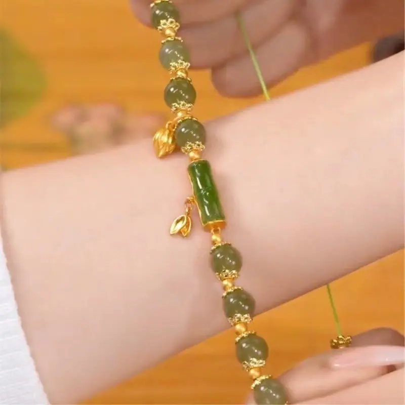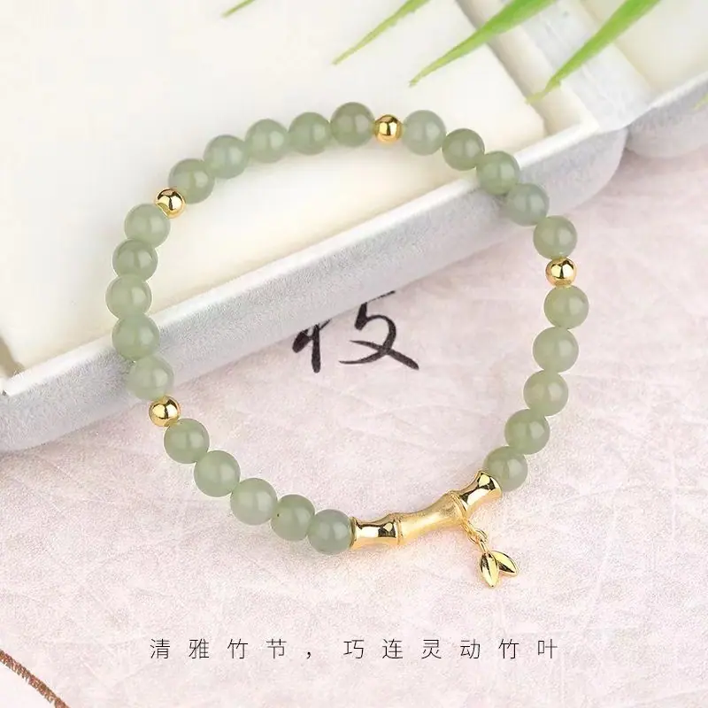 En stock pulsera nueva de festival alta 6mm cuentas de jade Dongling imitación jade Hetian natural pulsera segura para novia