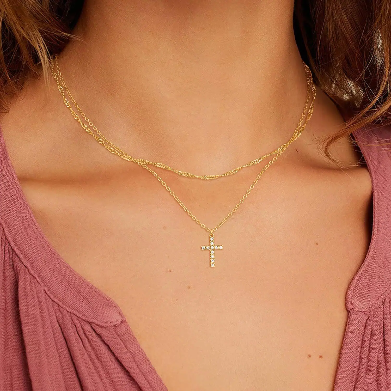 Collar con colgante de cruz de acero inoxidable chapado en oro de 18 quilates de moda transfronteriza, cadena ajustable para la clavícula, simple y a la moda