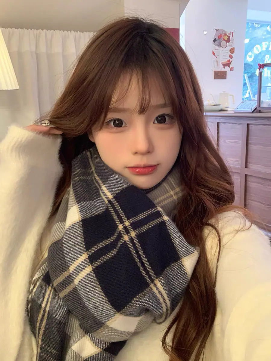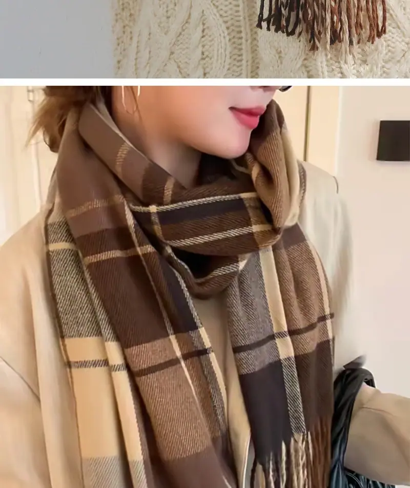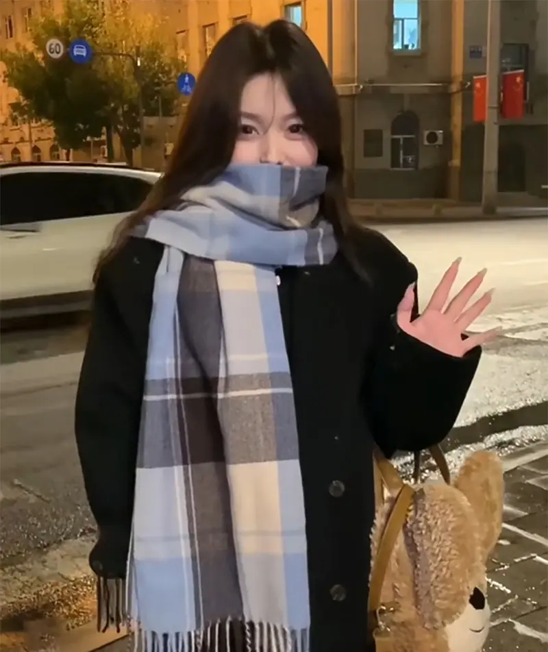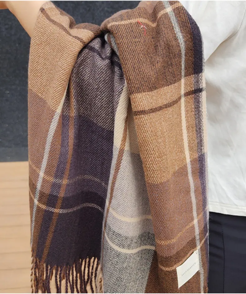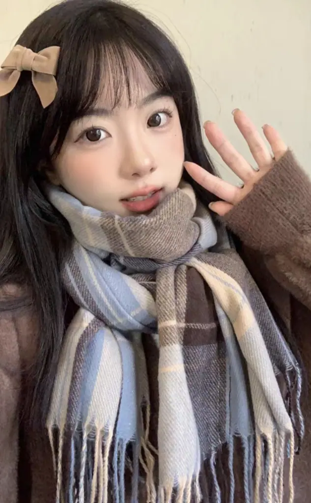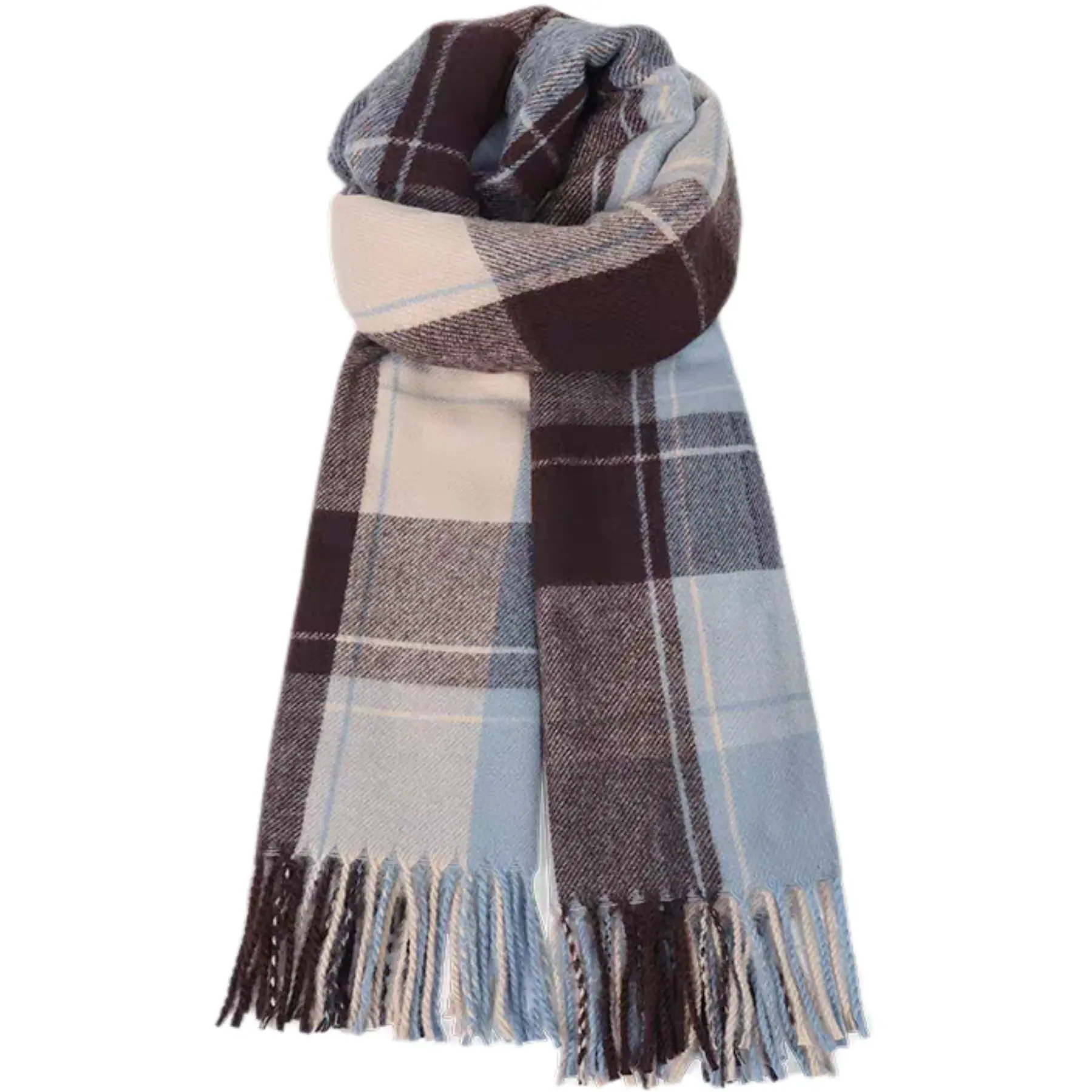 Suministro Directo de Fábrica 2025 Bufanda de Cachemira Imitación a Cuadros Azul para Mujer Otoño e Invierno Nuevo Chal Bufanda de Lana de Alta Gama