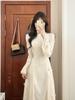 Terciopelo Bordado Mariposa Tridimensional Estilo Chino Nuevo Vestido Cheongsam Blanco Estilo Nacional Falda Larga con Botones