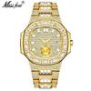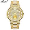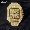 Missfox Reloj de Hombre Europeo y Americano Dorado Romano Hip-Hop Aliento de Bebé Diamante Cuadrado Reloj de Cuarzo de Moda