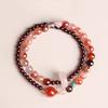 Pulsera Flor Roja Granate Pegada, Pulsera de Cristal Natural de Alta Gama de Doble Círculo, Pulsera Anillo Corredizo de Ágata Estilo Chino Nuevo