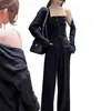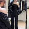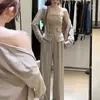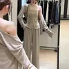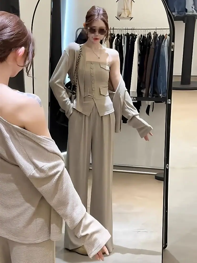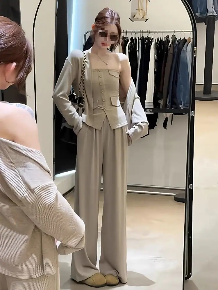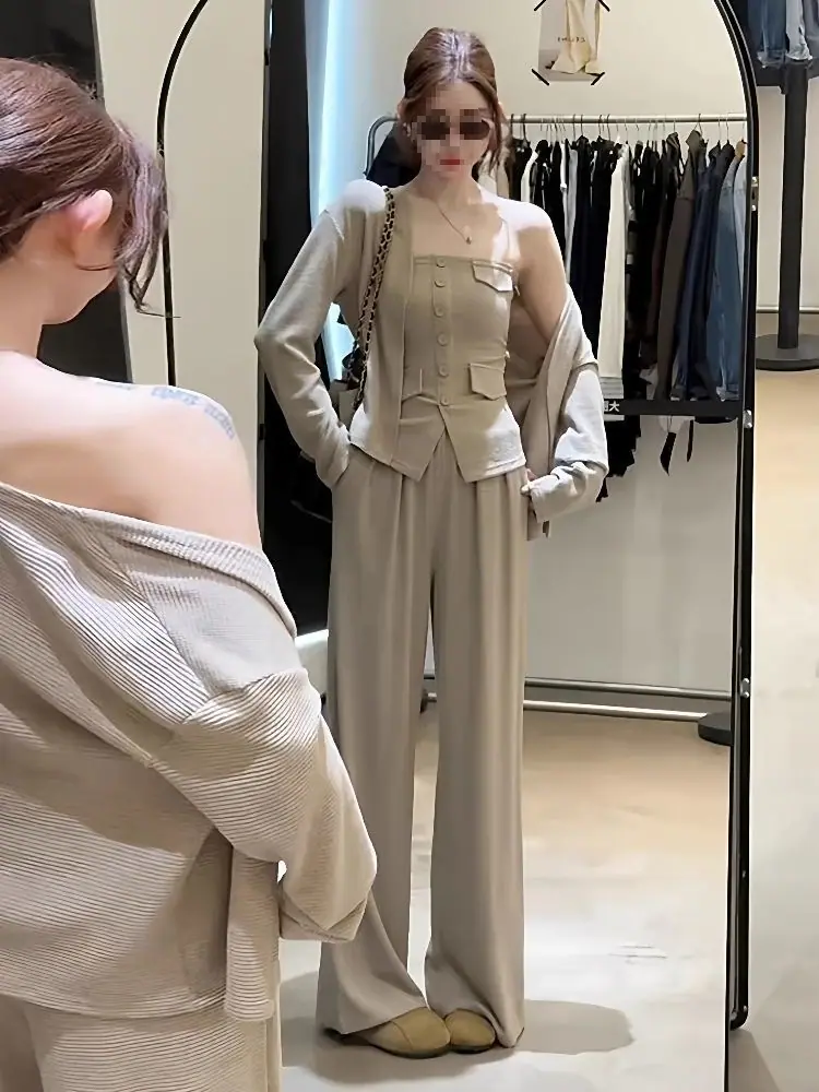 Cárdigan de Manga Larga Estilo Retro Casual Coreano Ropa Interior Casual Pantalones de Pierna Ancha Conjunto de Tres Piezas para Mujer Otoño 2025 Nuevo Conjunto
