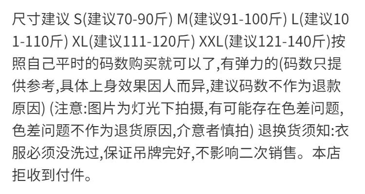 S Recommended weight 70-90 catties, M Recommended weight: 91-100 catties, L Recommended 101-110 catties, XL re...