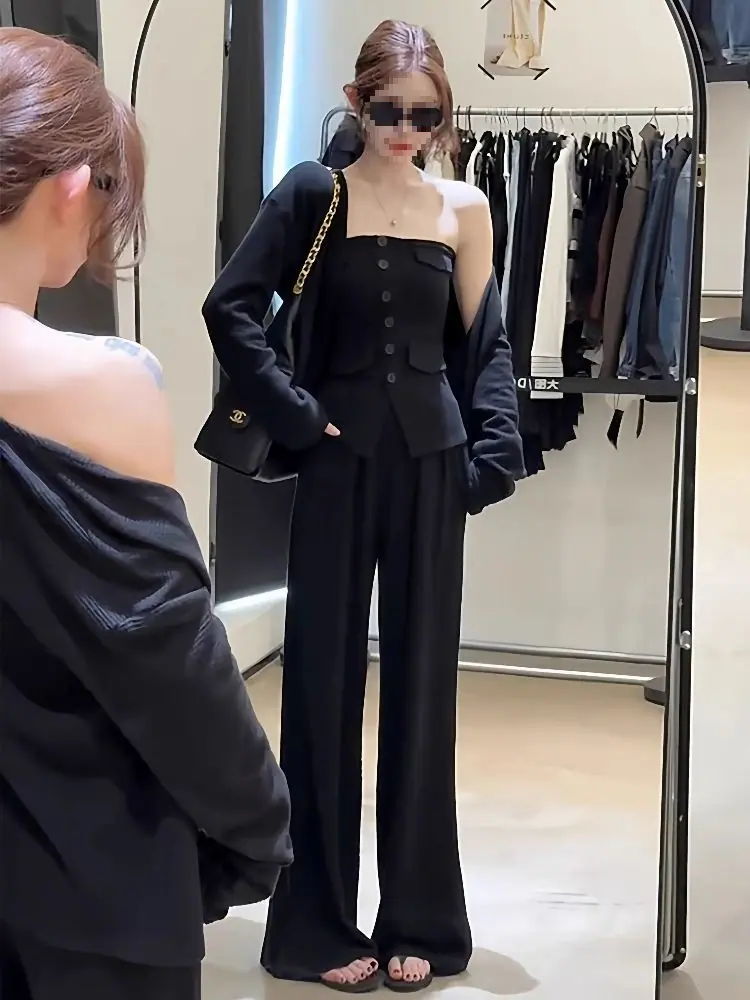 Khaki three-piece set 【Collection follow store priority delivery】, Black three-piece set 【Collection and follo...