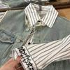 Chaleco de Moda Niños 2025 Traje Camisa Elegante Versión Coreana Conjunto de Tres Piezas a Rayas para Niños Nuevo Popular Denim