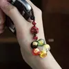Esmalte de color cinco vías dios de la riqueza cuerda roja negra cinabrio cadena para teléfono móvil colgante para bolso llavero de cristal púrpura arena dorada zodiaco