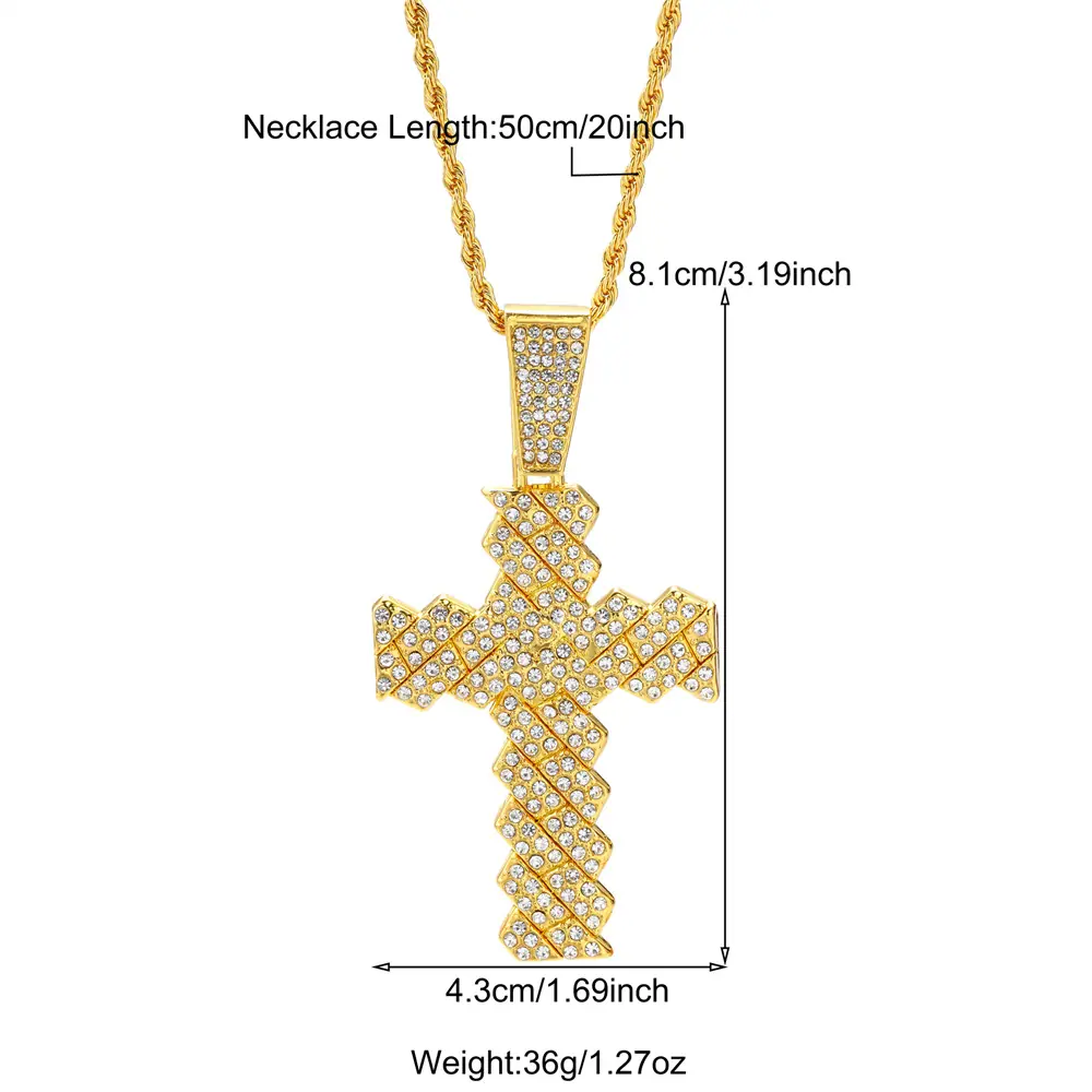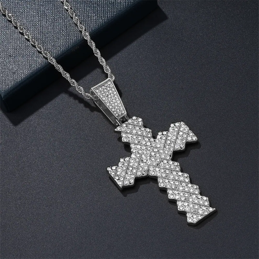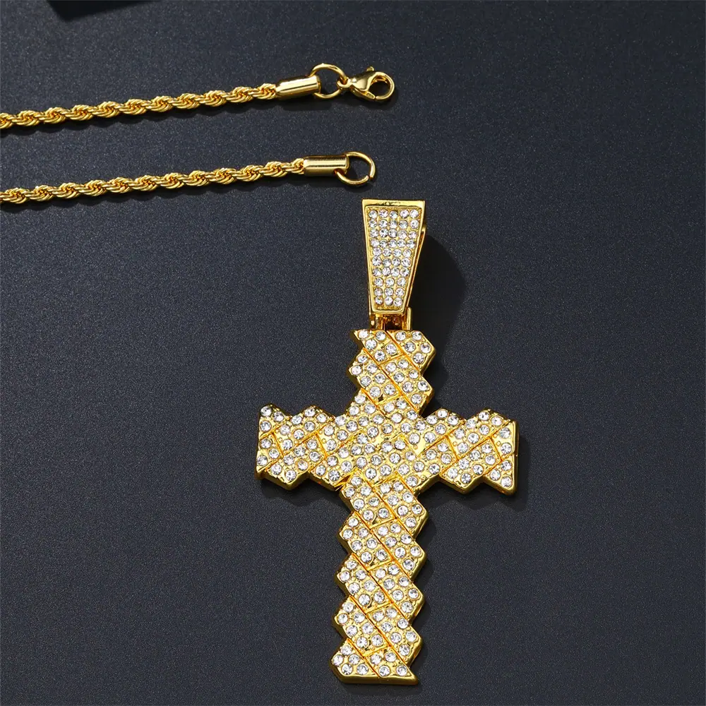 Joyería hip-hop europea y americana transfronteriza circón diamante completo colgante de cruz collar personalidad simple cadena clavicular hip-hop venta al por mayor