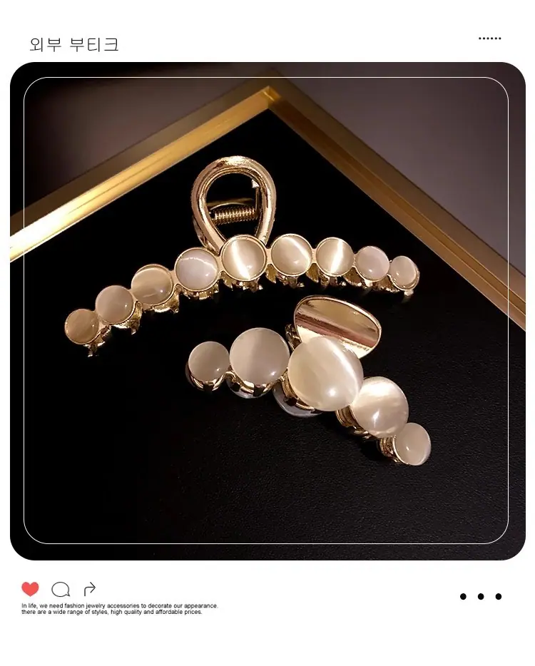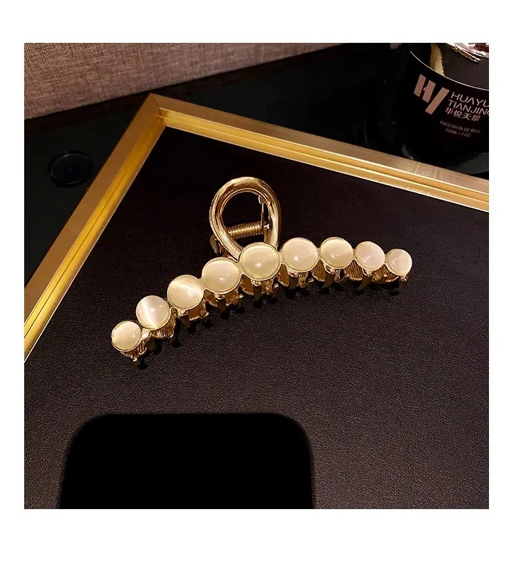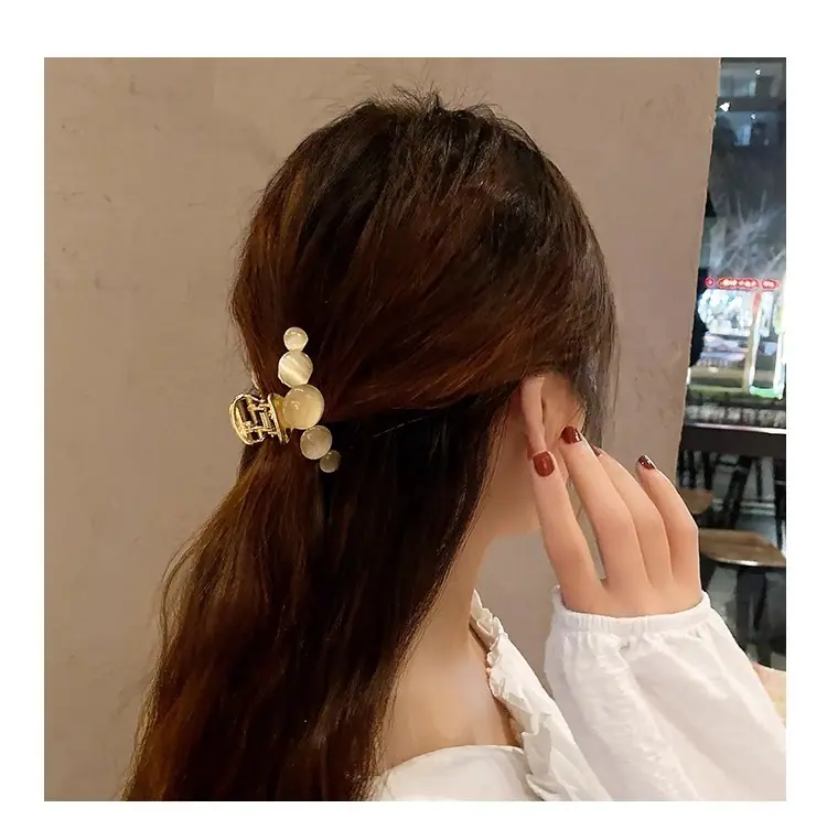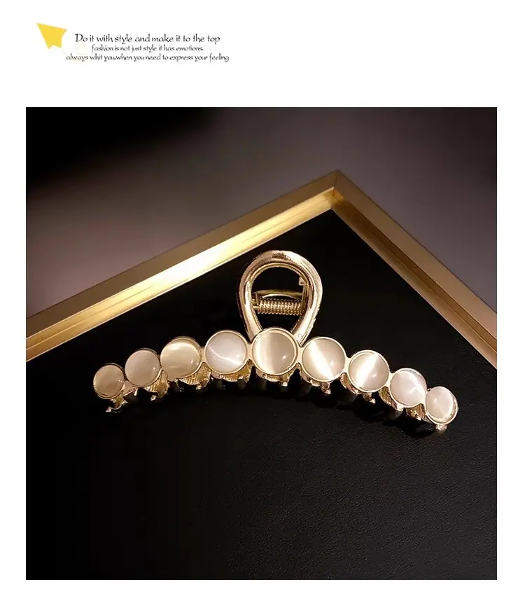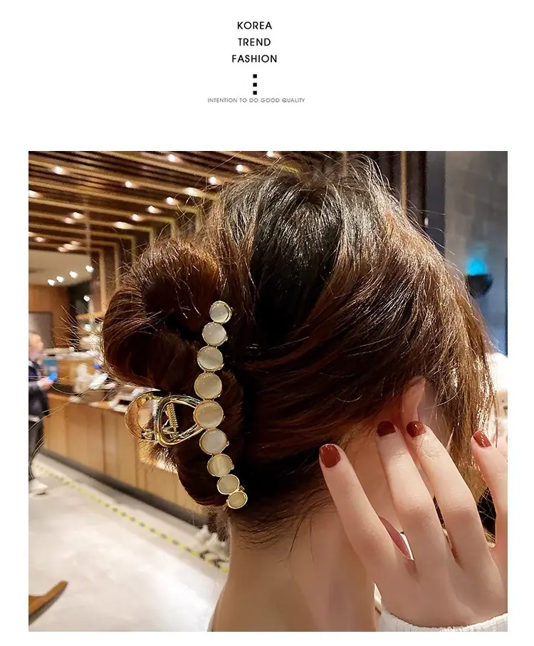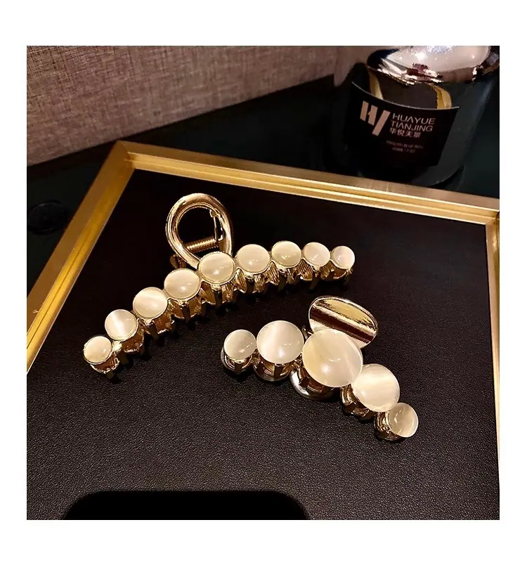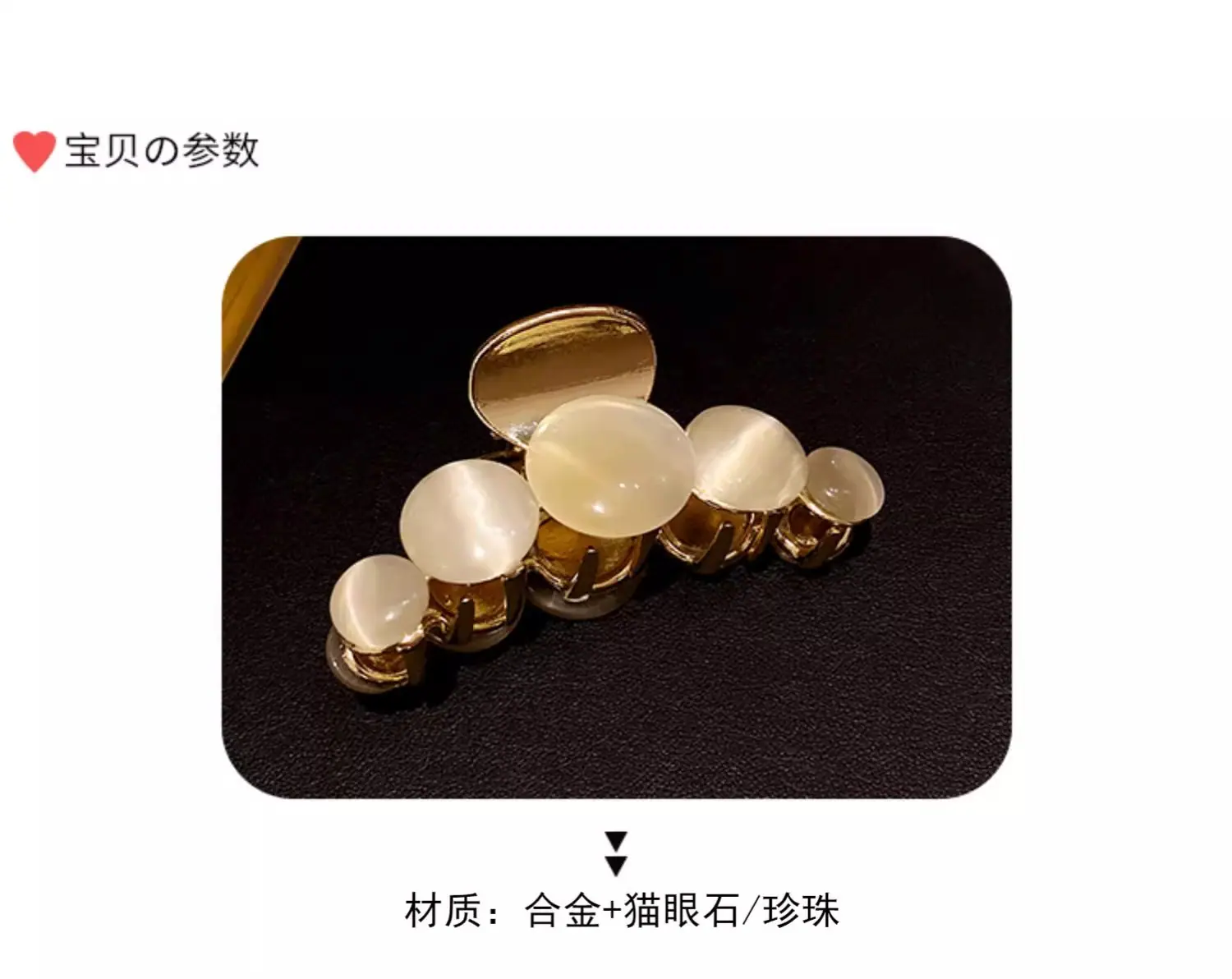 Pinza para el cabello Semirrecogido Pinza para el cabello Pinza grande de agarre Piedra ojo de gato Nuevo estilo Parte posterior de la cabeza Cabello Elegante Pinza de perlas Tocado para mujer