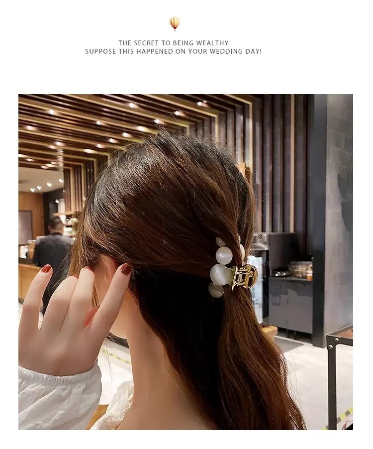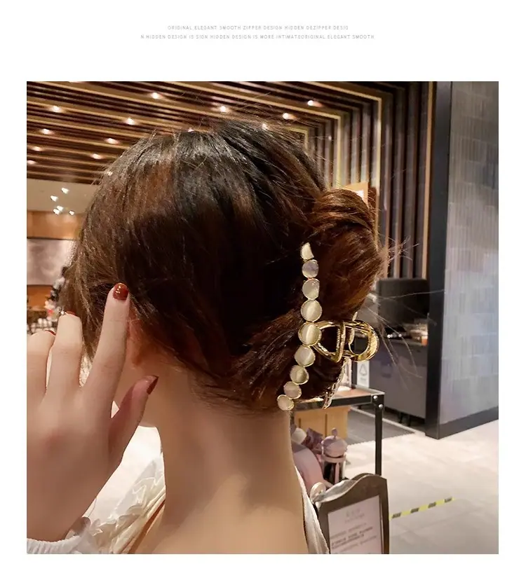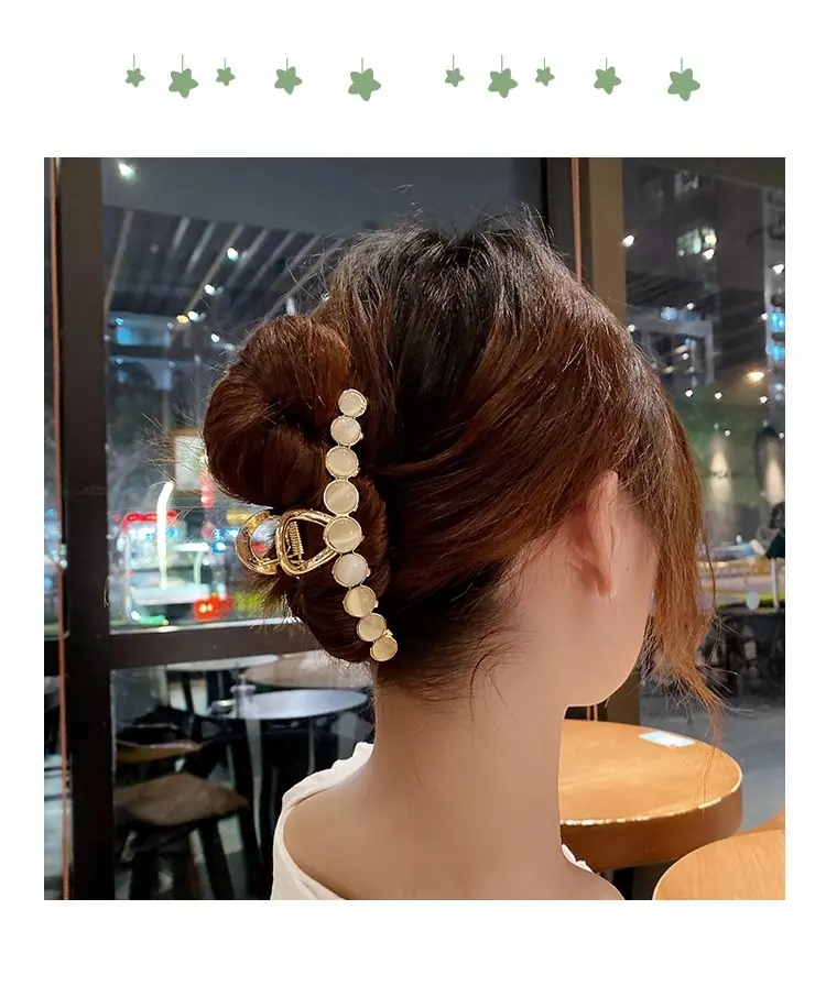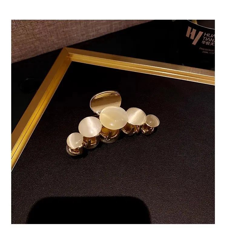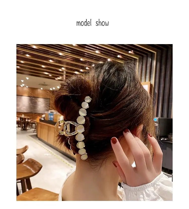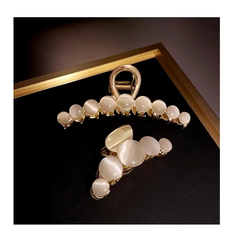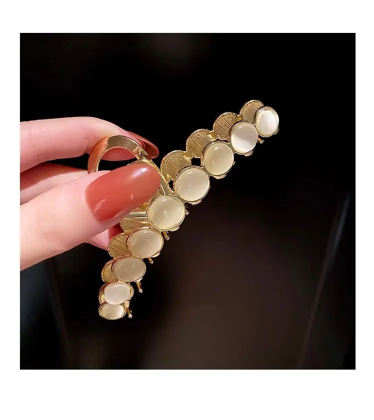 Pinza para el cabello Semirrecogido Pinza para el cabello Pinza grande de agarre Piedra ojo de gato Nuevo estilo Parte posterior de la cabeza Cabello Elegante Pinza de perlas Tocado para mujer