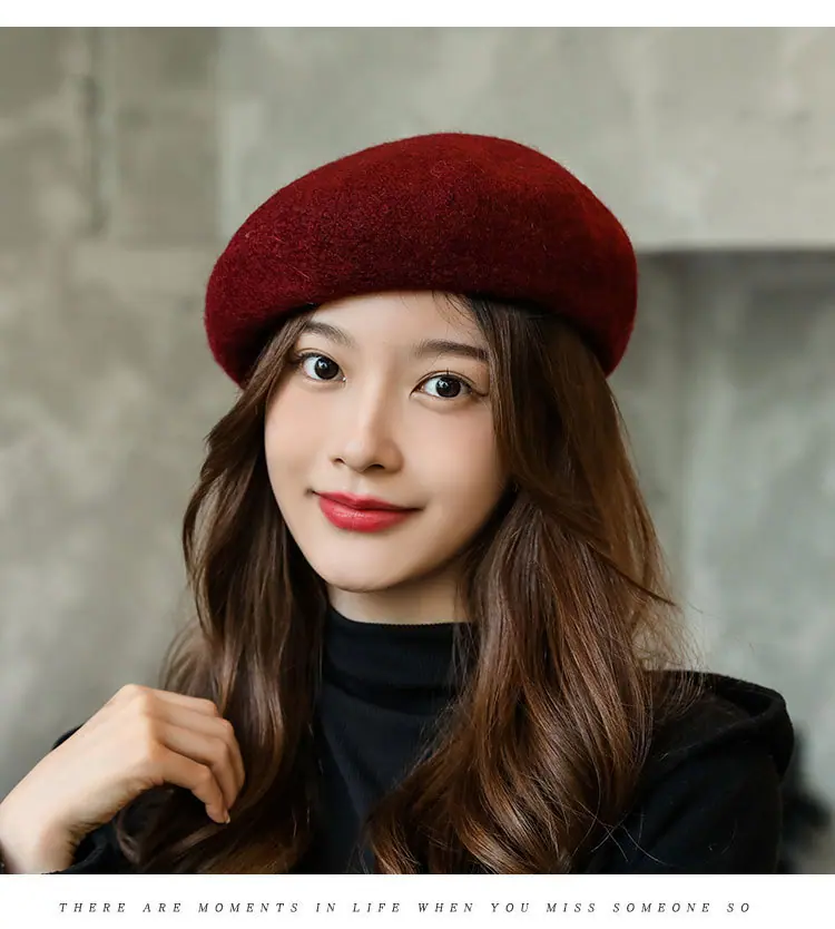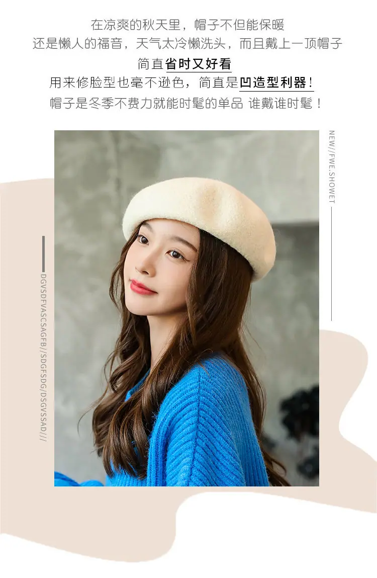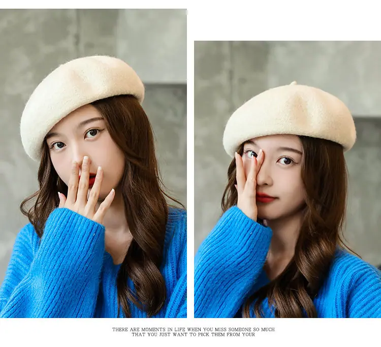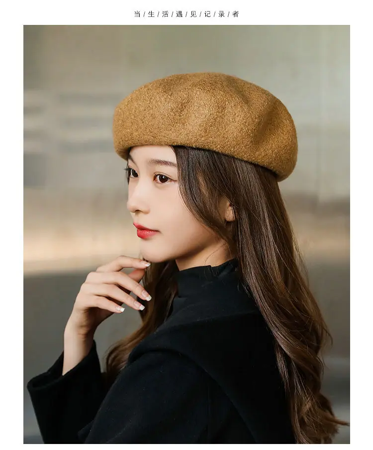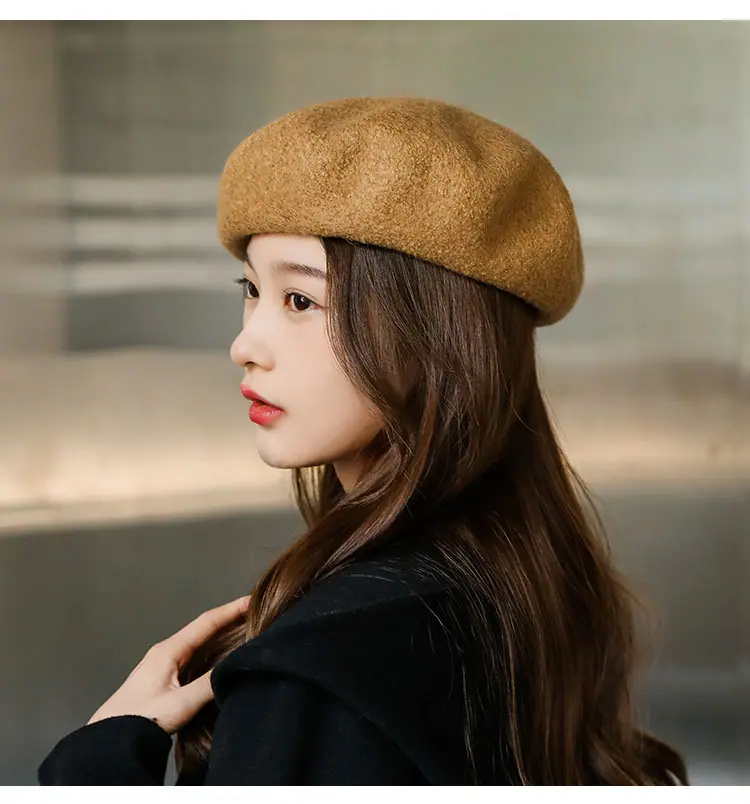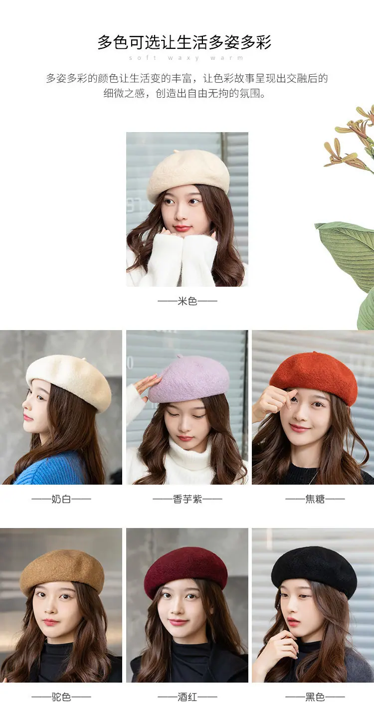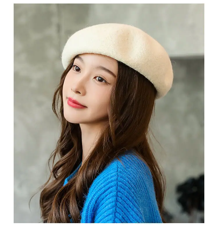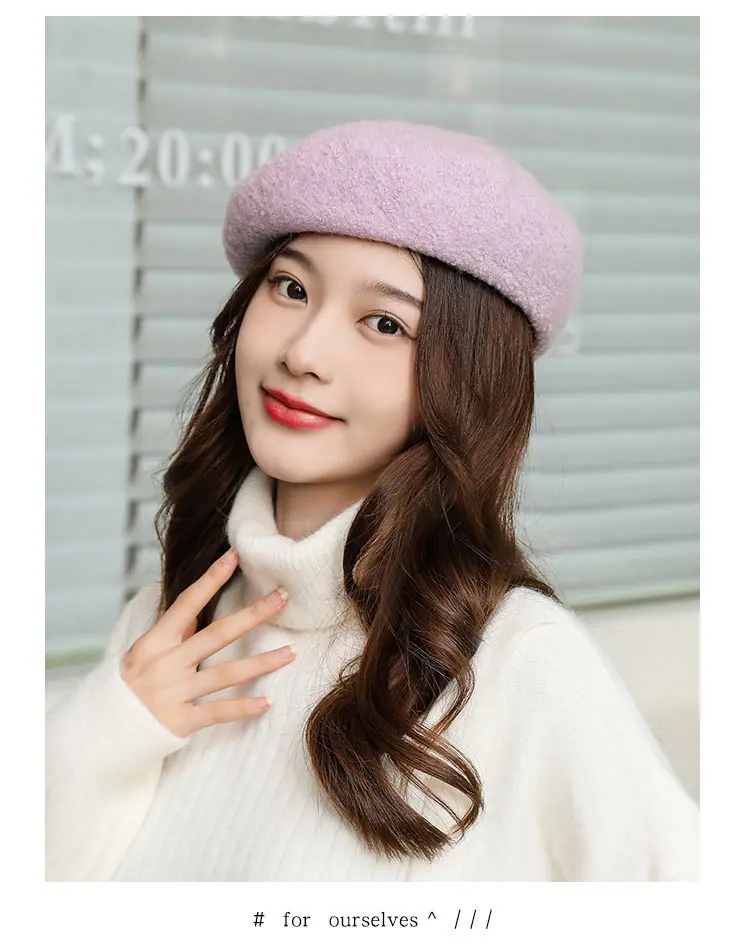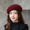 Nuevo Otoño e Invierno Sombrero Dulce de Pintor de Color Sólido para Mujer Ocio al Aire Libre Lana Xizang Sombrero Seta Boina Venta al por Mayor