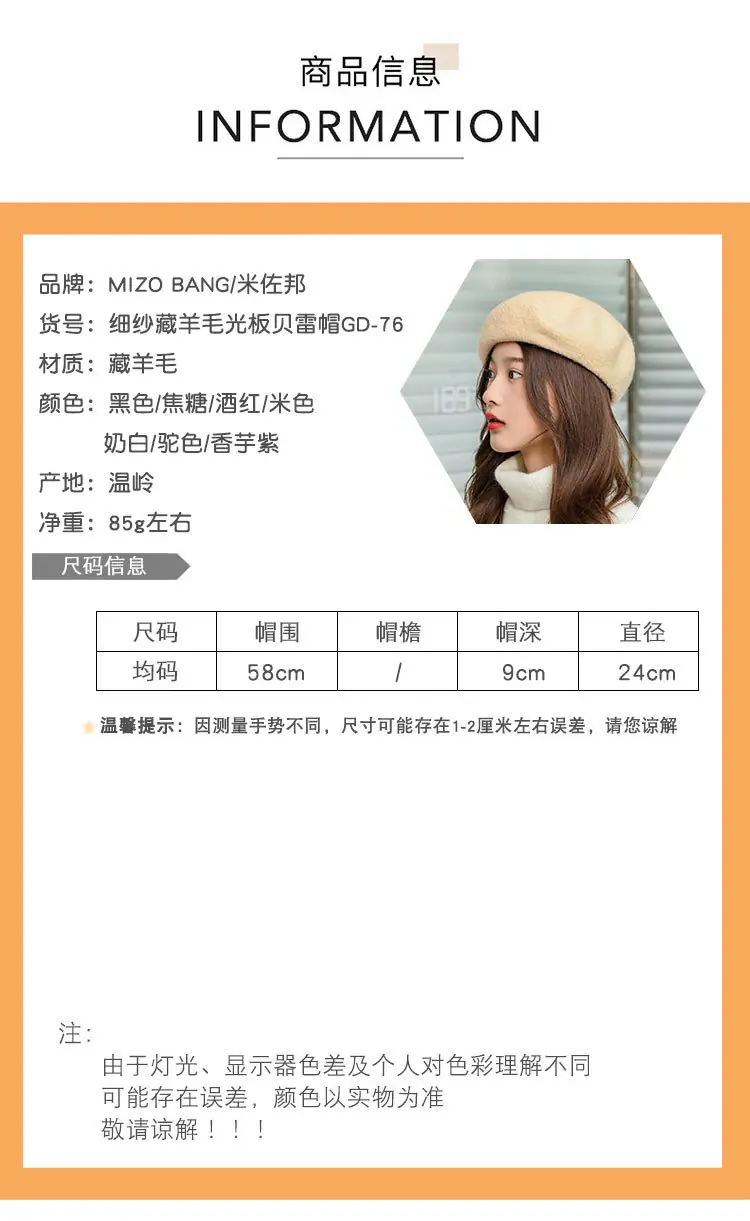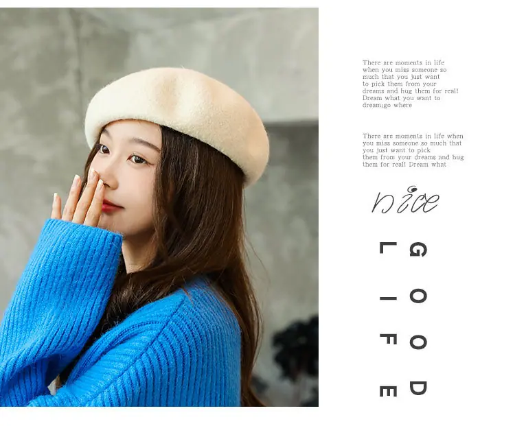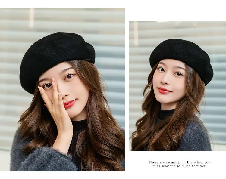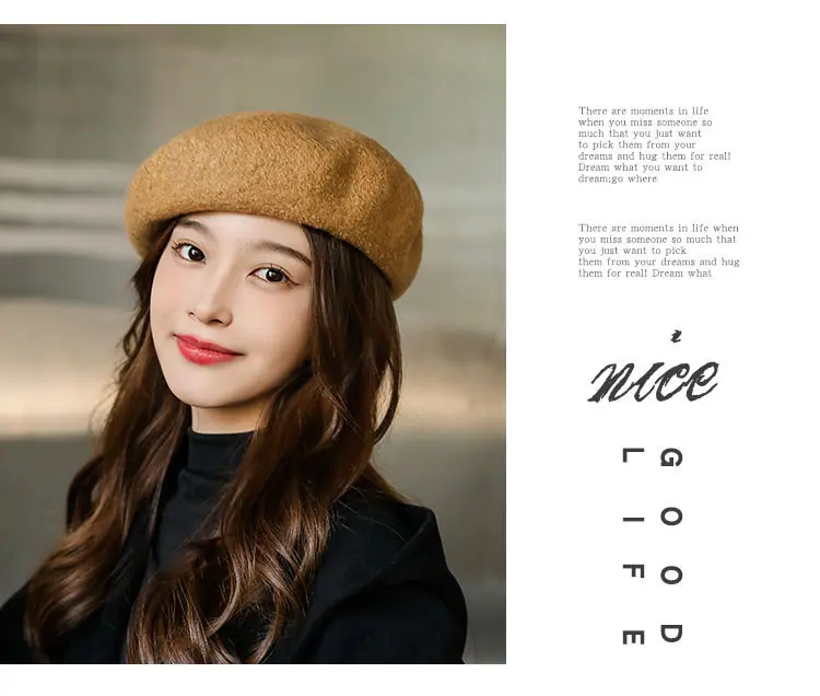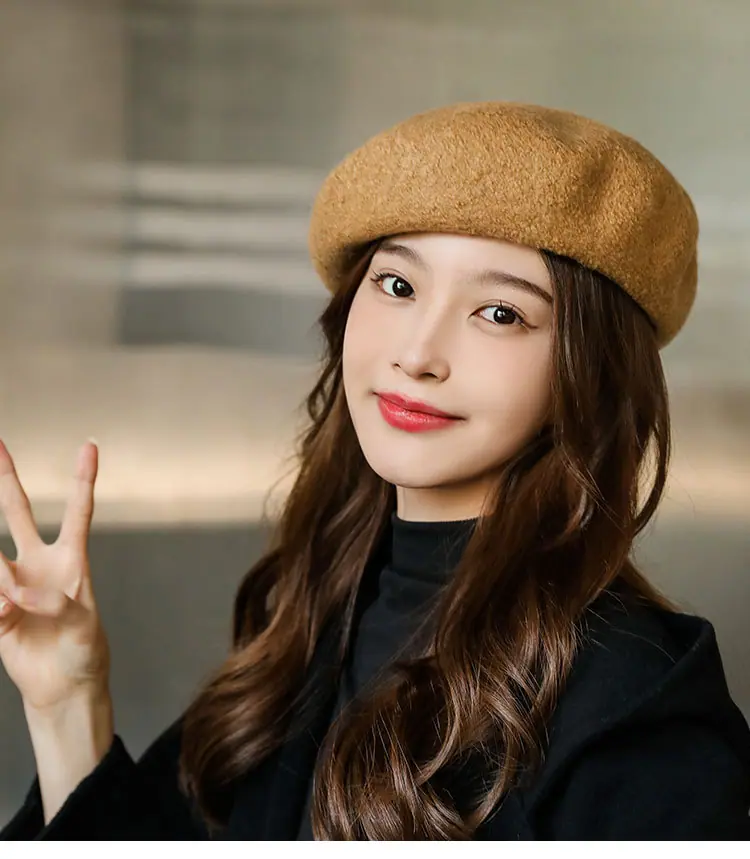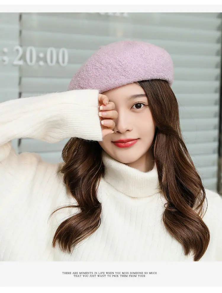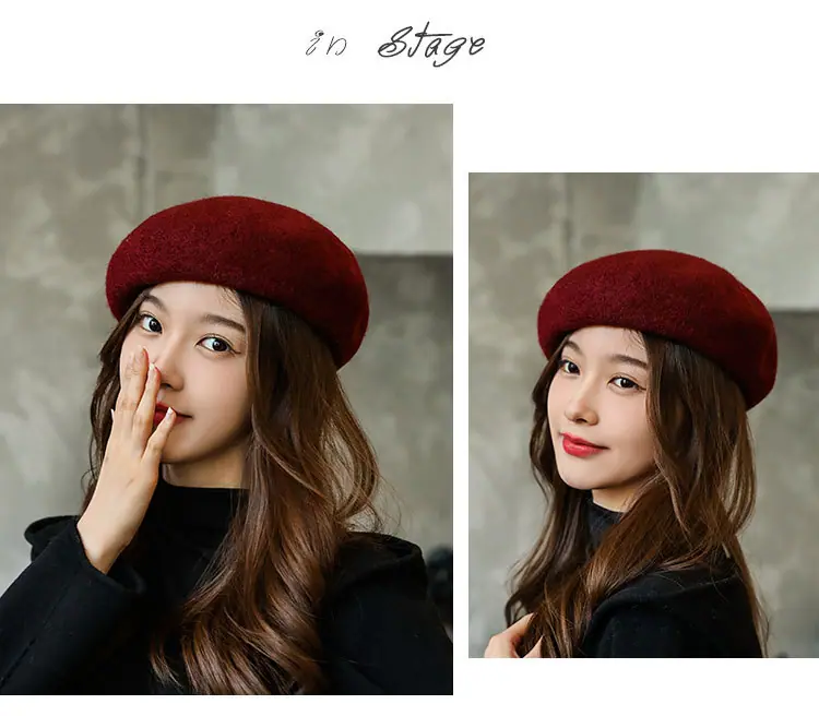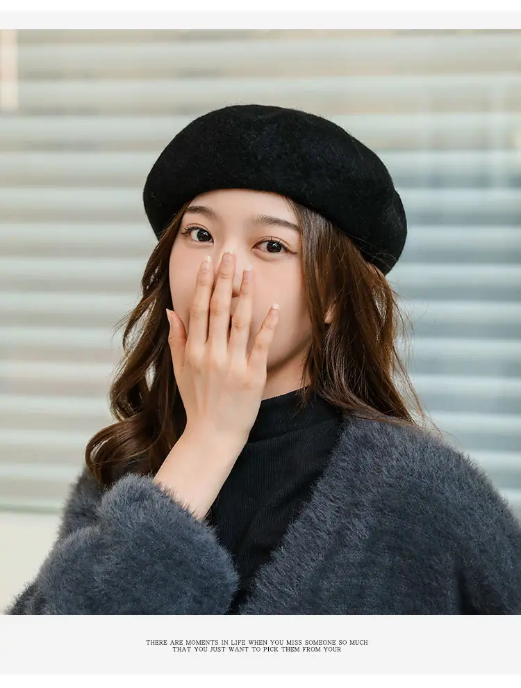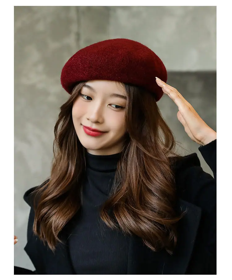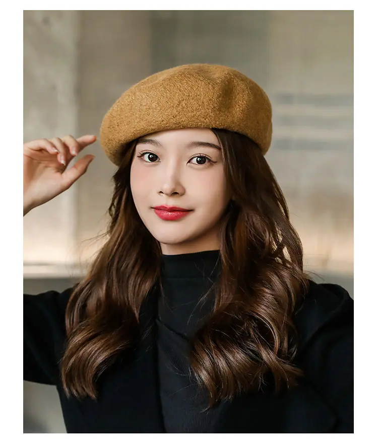 Nuevo Otoño e Invierno Sombrero Dulce de Pintor de Color Sólido para Mujer Ocio al Aire Libre Lana Xizang Sombrero Seta Boina Venta al por Mayor
