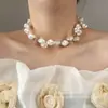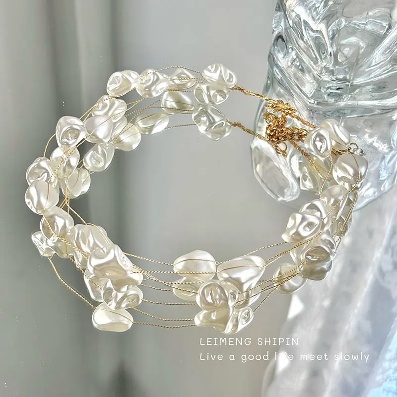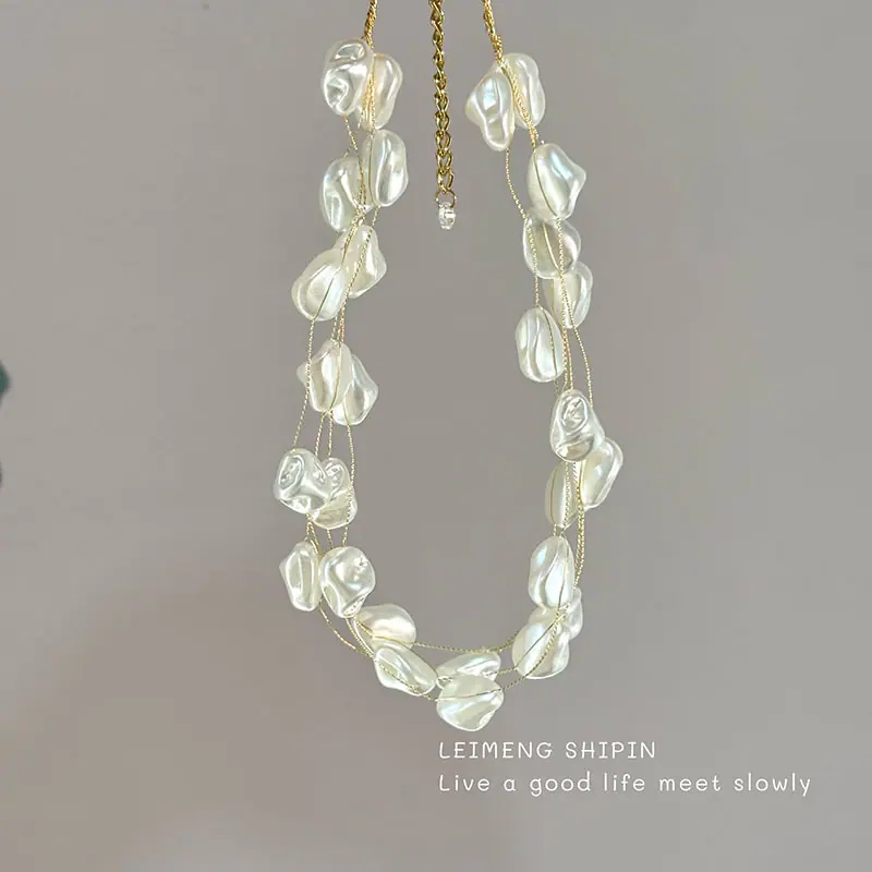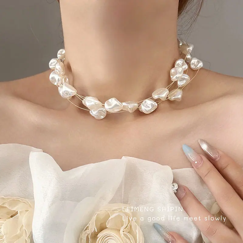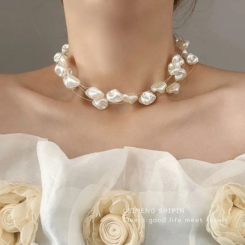Cadena de clavícula de perlas de imitación irregulares de doble capa de lujo ligero de alta gama, de estilo europeo y americano, superventas transfronteriza, collar retro cool y nicho