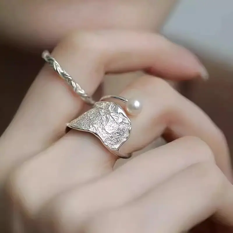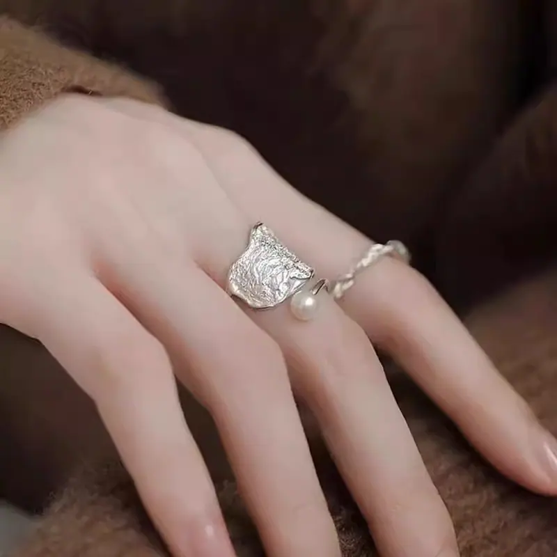 Anillo de Perlas Retro de Doble Capa para Mujer Diseño Nicho Lujo Ligero Alta Gama Retro Abierto Ajustable Nueva Moda
