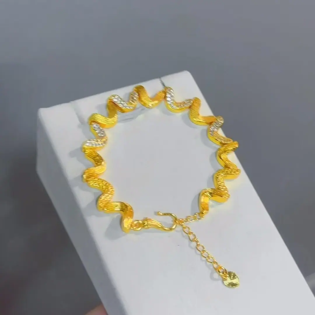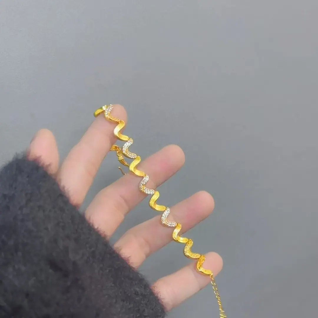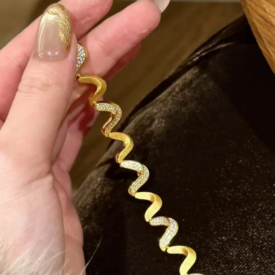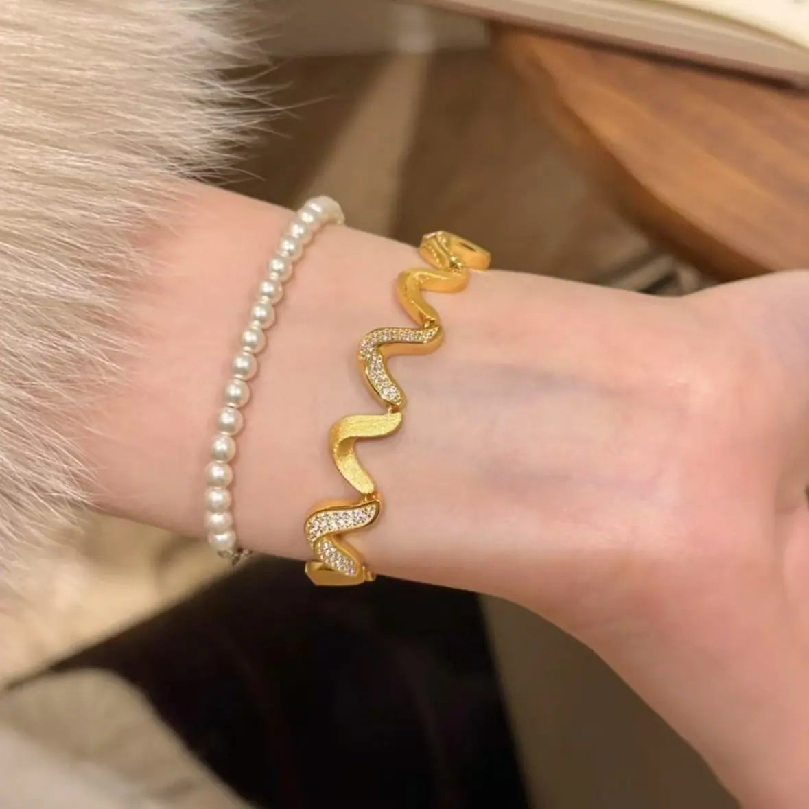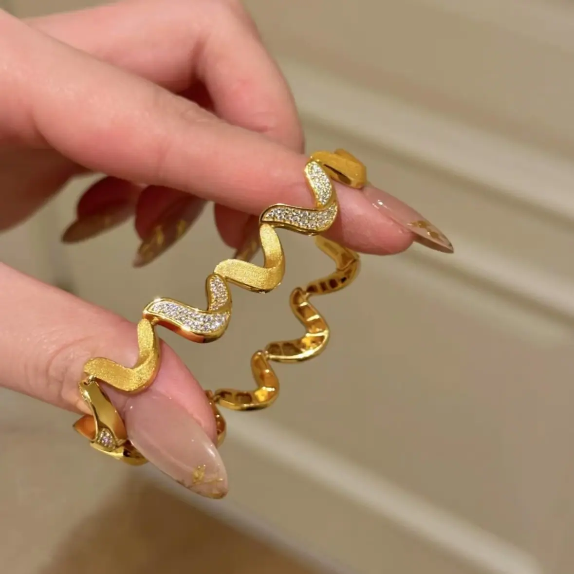 Pulsera Oro Cepillado Ola de Diamantes Color Oro Pulsera Ola de Agua Moda de Lujo Ligero Pulsera Diamante Puntada Satén