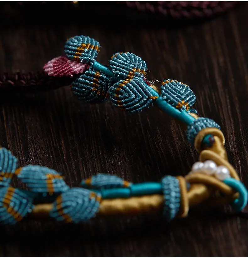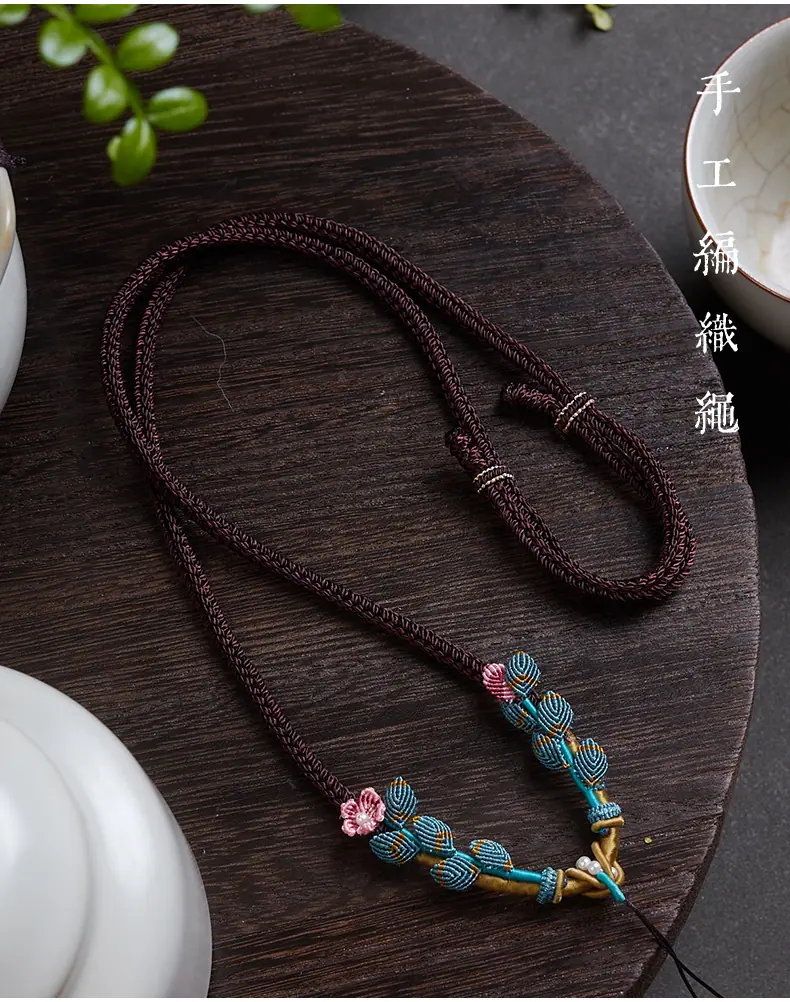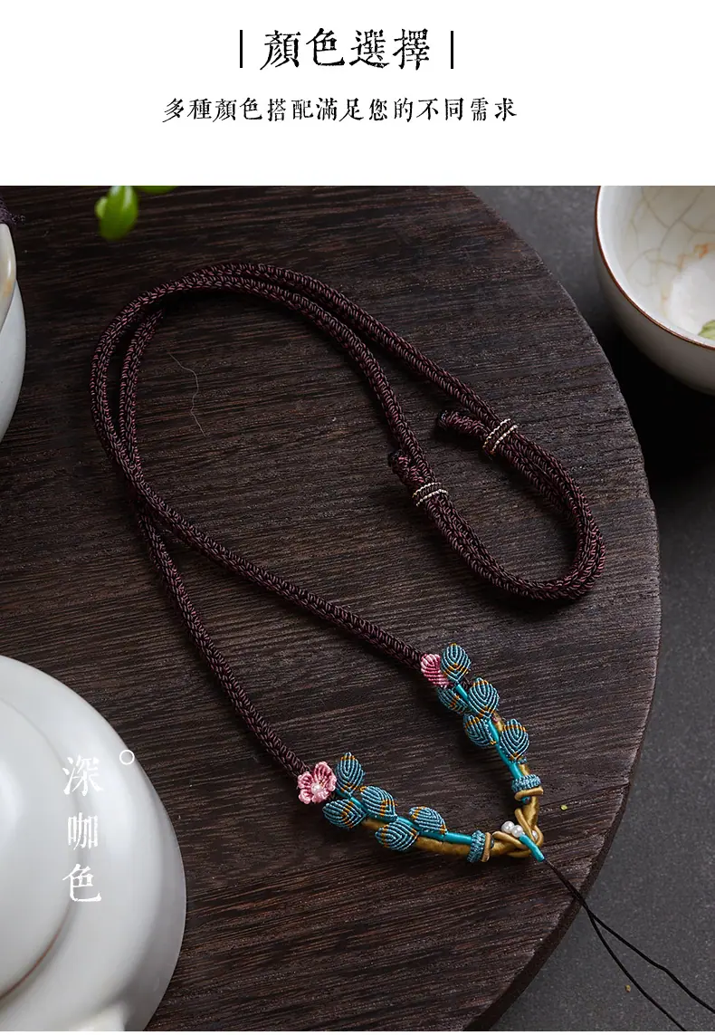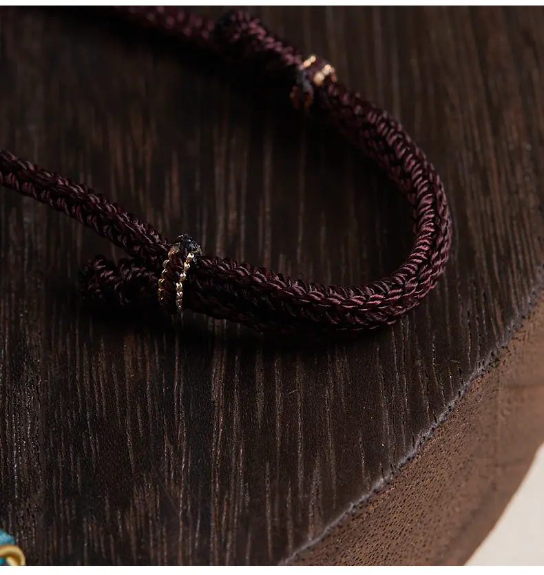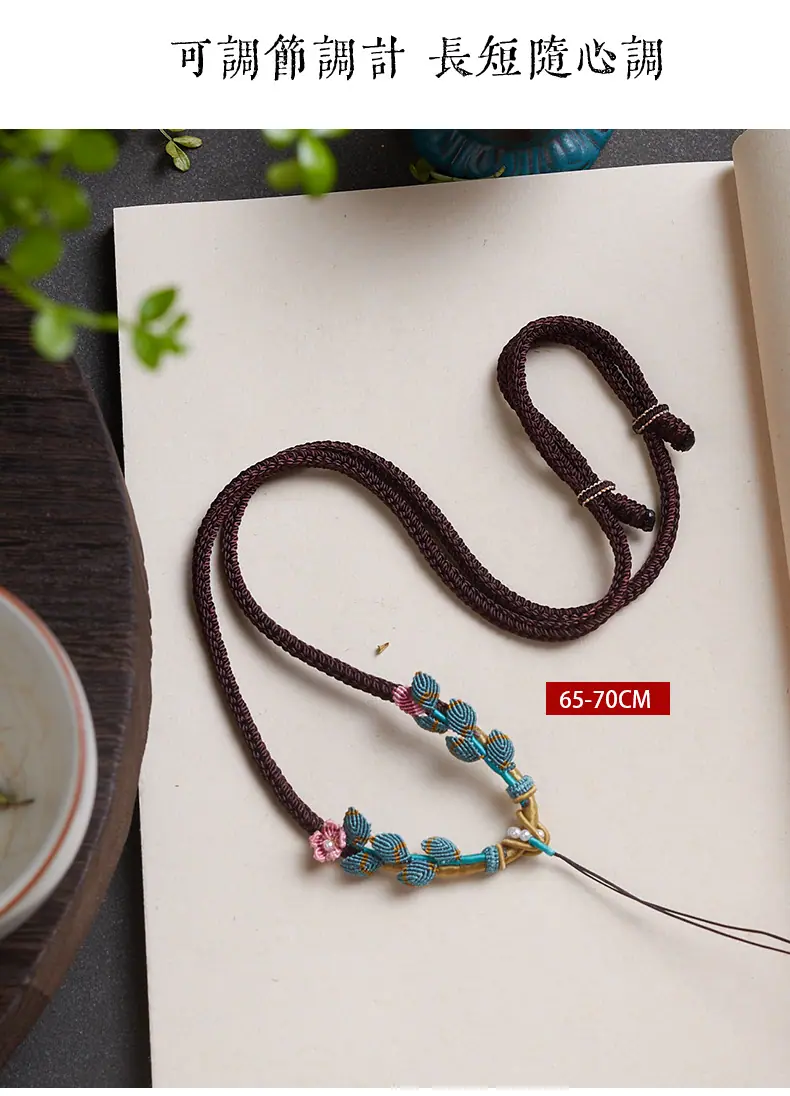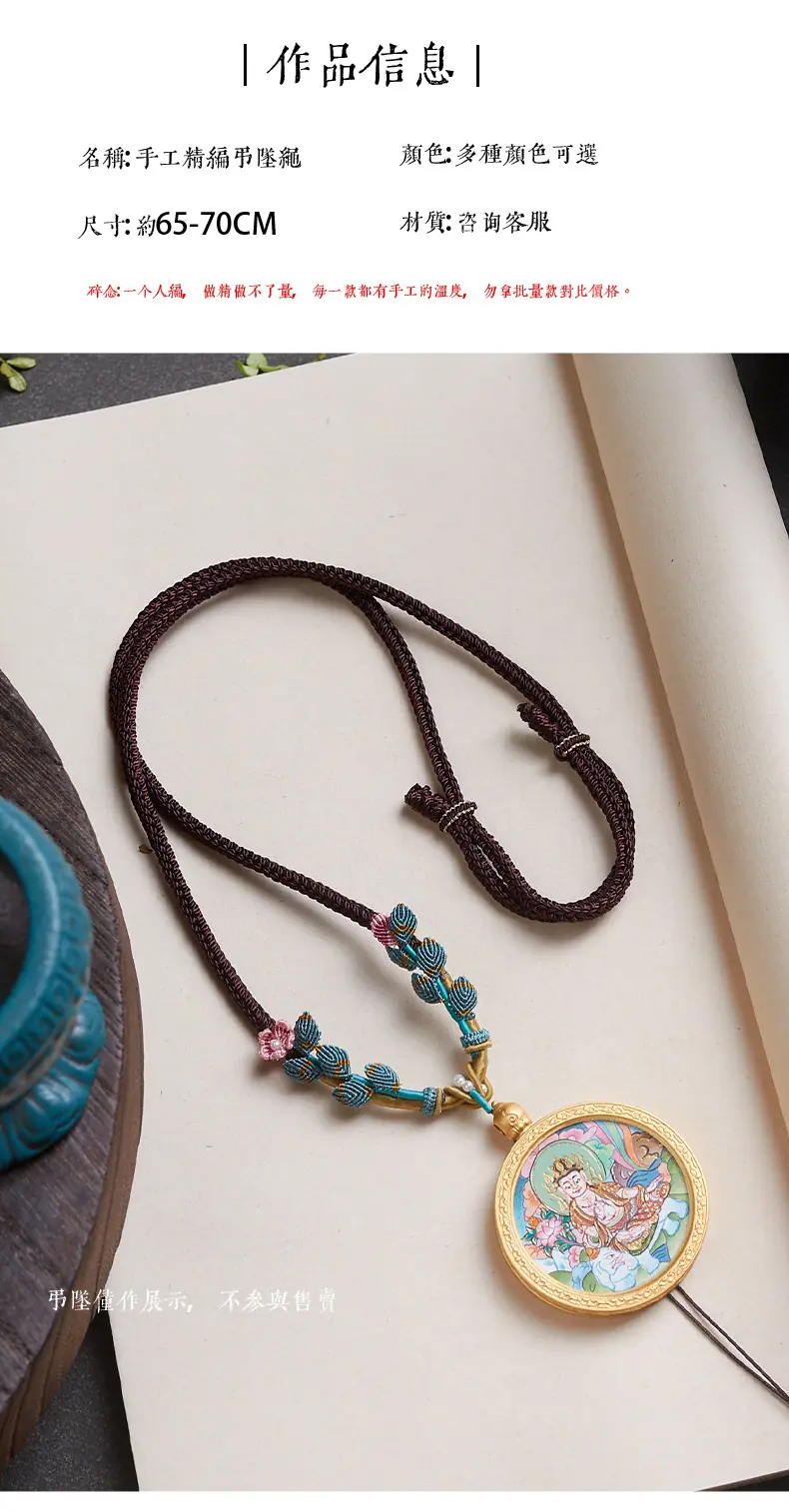Collar de cuerda tejida a mano de alta calidad con colgante de brújula de los ocho tesoros de oro, cuerda con colgante de jade con cabeza de Buda, mujeres