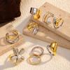 Anillo Europeo y Americano Transfronterizo de Lujo Ligero Bicolor Dorado y Plateado de Acero Inoxidable Retro Francés Brillante de Acero de Titanio Joyería de Mano al Por Mayor