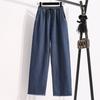 Foto Real de Pantalones Largos de Mujer Talla Grande con Cintura Elástica, Jeans de Pierna Recta Lavados para Primavera de Mujer de Pierna Ancha, Cordón Ajustable Holgado Delgado