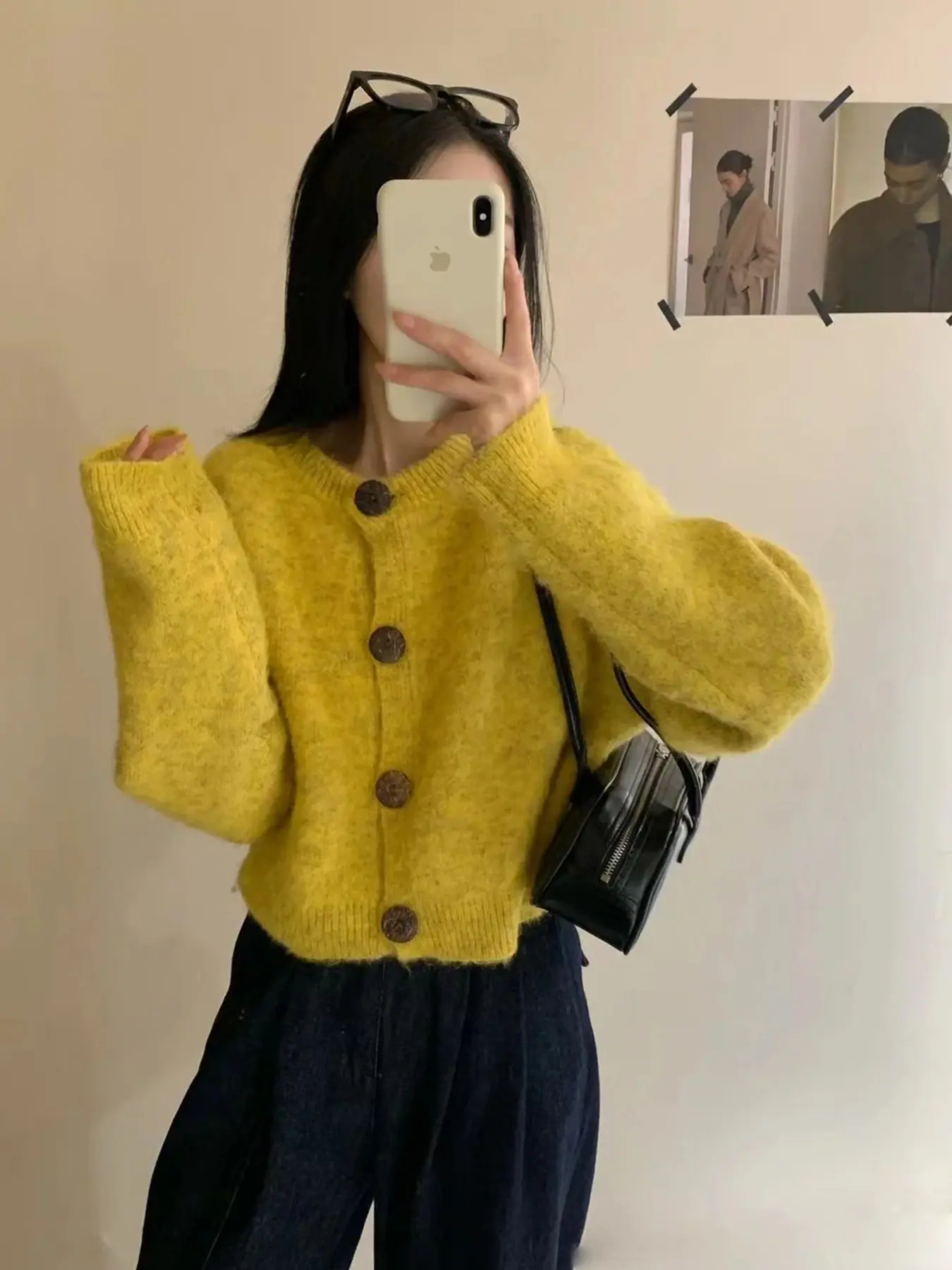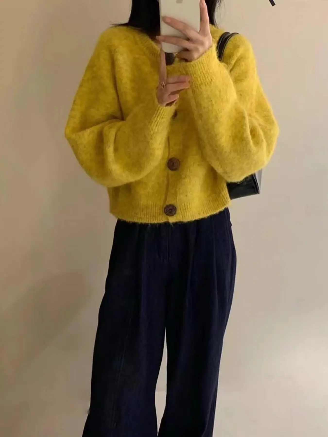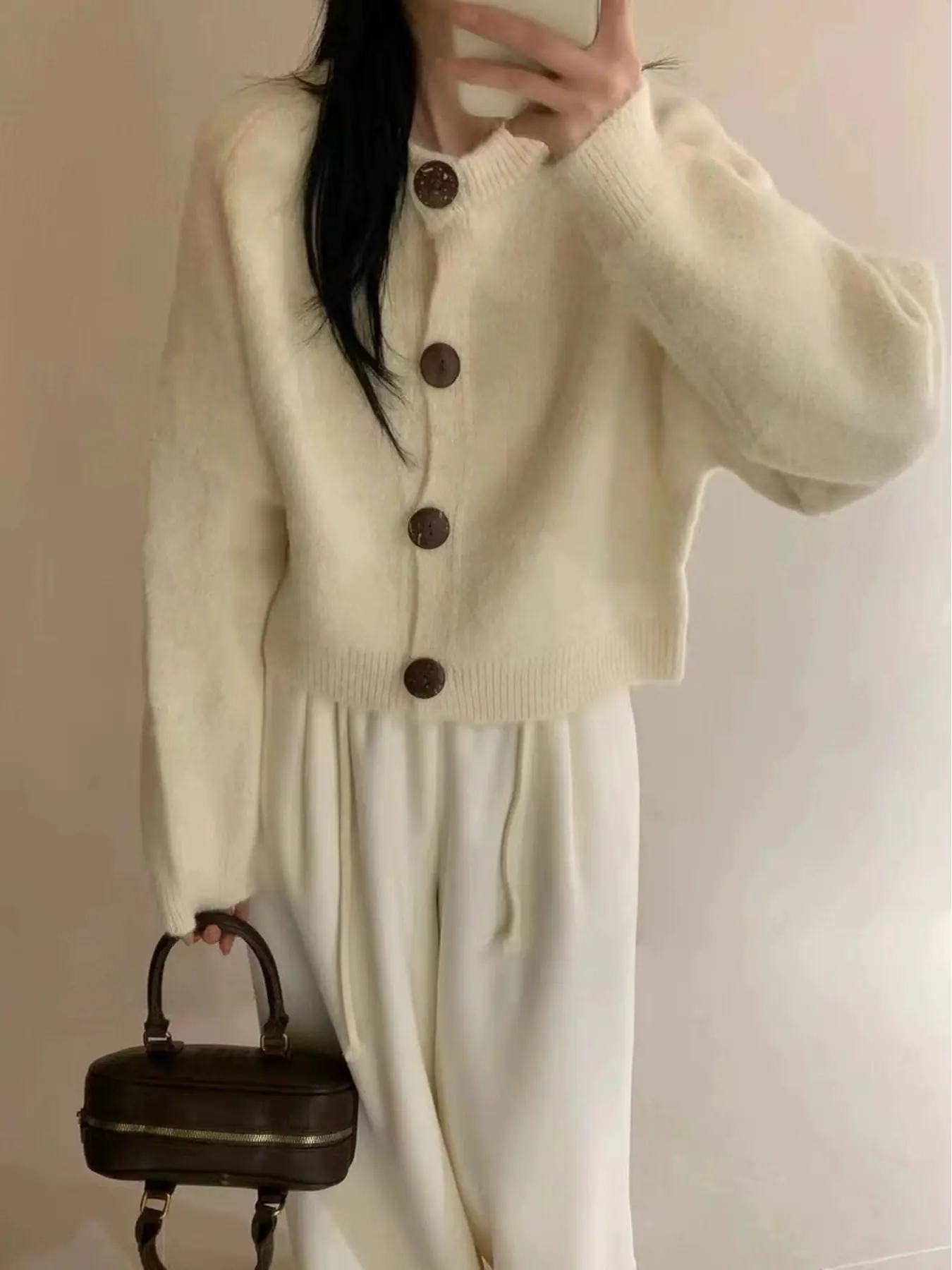 Abrigo coreano estilo perezoso suave y glutinoso para mujer otoño e invierno nuevo moderno suelto versátil cárdigan con botones grandes