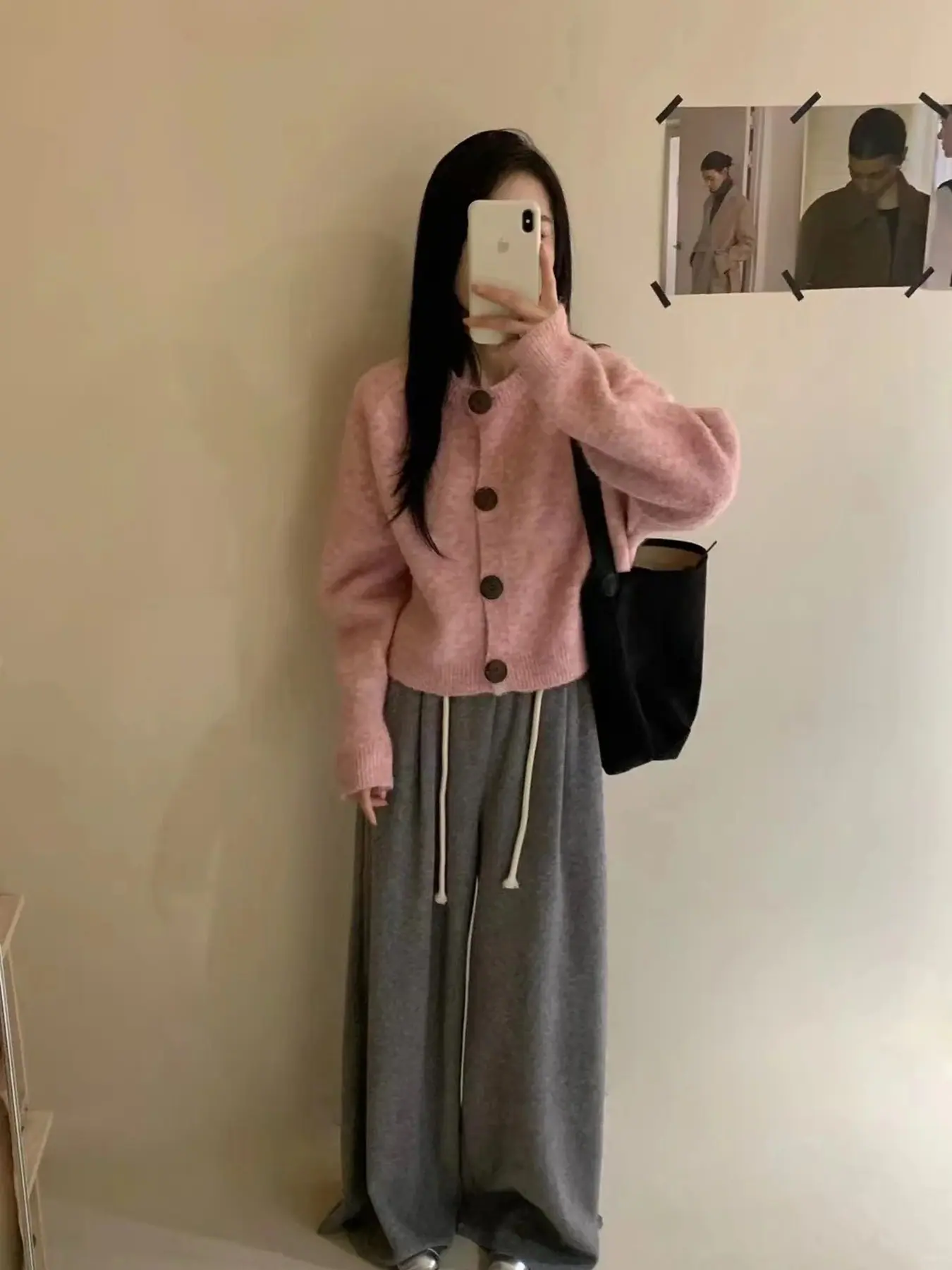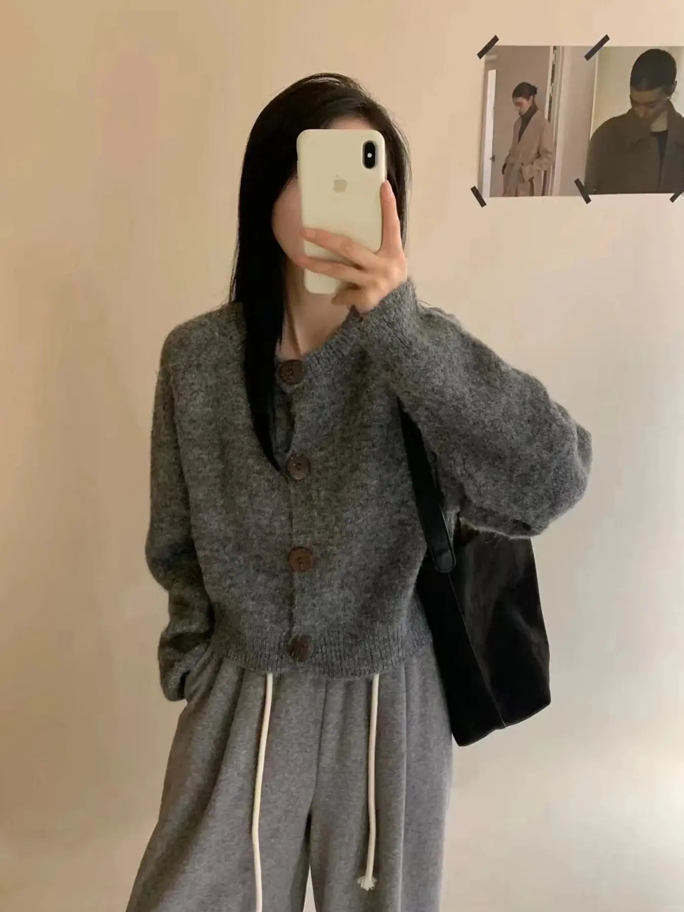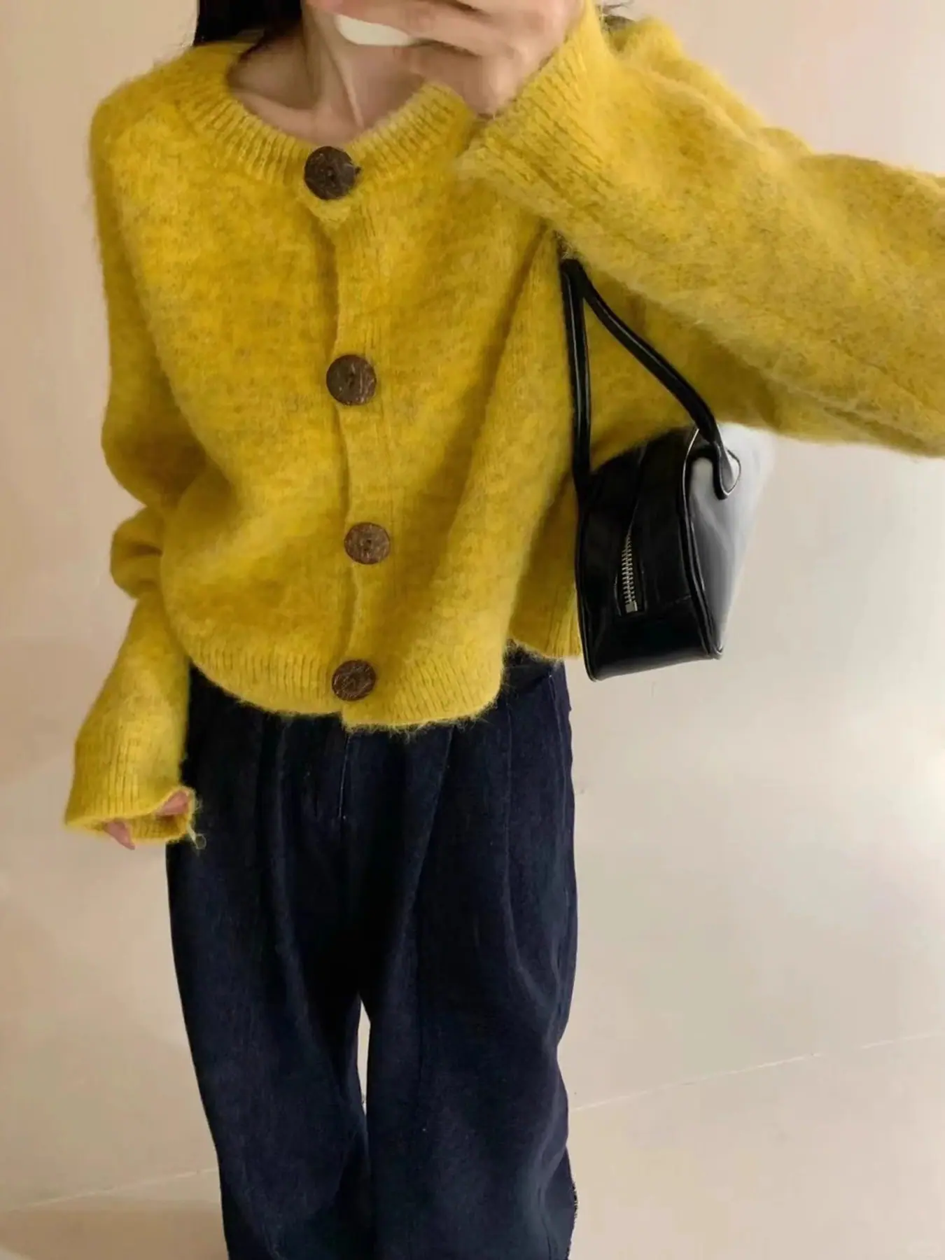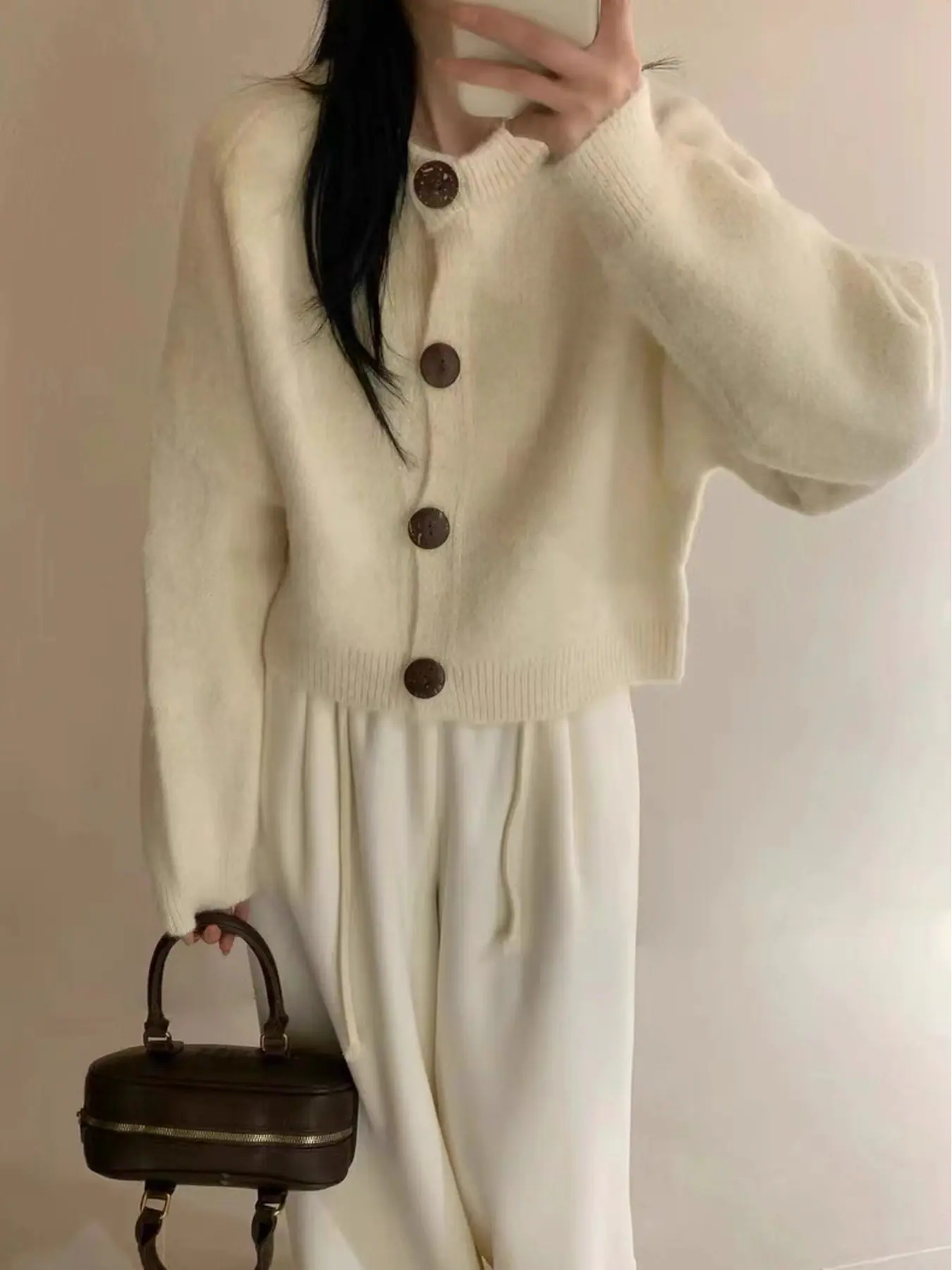 Abrigo coreano estilo perezoso suave y glutinoso para mujer otoño e invierno nuevo moderno suelto versátil cárdigan con botones grandes