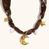 Moda Transfronteriza Europea y Americana Lujo Elegante Accesible Acero Inoxidable Chapado en Oro de 18K Pegamento Luna Estrella de Cinco Puntas Color Café Collar de Bufanda de Seda