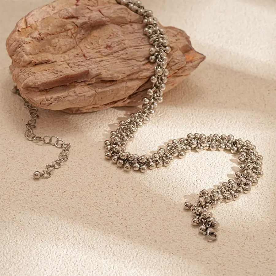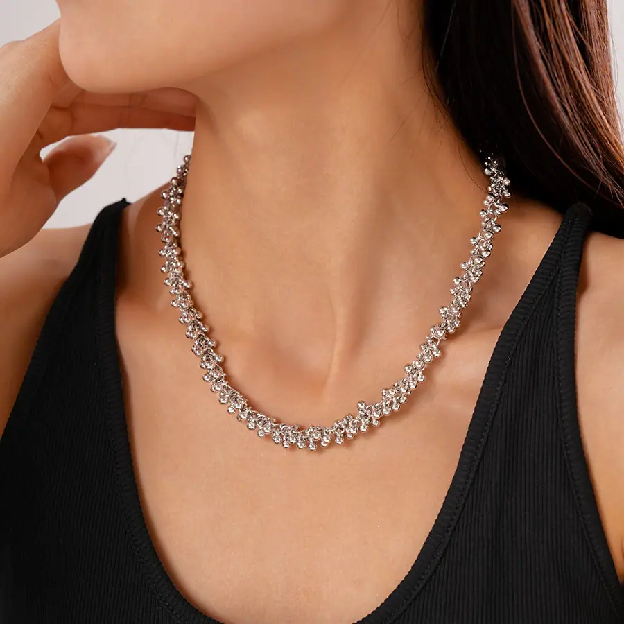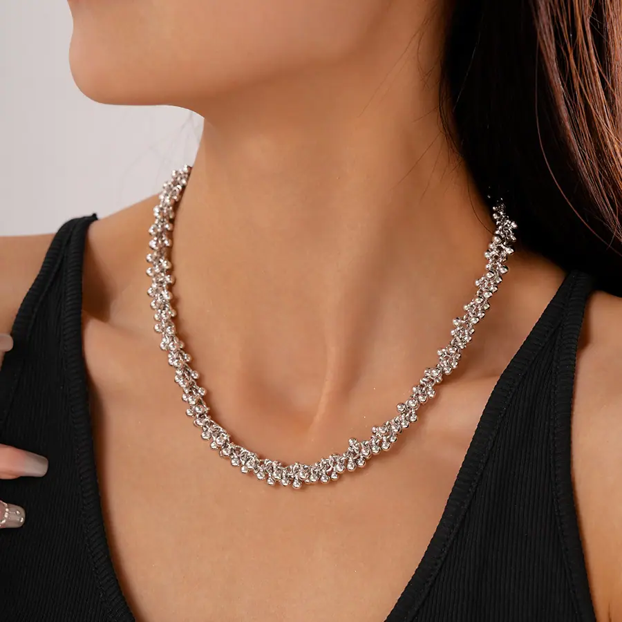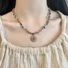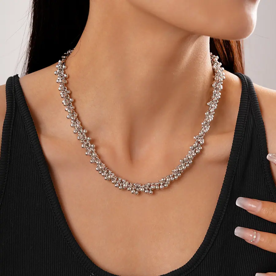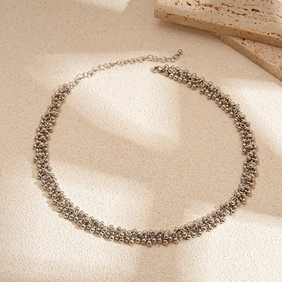 Collar Retro Metálico Geométrico Redondo con Cuentas Estilo Europeo y Americano Nicho Elegante de Alta Gama Collar Clavícula para Mujer