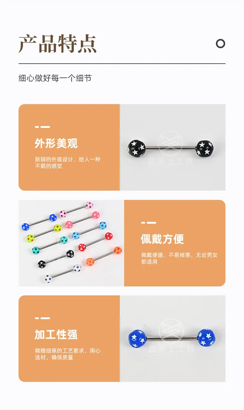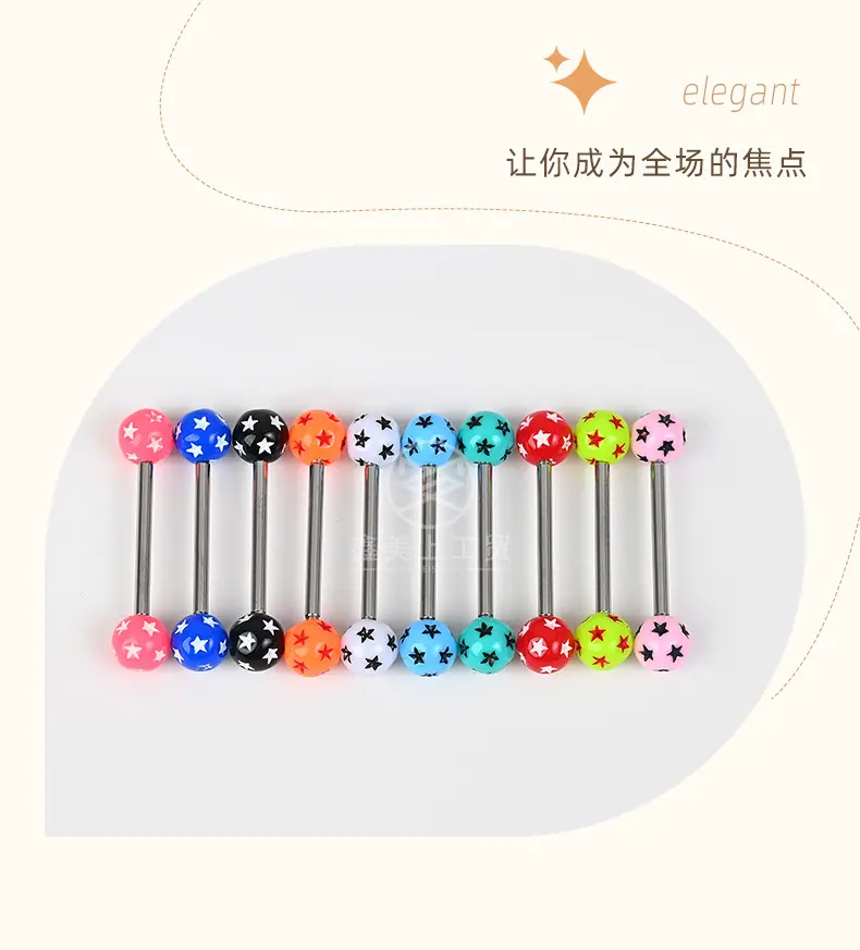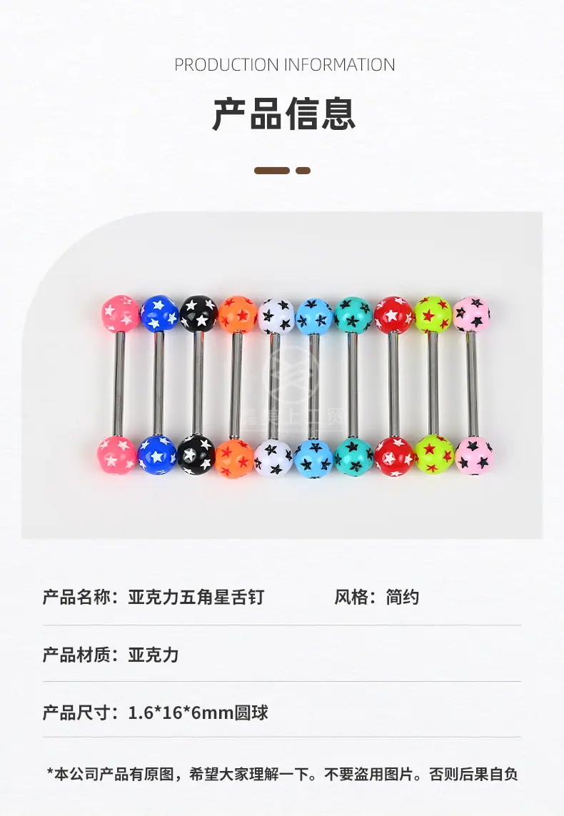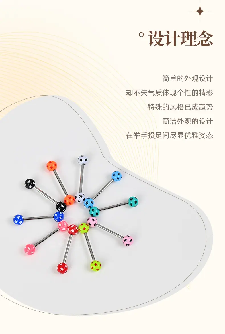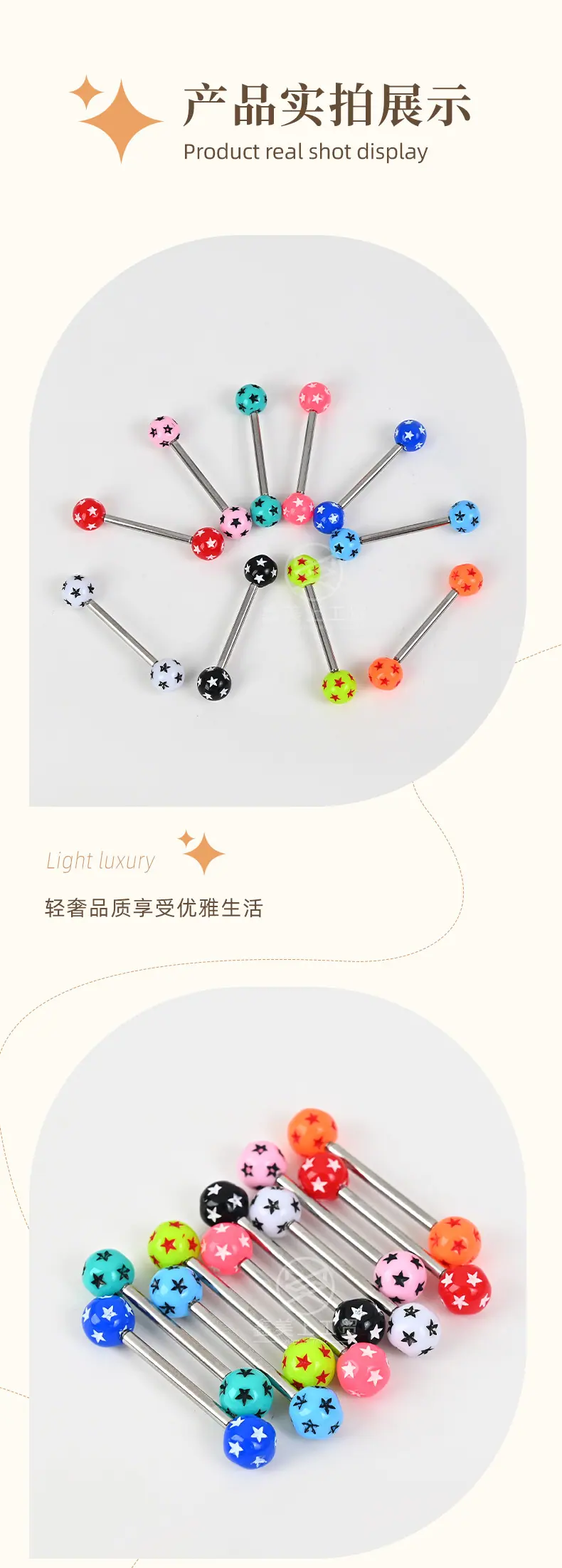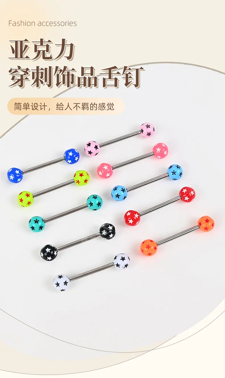 Uña para la Lengua de Estrella de Cinco Puntas Acrílica, Pendientes de Bola de Doble Cabeza Lindos, Sexys y Dulces, Perforación Corporal Joyería para la Oreja Anillo para la Lengua