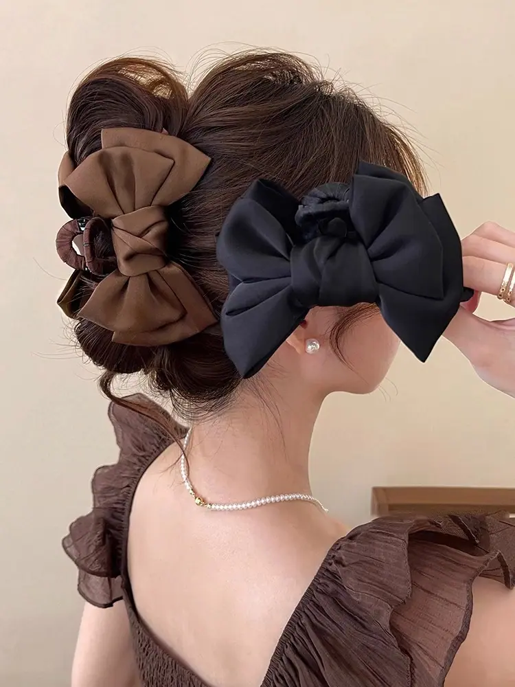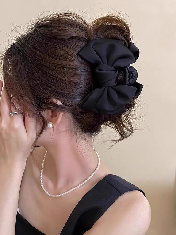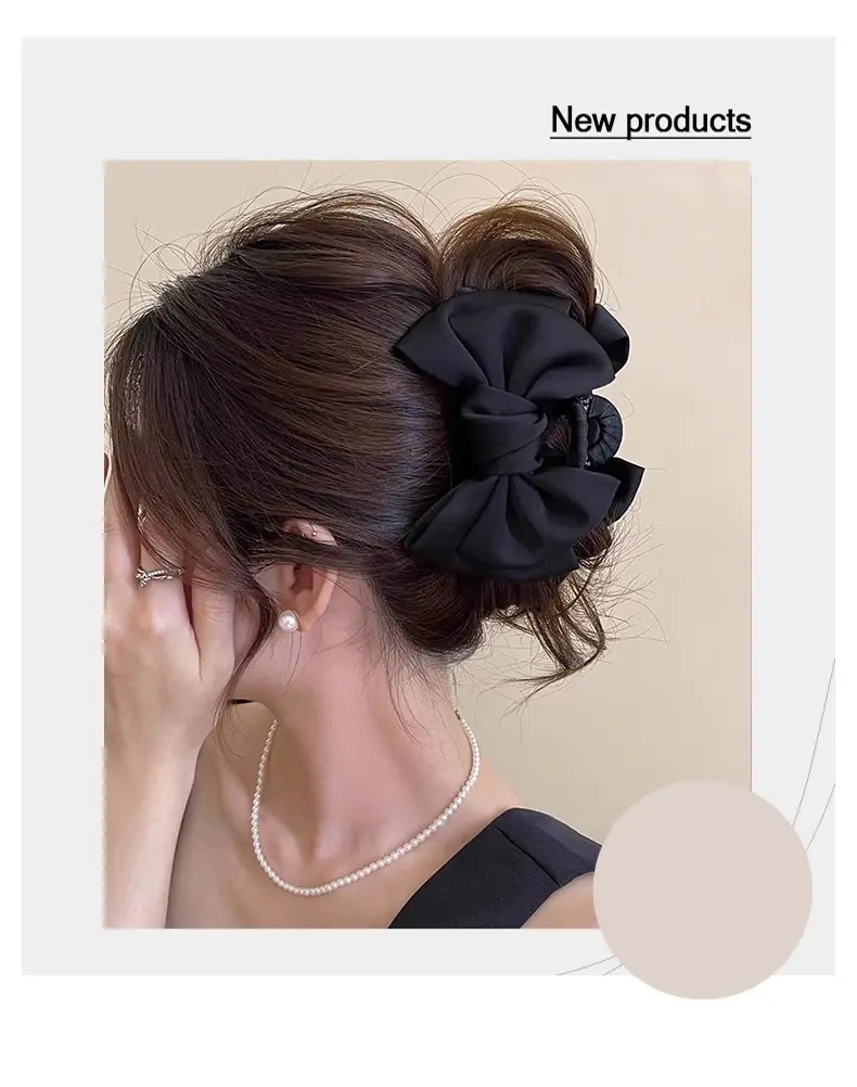 Pinza de Lazo para el Cabello para Mujer de Alta Gama 2025 Nueva Otoño e Invierno Pinza de Tiburón Grande Horquilla para el Cabello de Múltiples Cabezas Tocado