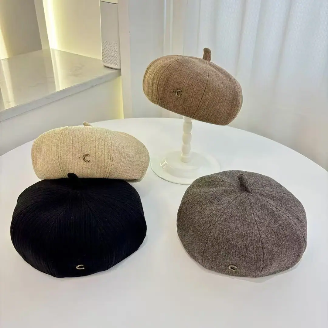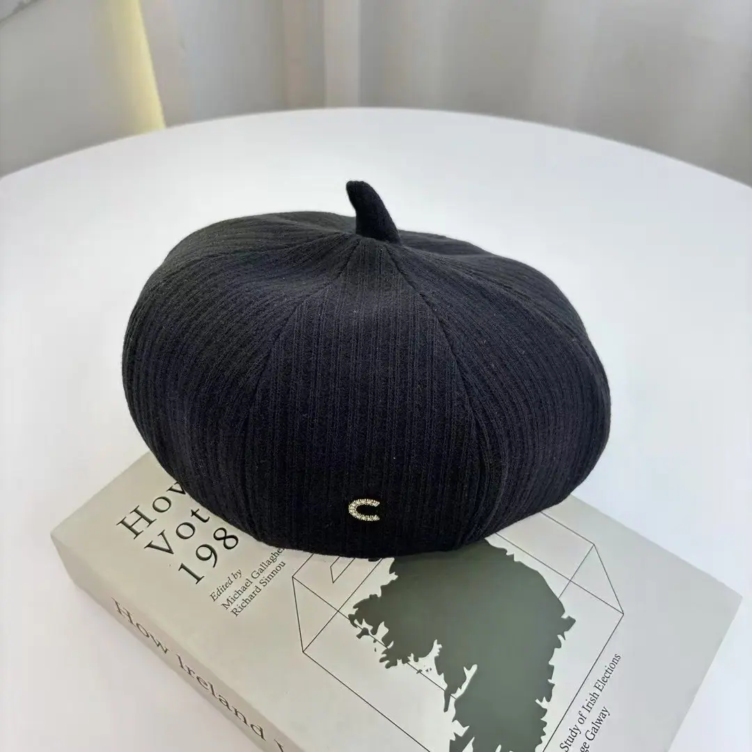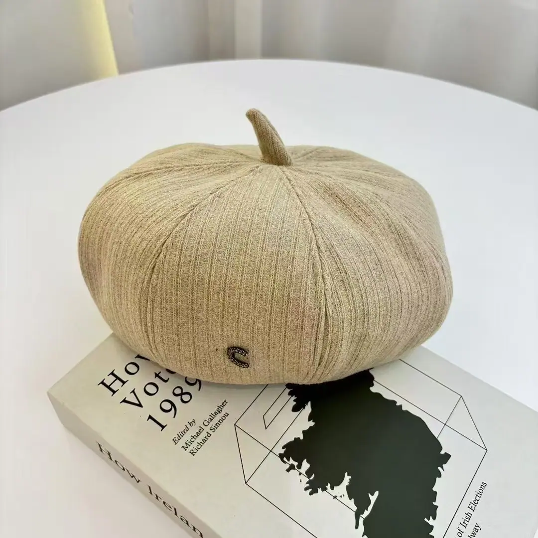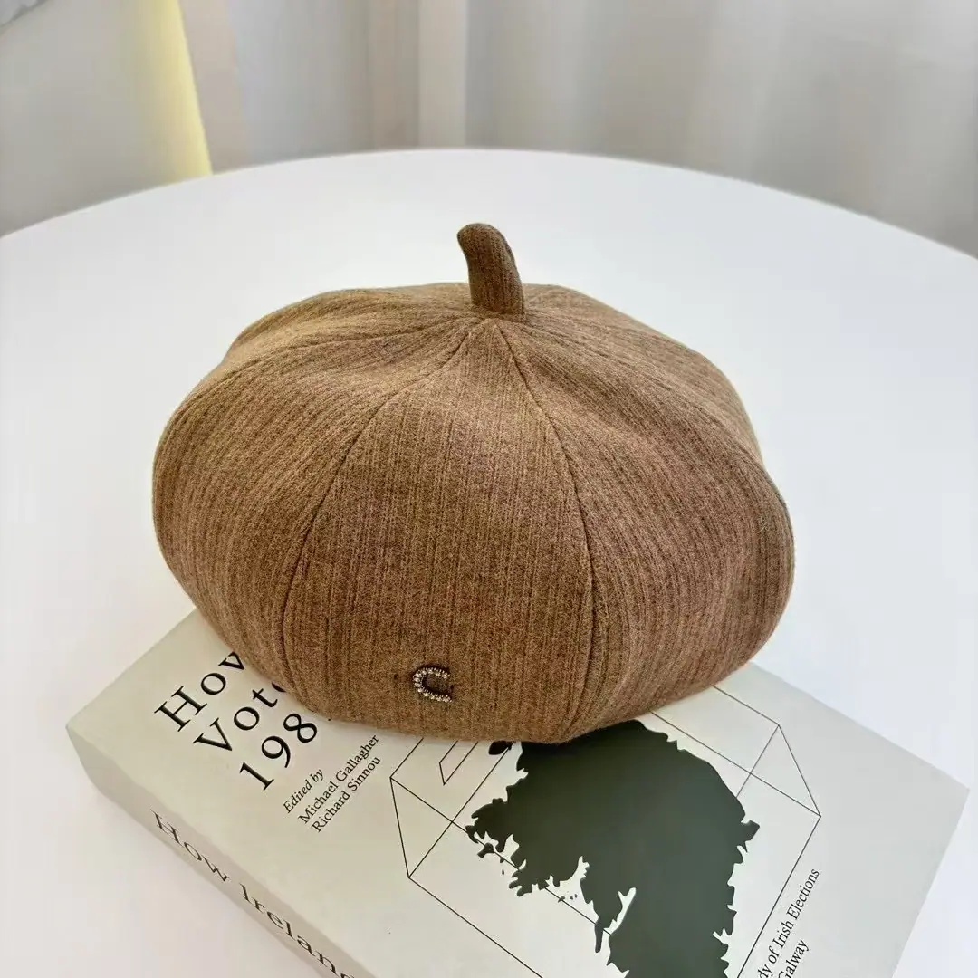 Boina Japonesa Literaria Retro de Etiqueta Pequeña con Letra J para Mujer Otoño Invierno Temperamento Elegante Muestra Cara Pequeña Sombrero de Pintor de Moda