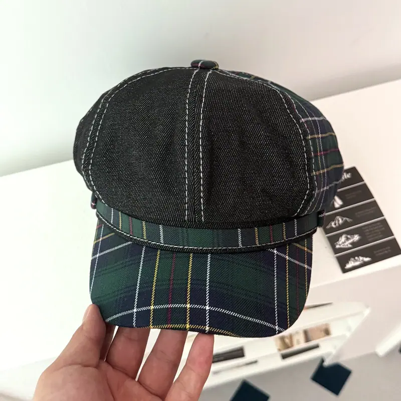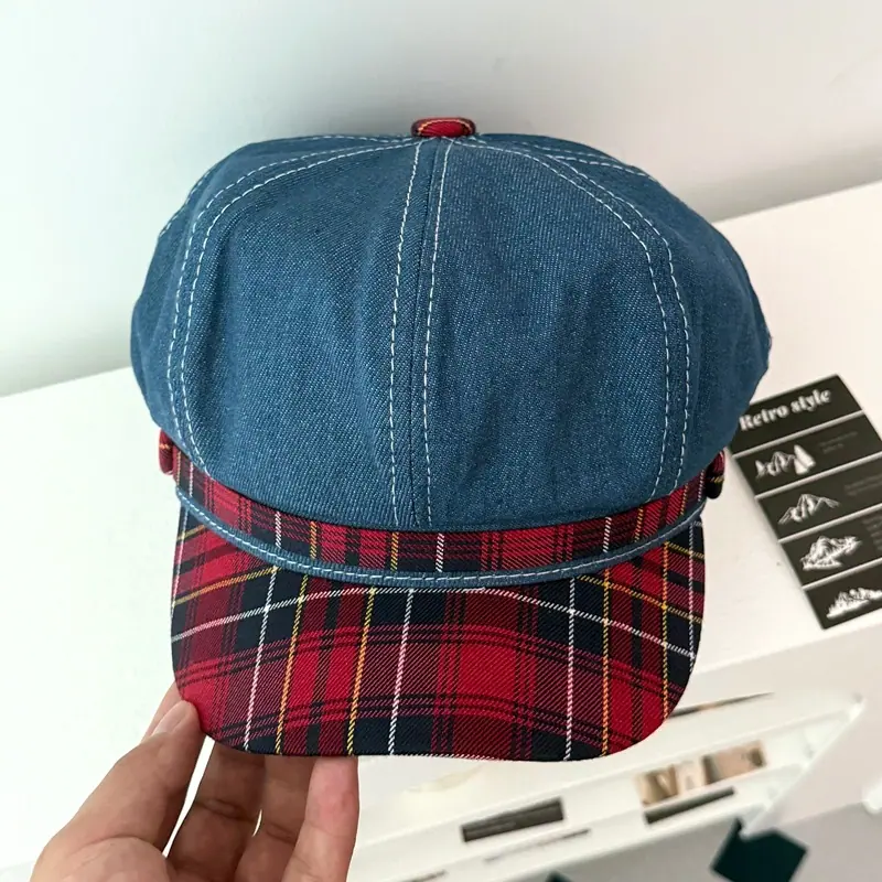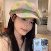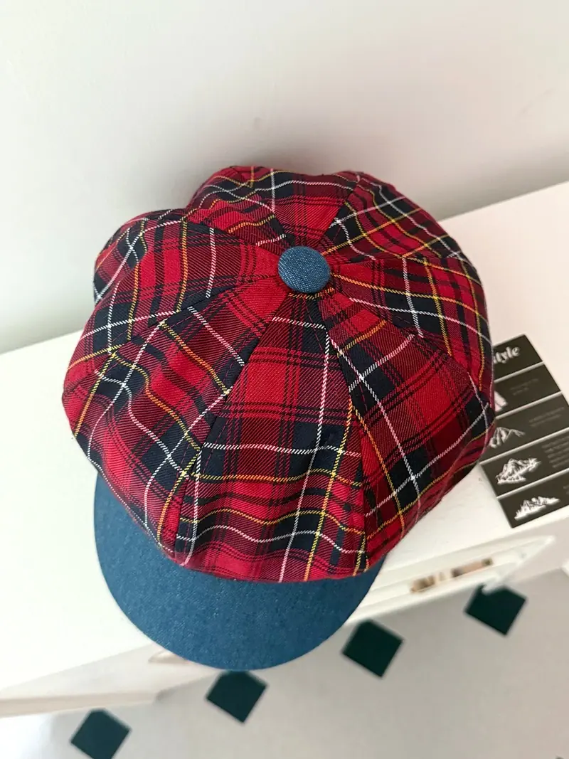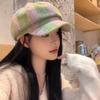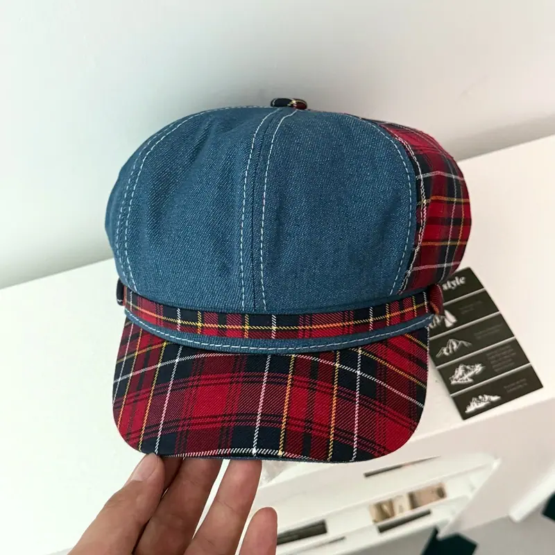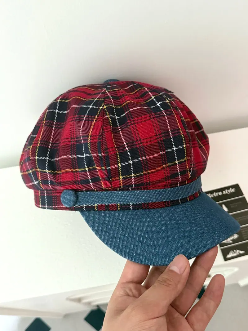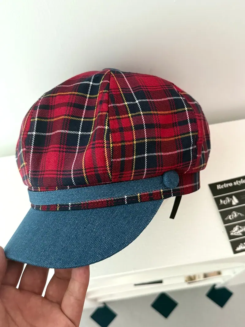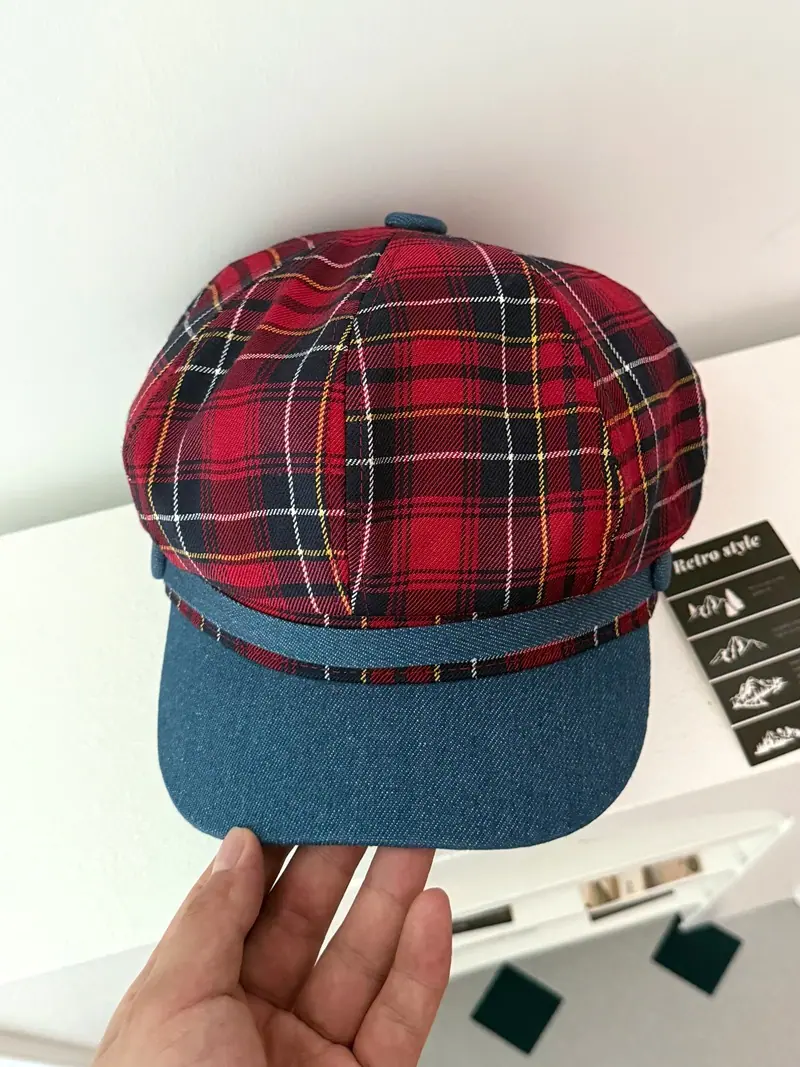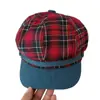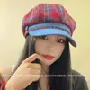 Boina de cuadros rojos 2025 Otoño temprano Nuevo sombrero octogonal Gorra con visera para mujer Muestra la cara Sombrero pequeño de pintor Tendencia retro