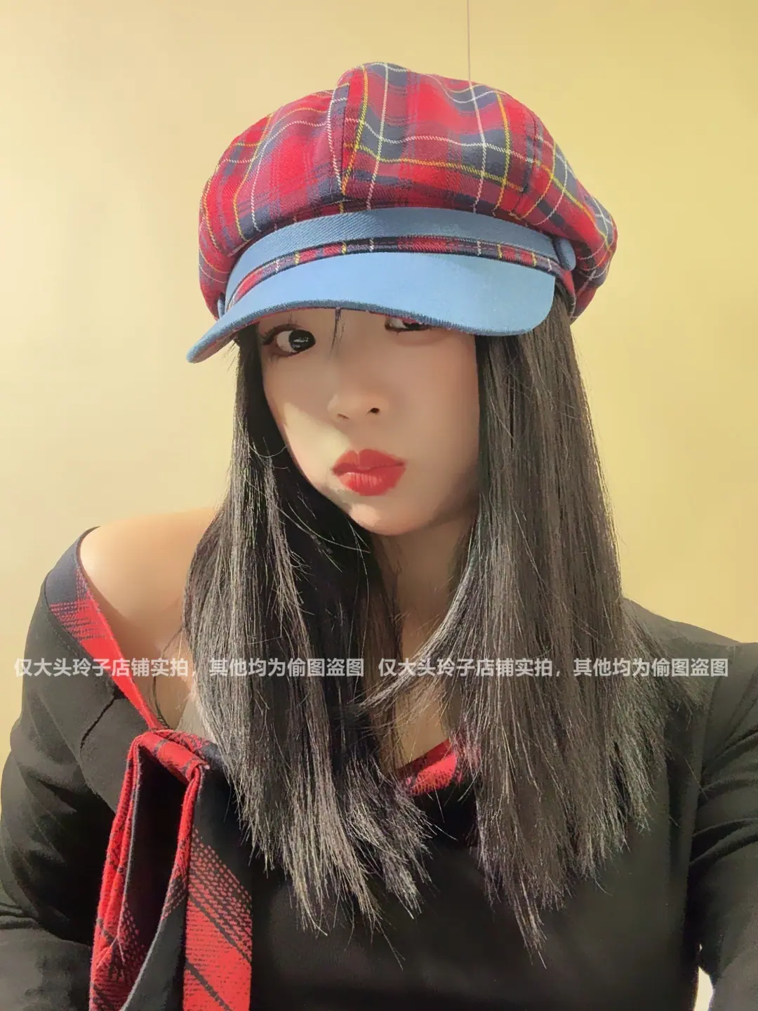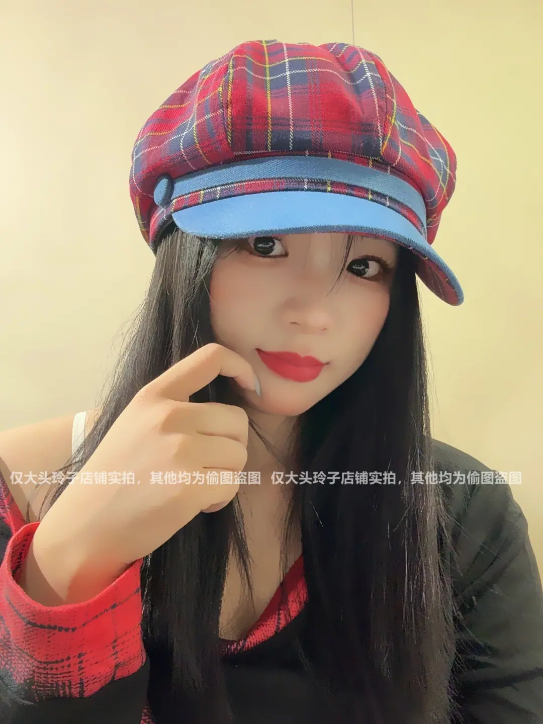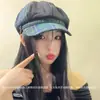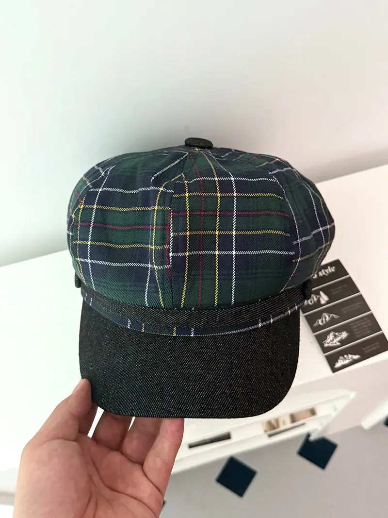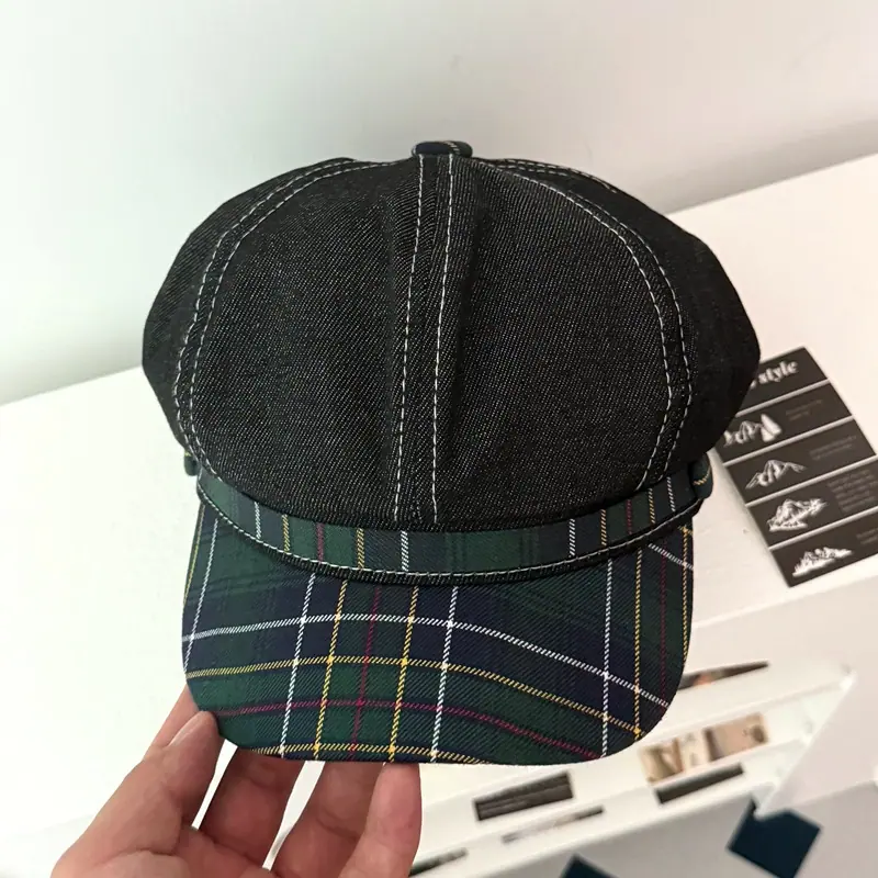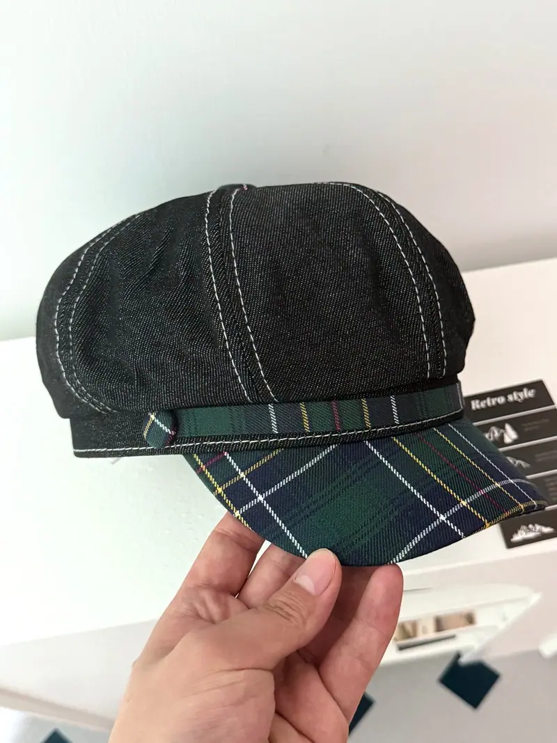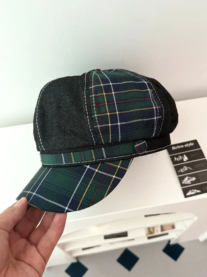 Boina de cuadros rojos 2025 Otoño temprano Nuevo sombrero octogonal Gorra con visera para mujer Muestra la cara Sombrero pequeño de pintor Tendencia retro